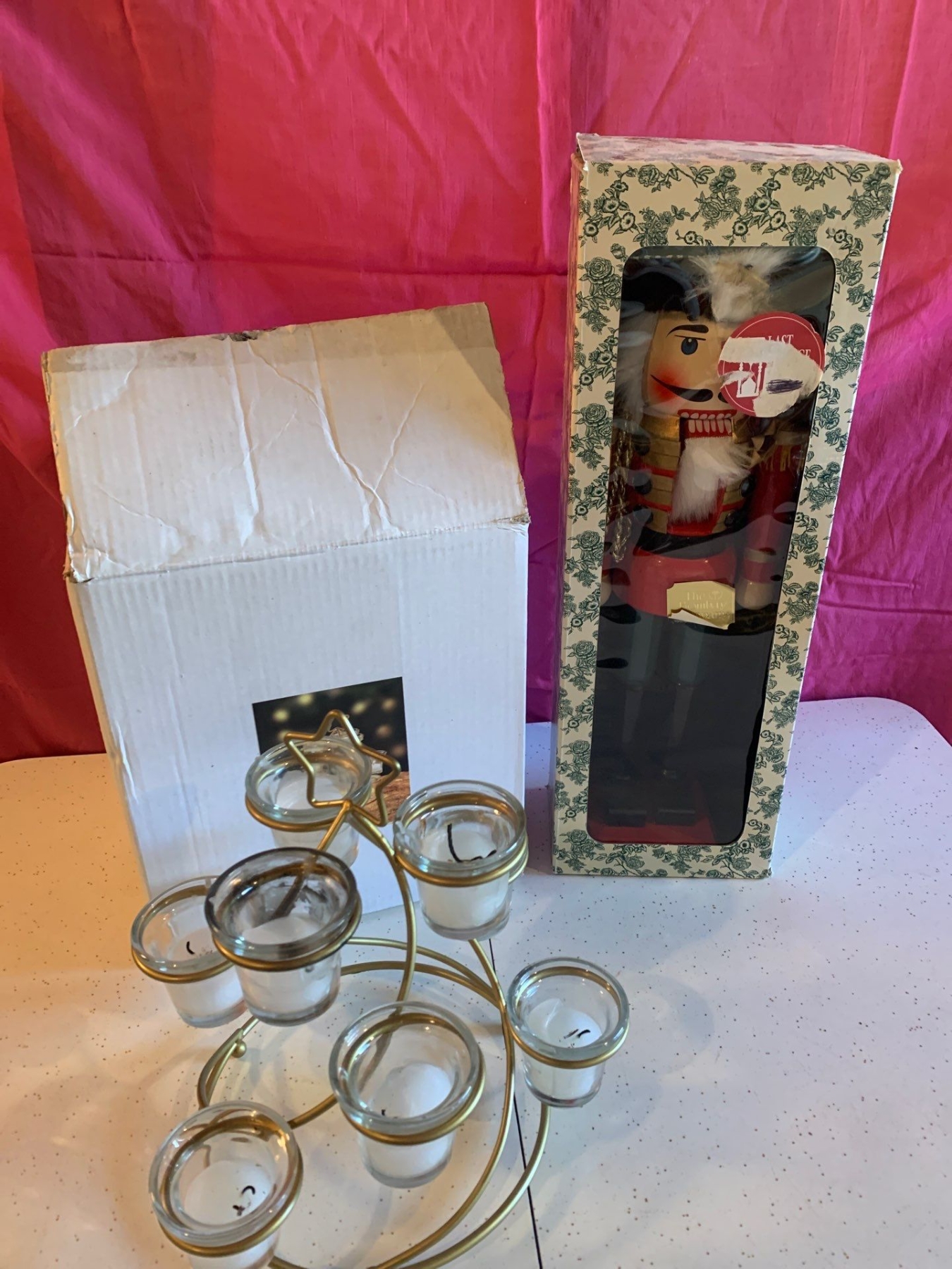 Christmas Candle Holder with Vintage Nutcracker in Original Box