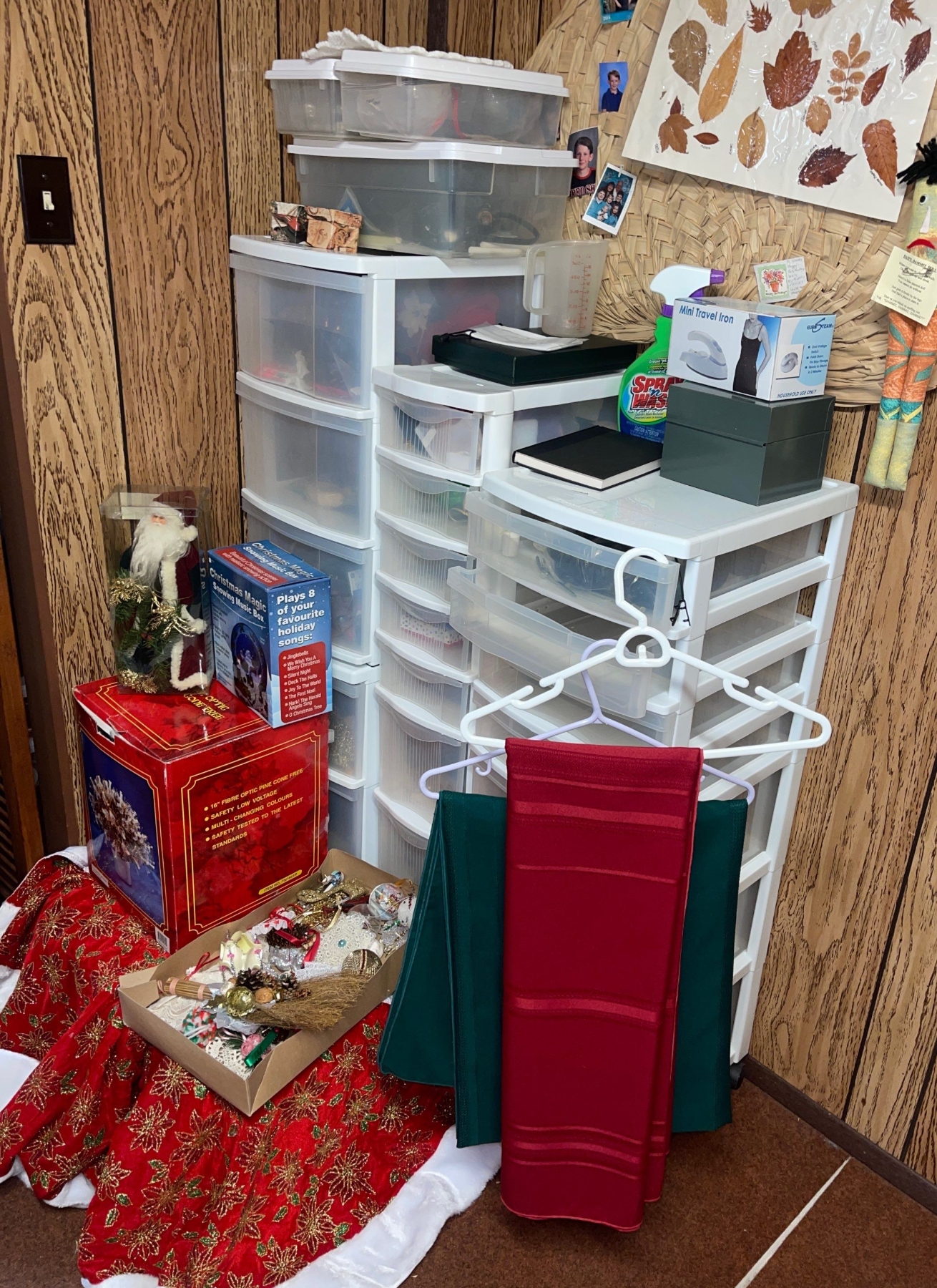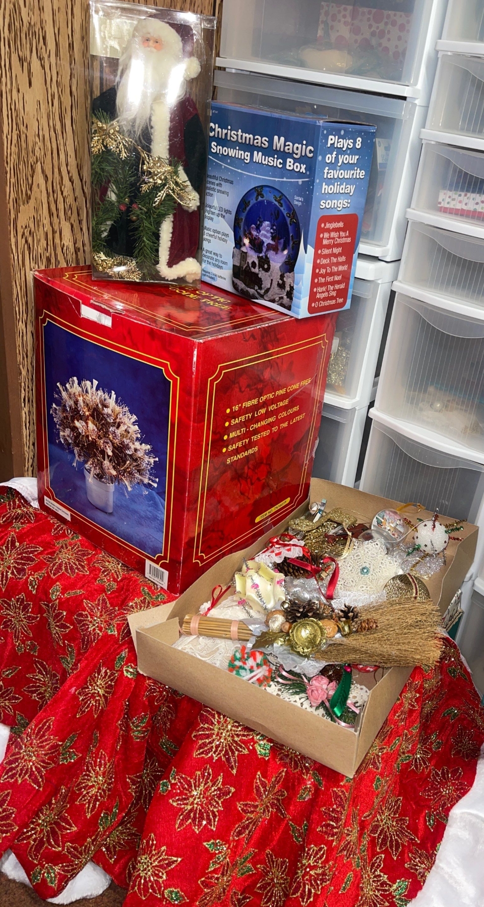 Christmas Craft Station w/ art supplies & Holiday Decor