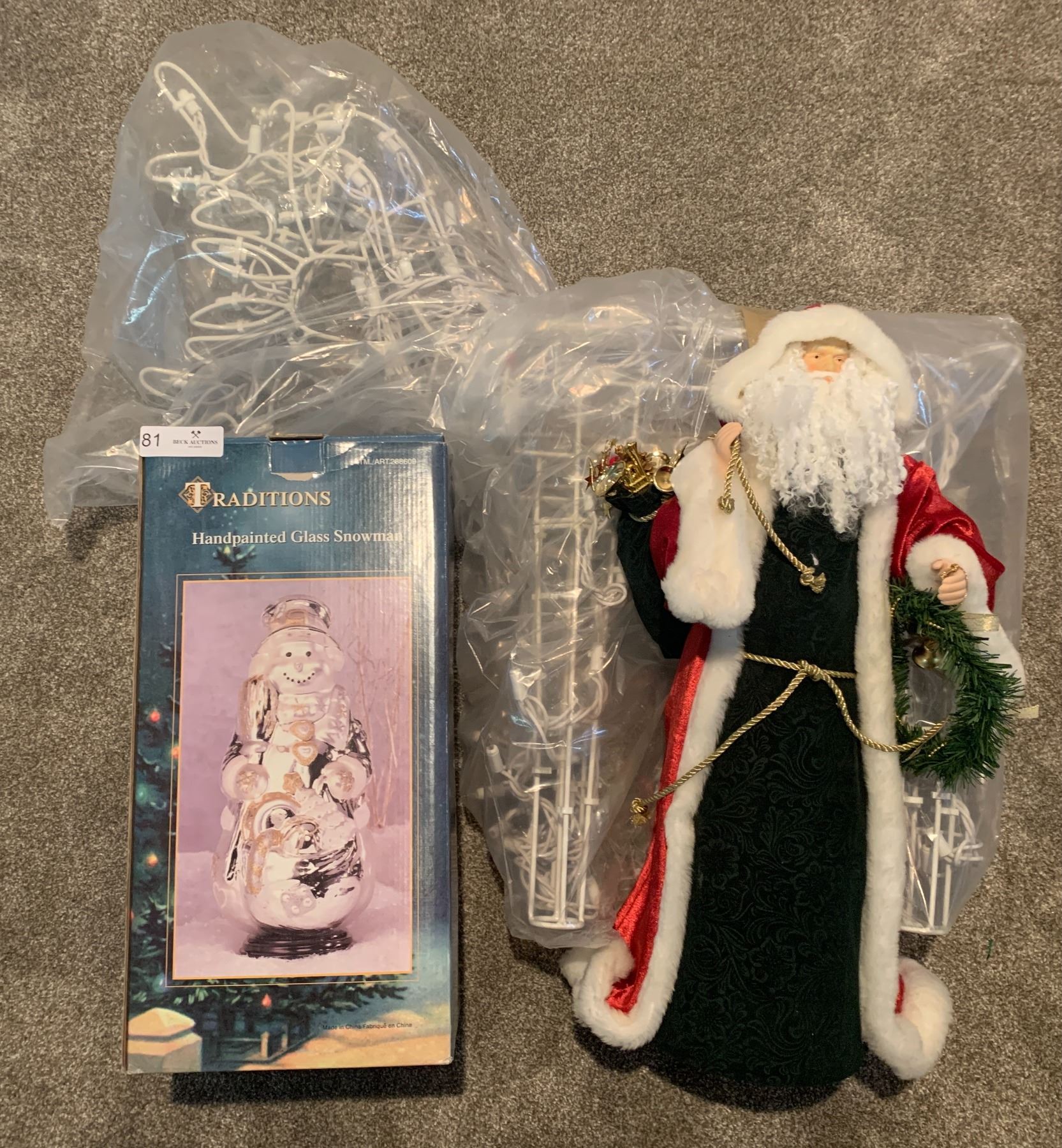 Santa Decoration, Hand-Painted Glass Snowman, & Light-Up Reindeer