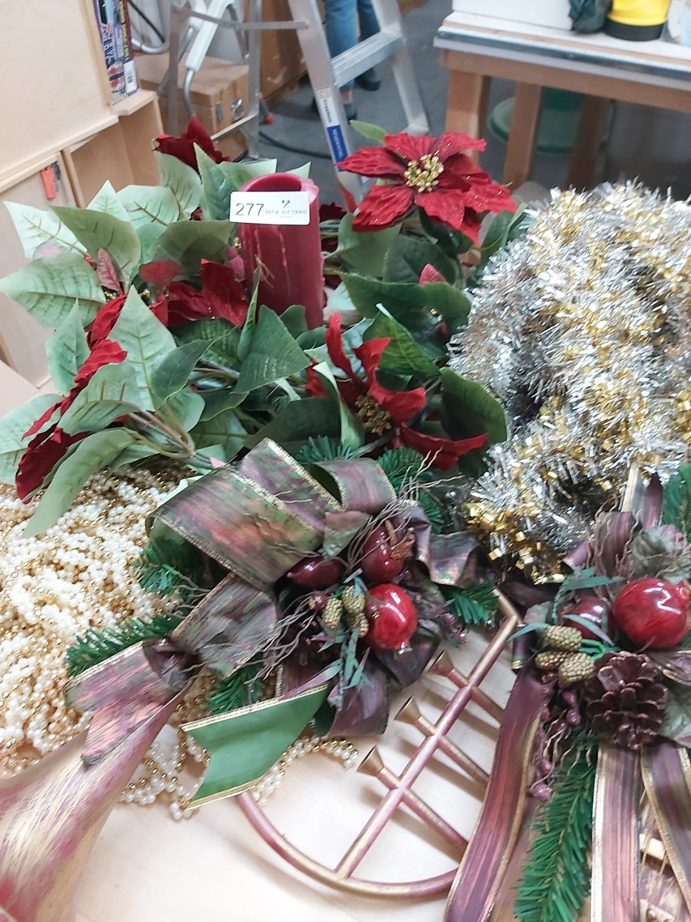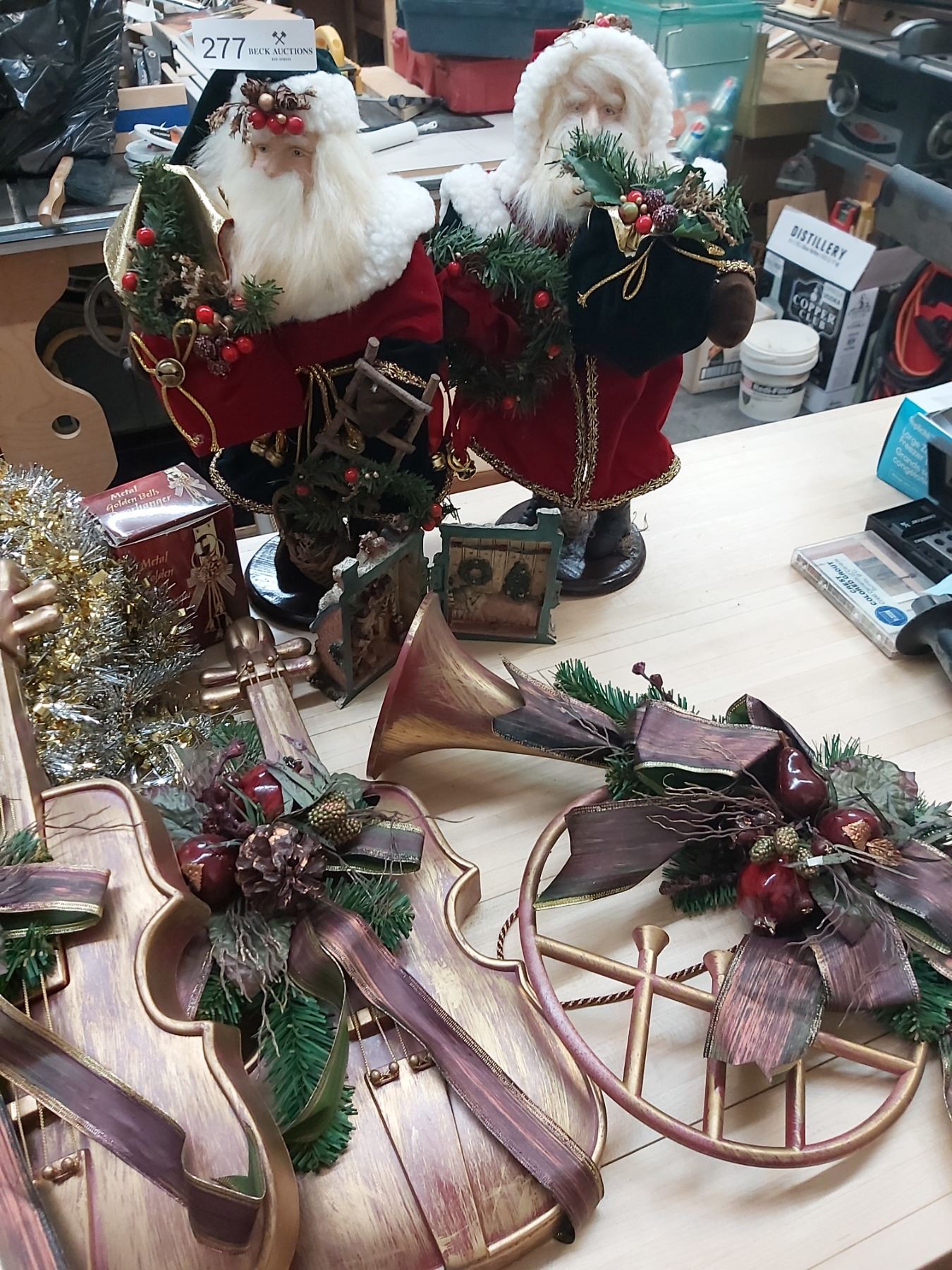 2 horns, 2 Santa, 2 violins, garland, beads, candles and more.
