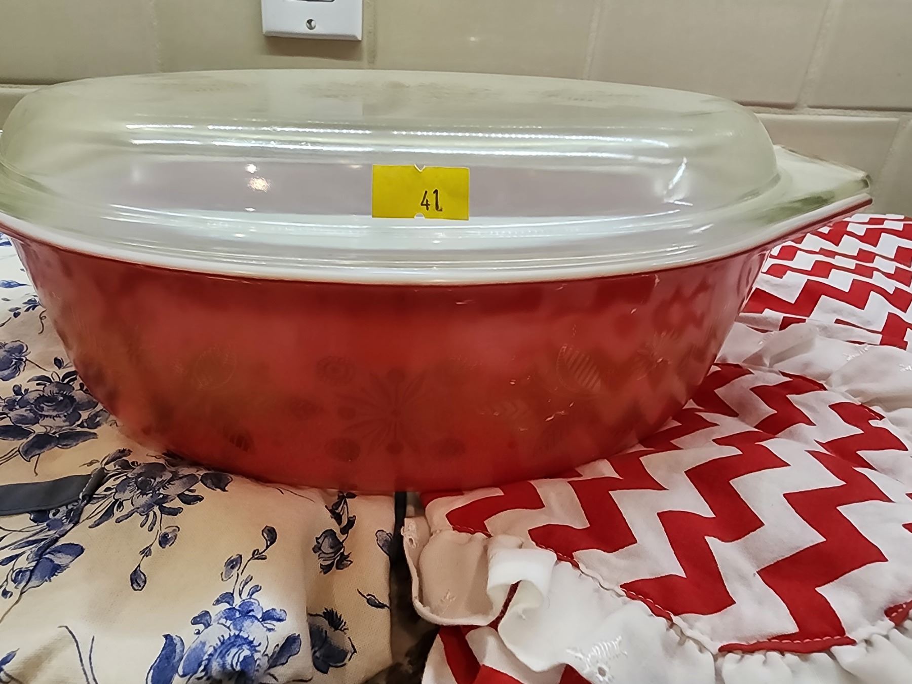 Christmas Pyrex & 2 Aprons