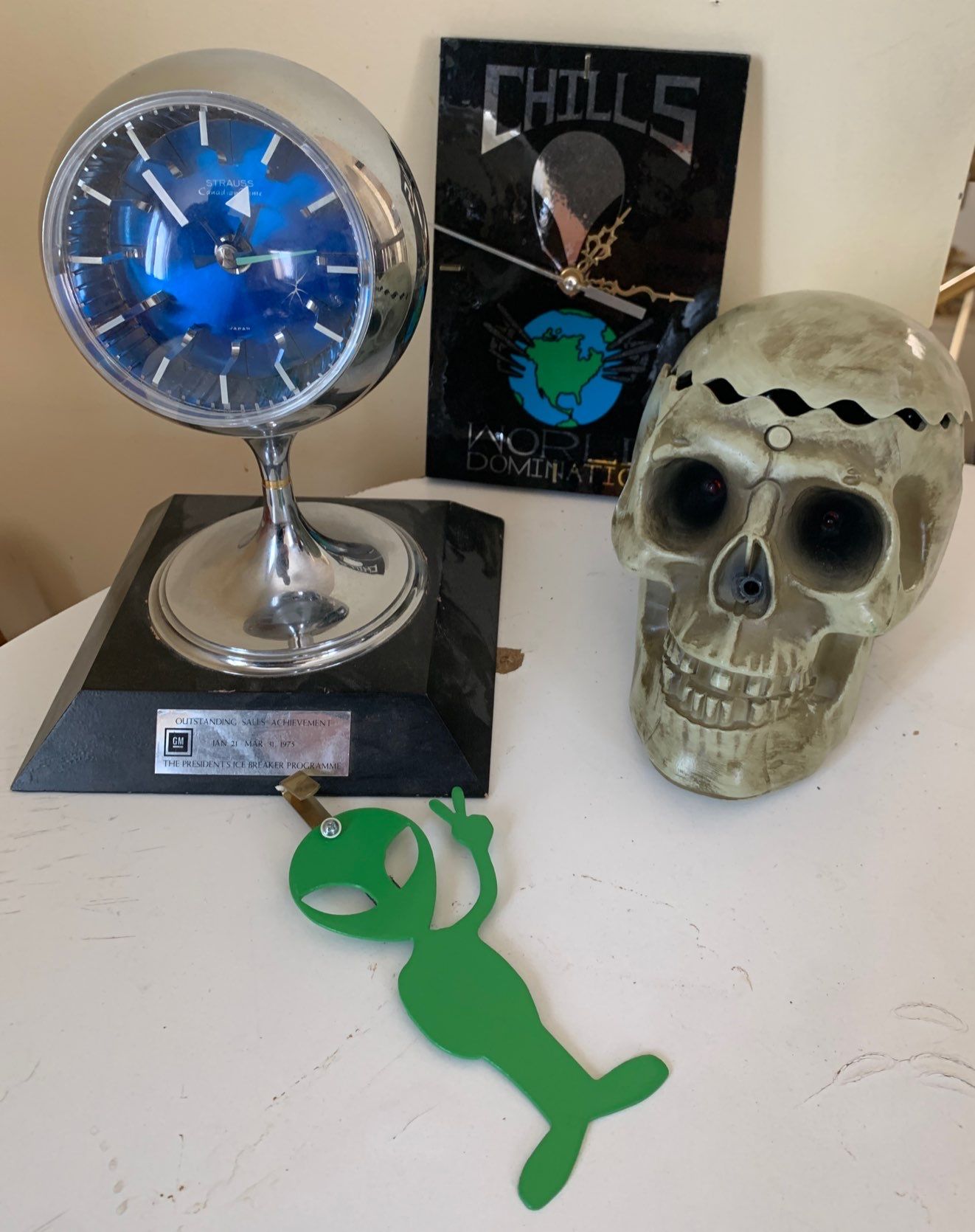 Chrome Mantel Clock w/ Decorative Skull 7T