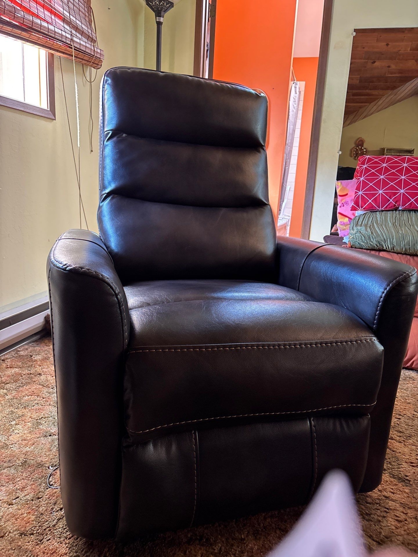 Cindy Crawford Home Electric Powered Brown Leather Recliner With Reading Lamp