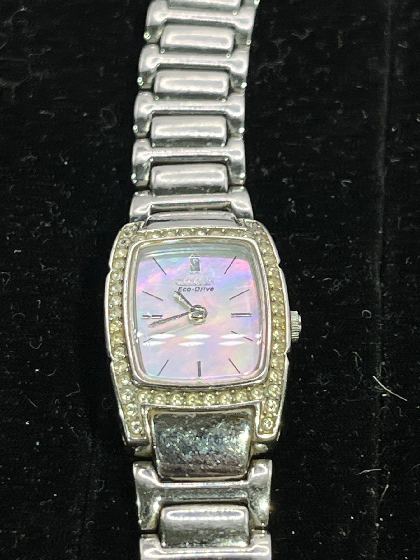 Citizen Eco-Drive Silvertone White Mother Pearl & Crystal Dress Watch (not working)
