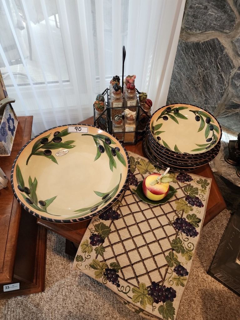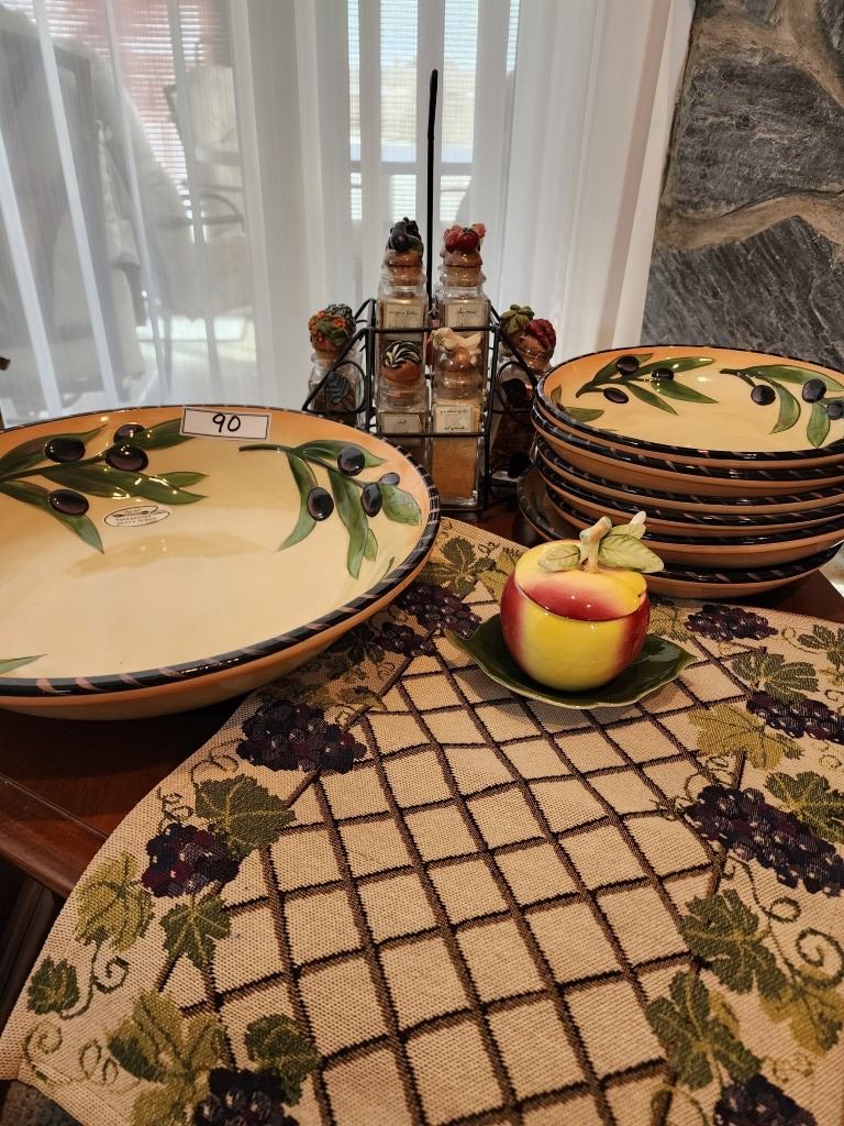 Clay Art Hand Painted Rustica Extra Large Pasta Bowls, 6 Large Pasta Bowls, Spice Rack, Vintage Sugar Bowl, 6 Placemants