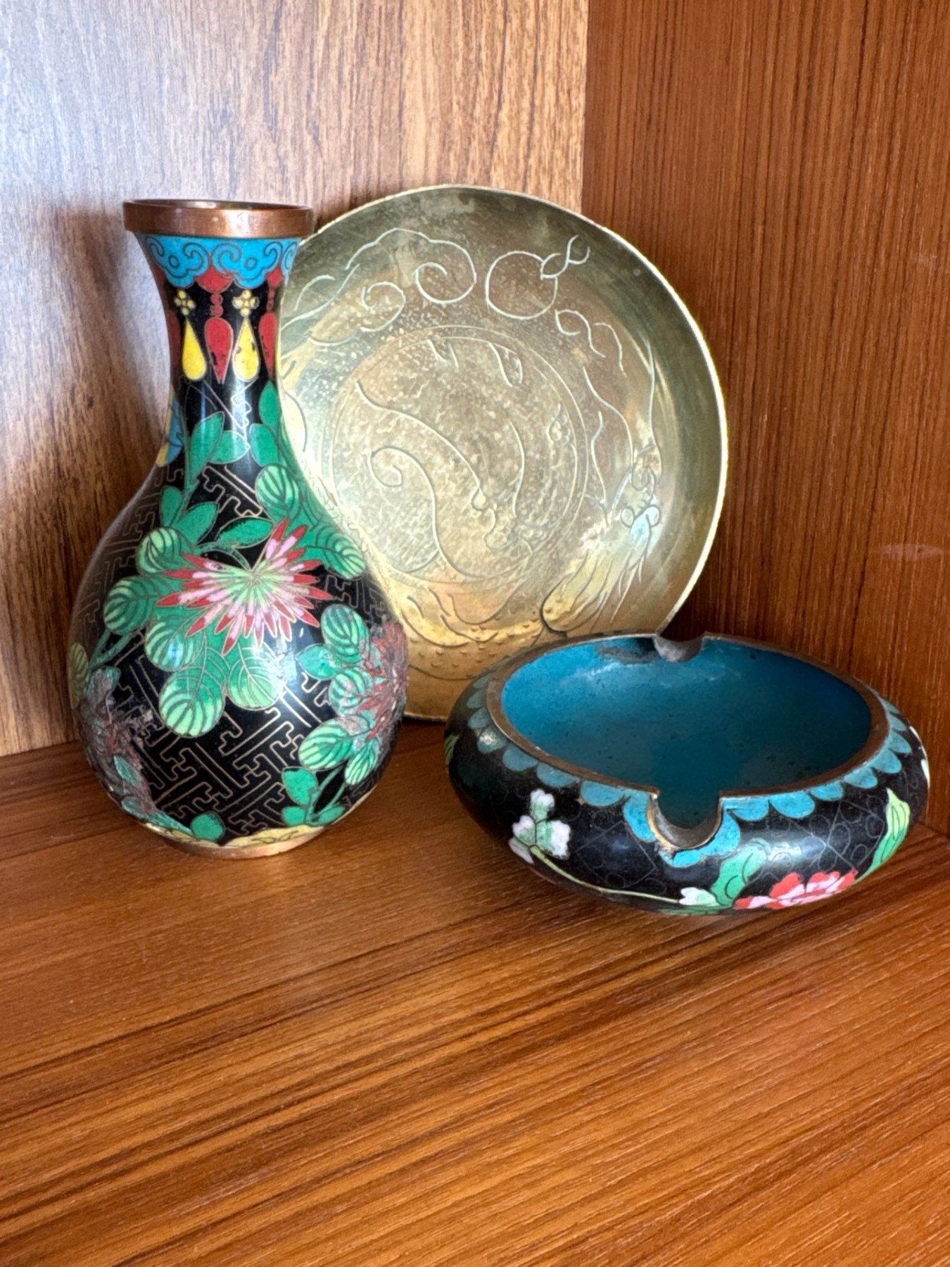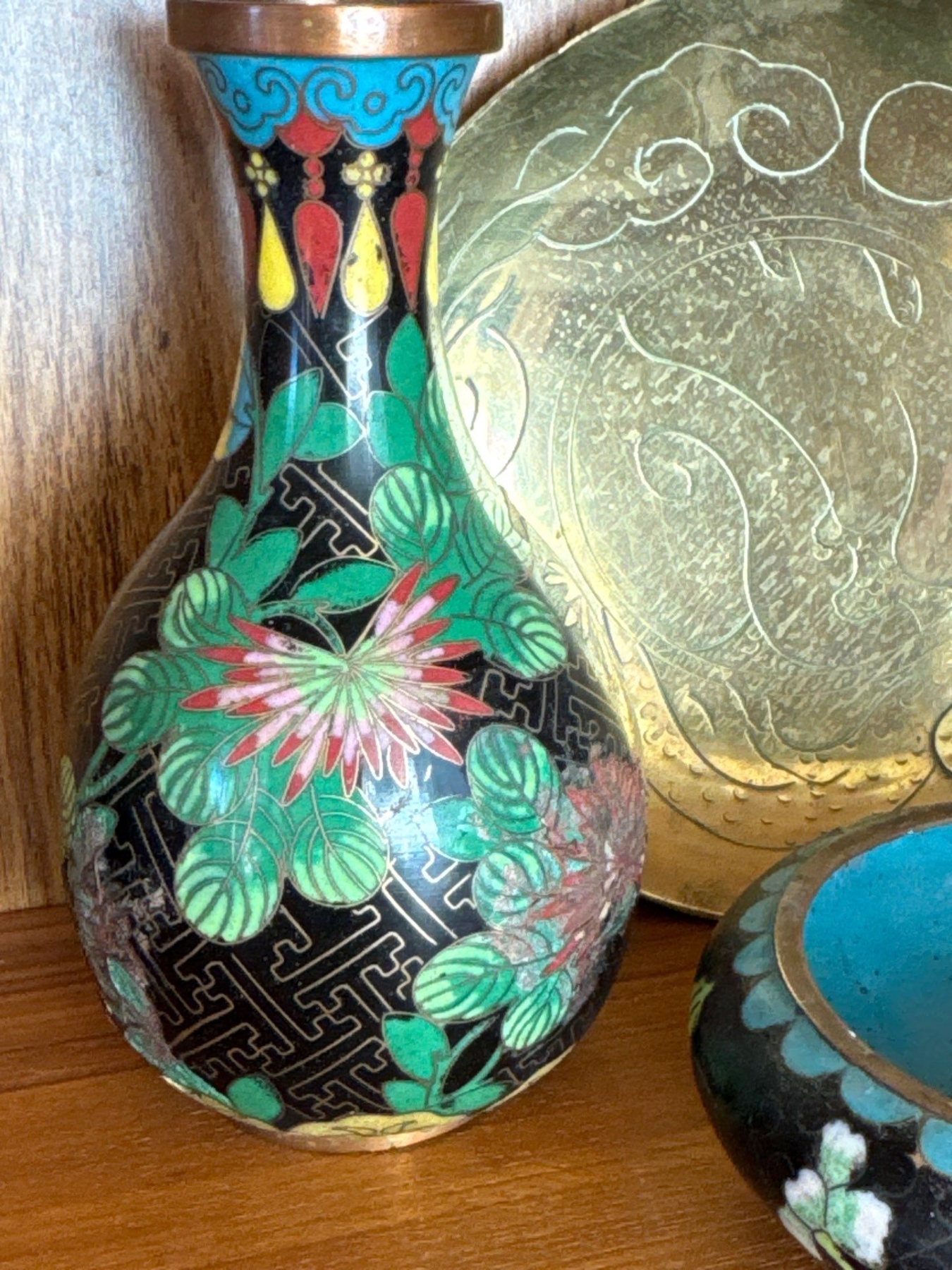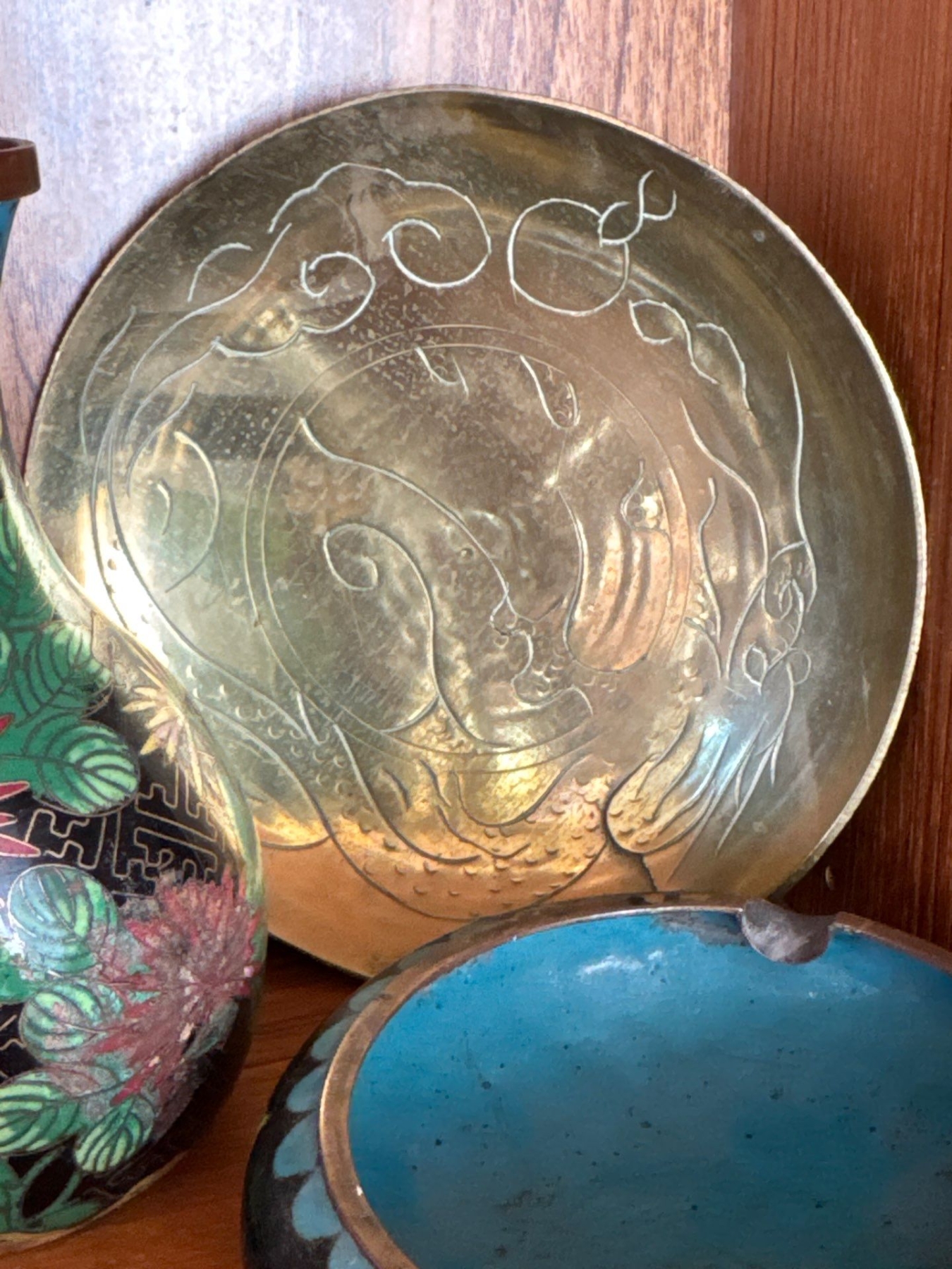 Cloisonne Decorative Housewares w/ Etched Brass Ancient Chinese Wealth Pot 6T