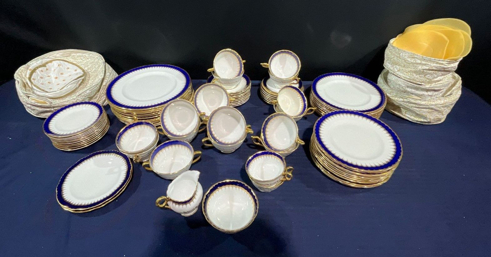 Coalport Spearpoint Cobalt Patterned China, 7 Full Placesettings plus Extras