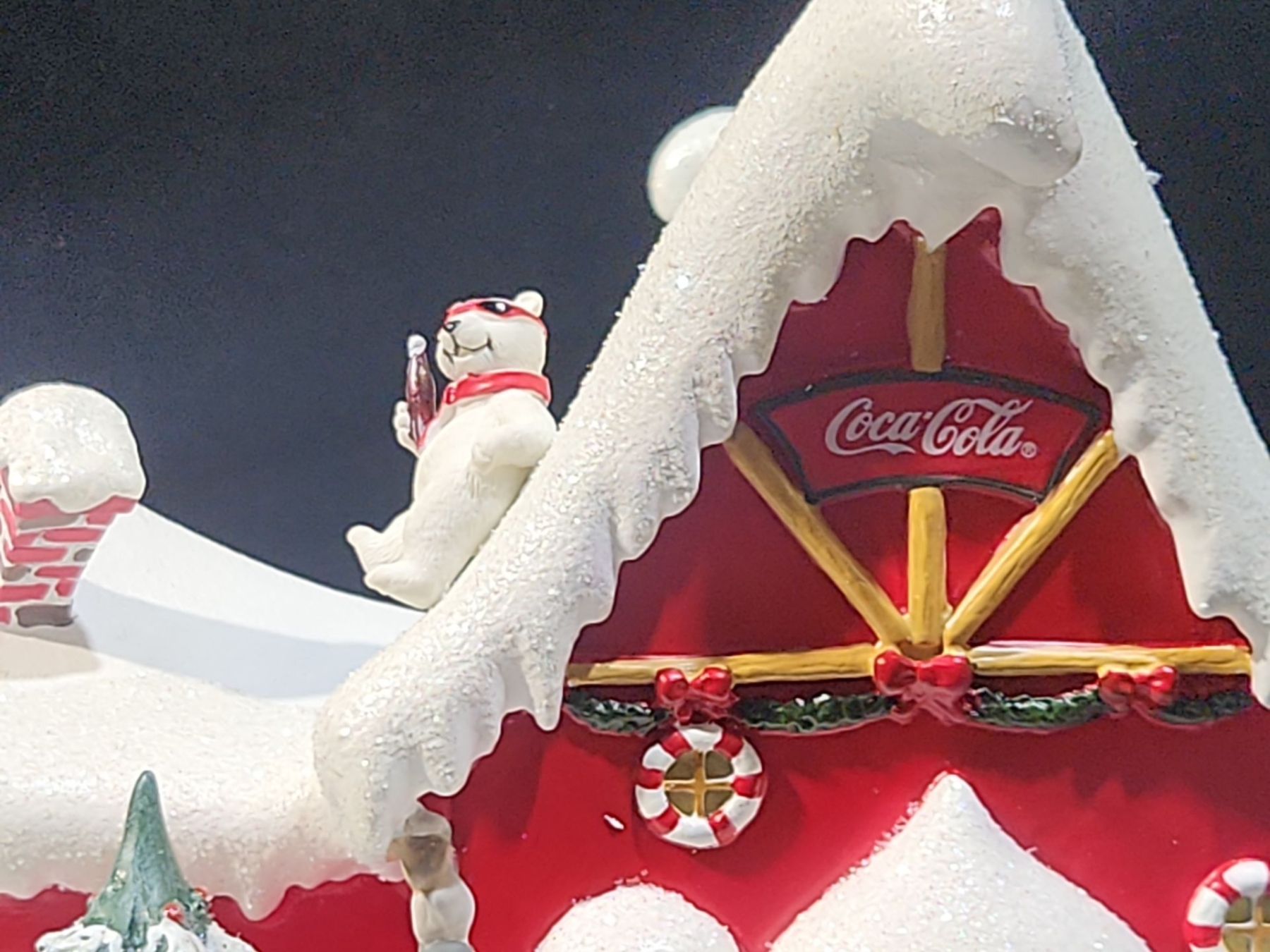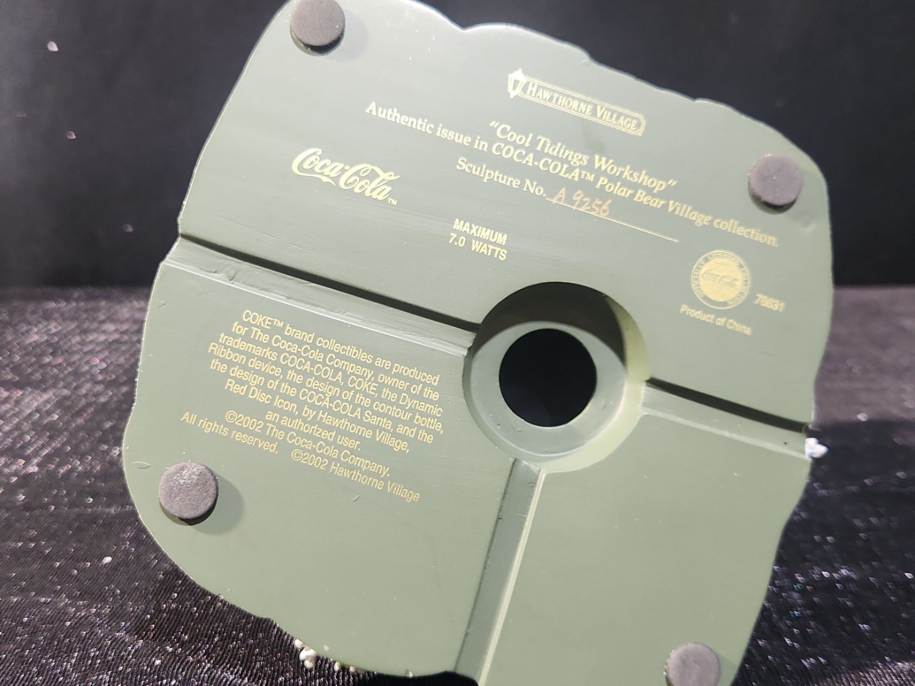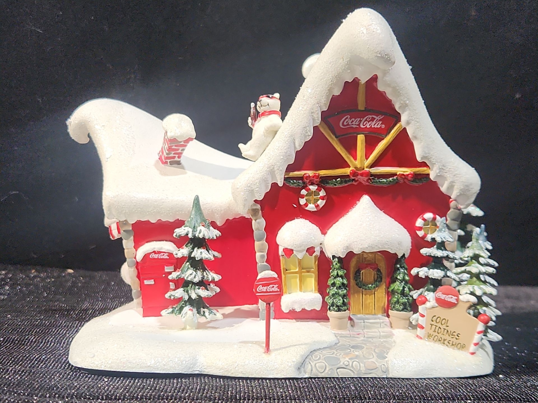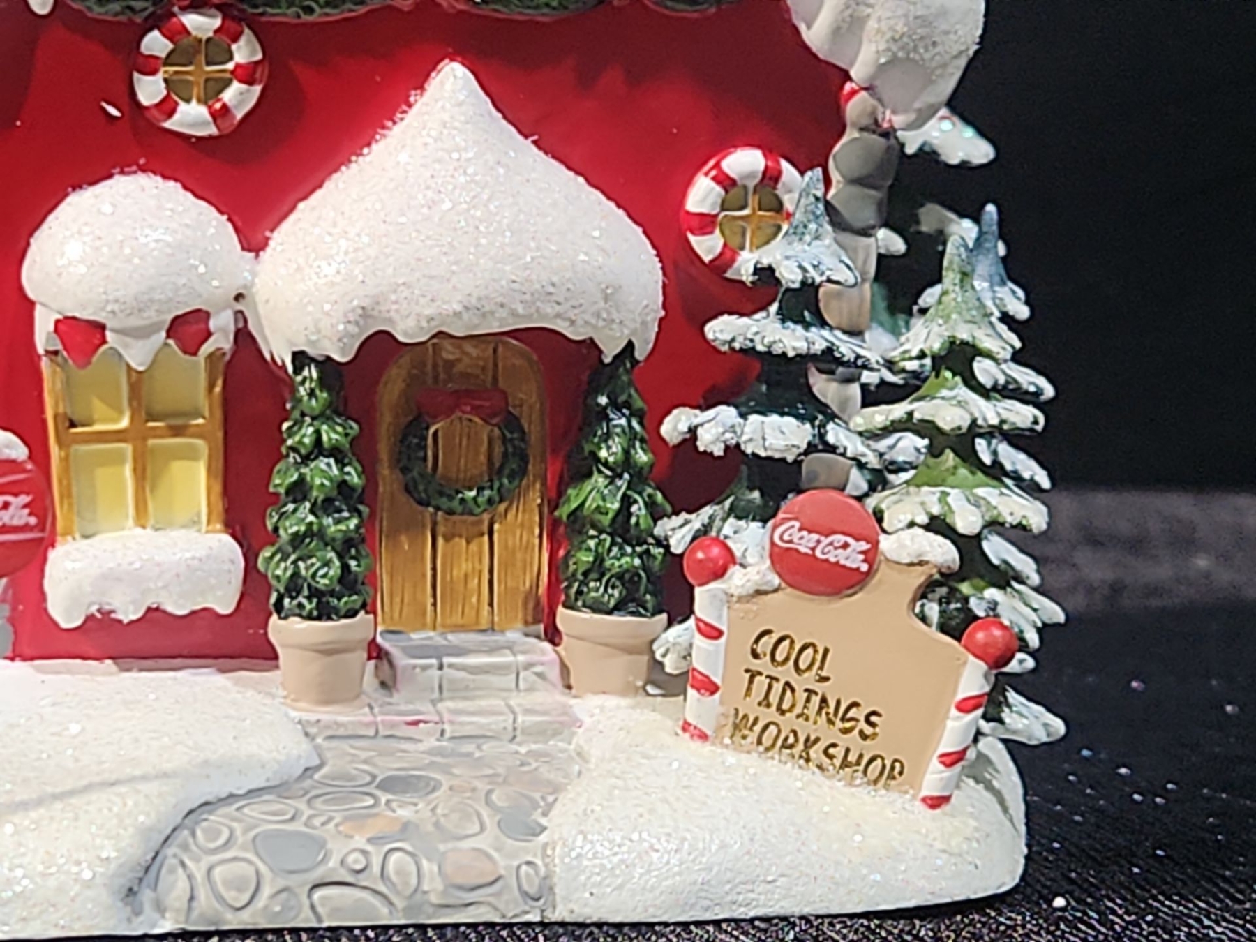A delightful piece from the Coca-Cola Polar Bear Village Collection, titled “Cool Tidings Workshop.” This charming collectible features the iconic Coca-Cola polar bears engaged in festive workshop activities, highlighted with bright colours and whimsical detailing. Crafted with quality materials and strong display appeal, it’s an excellent addition for Coca-Cola memorabilia collectors or those building a holiday village scene.