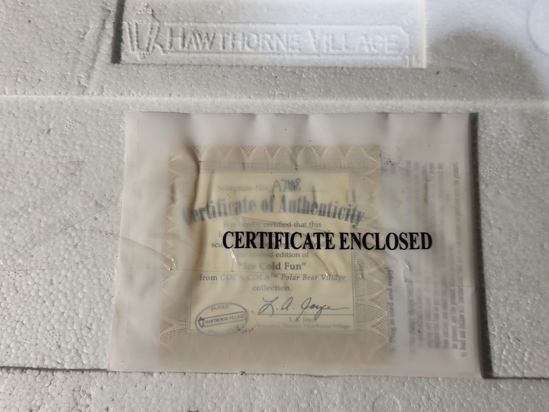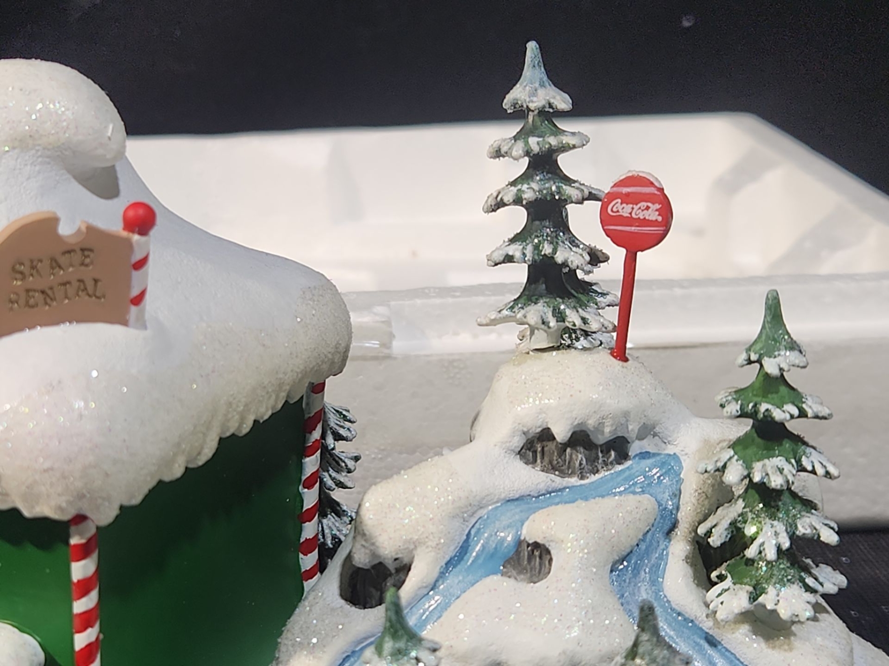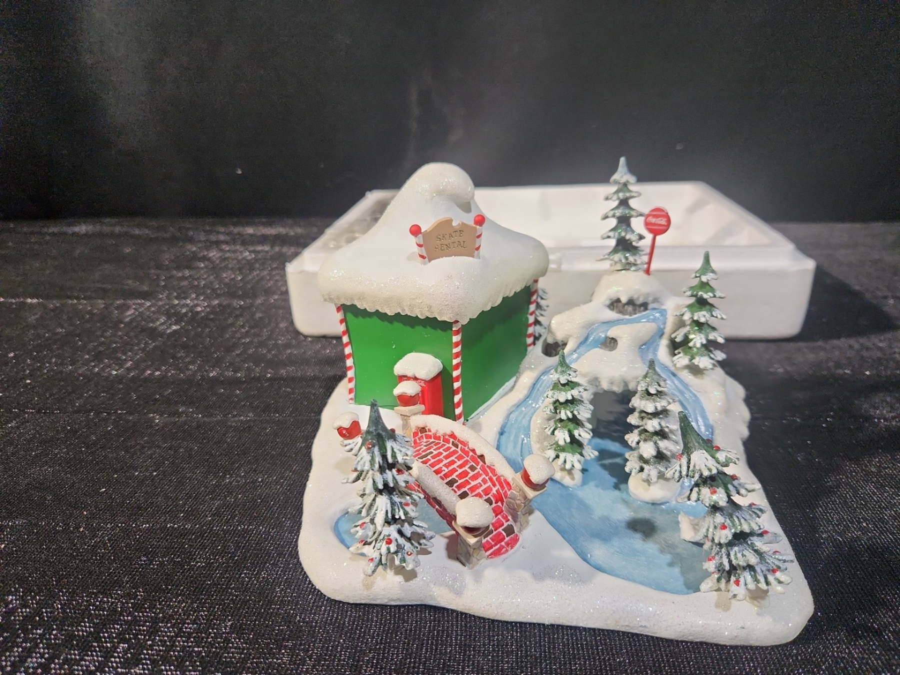 A charming piece from the Coca-Cola Polar Bear Village Collection titled “Ice Cold Fun,” featuring the beloved polar bears in a playful winter scene with classic Coca-Cola styling. Bright colours and whimsical details make this a strong display item. Please note: the piece requires a minor repair, reflected in the lot description. An appealing collectible for Coca-Cola enthusiasts or holiday village builders.
