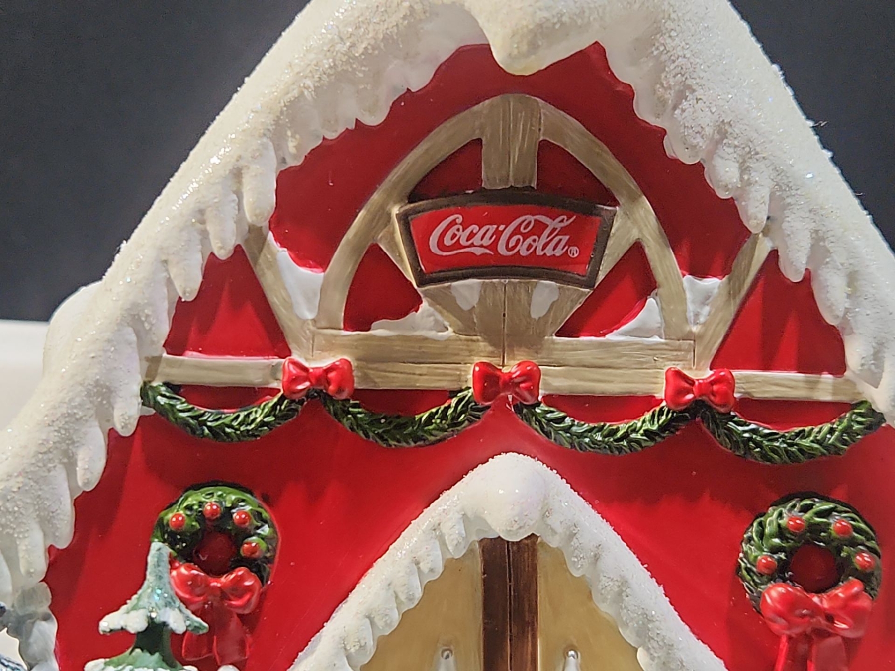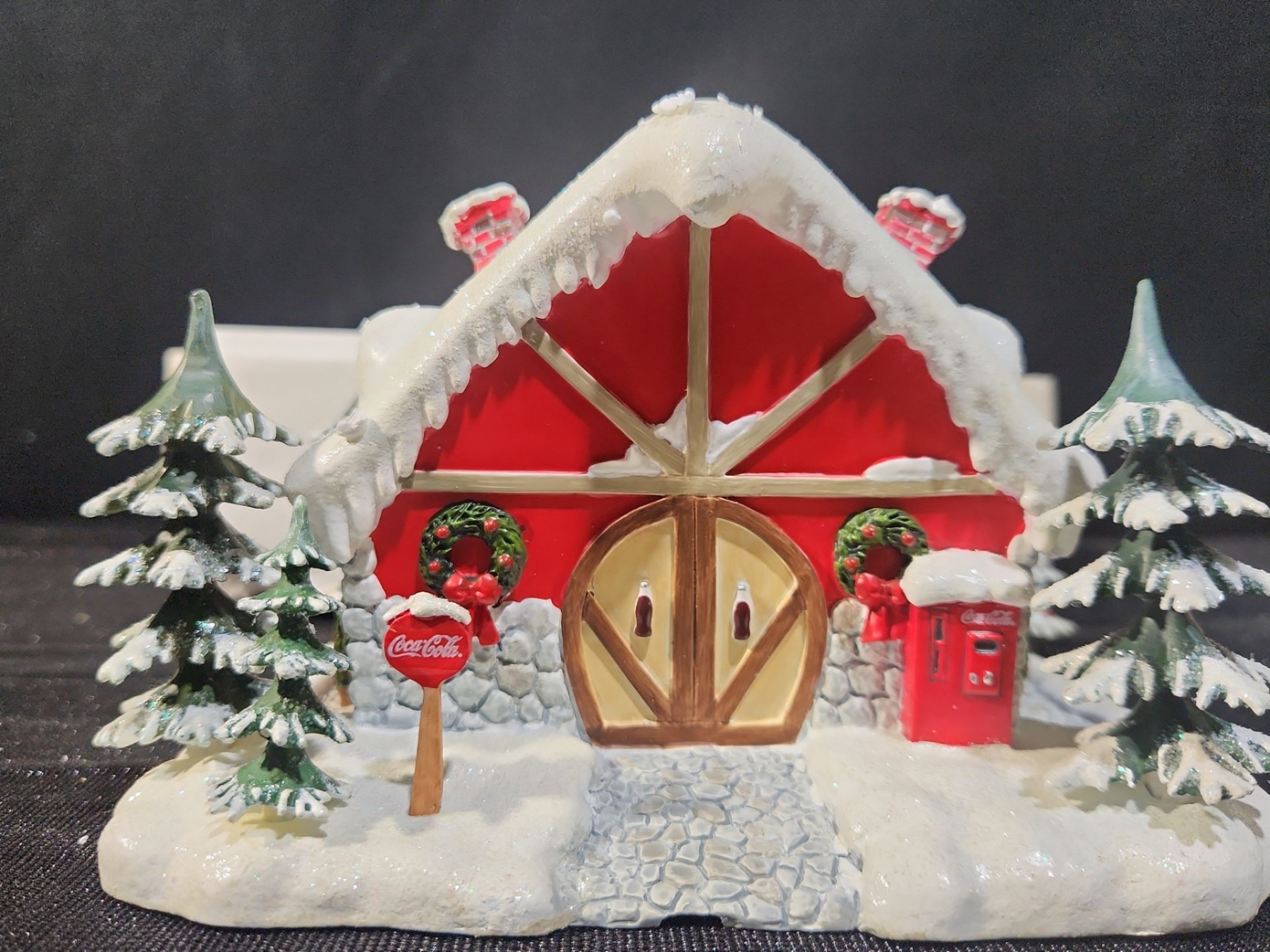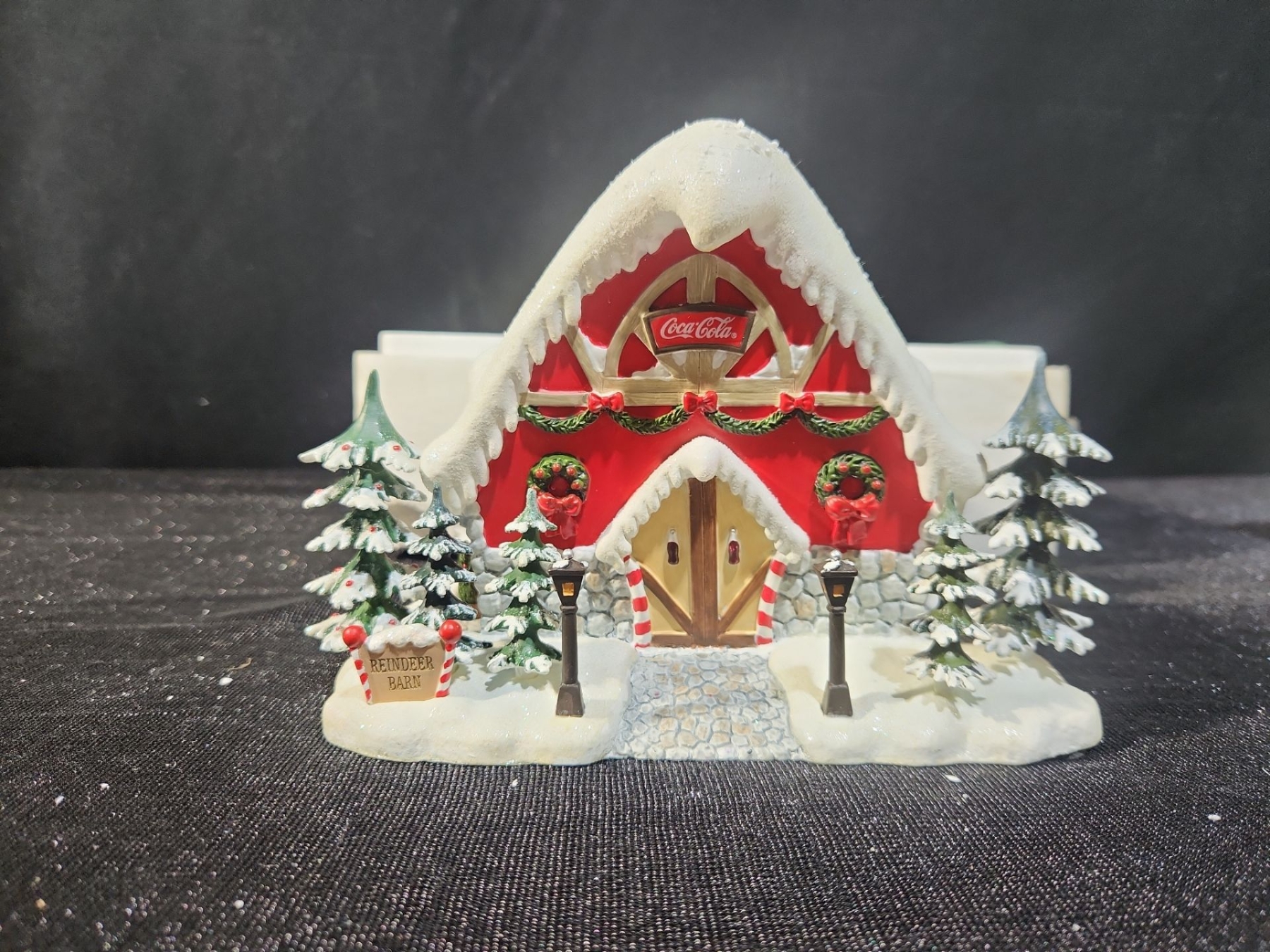A festive collectible from the Coca-Cola Polar Bear Village series titled “Jingle Bell Reindeer Barn.” This charming piece features the iconic Coca-Cola polar bears in a whimsical holiday barn scene, complete with bright colours, playful details, and classic Coca-Cola branding. Crafted with strong display appeal, it’s an excellent addition for Coca-Cola memorabilia enthusiasts or anyone building a holiday village display.