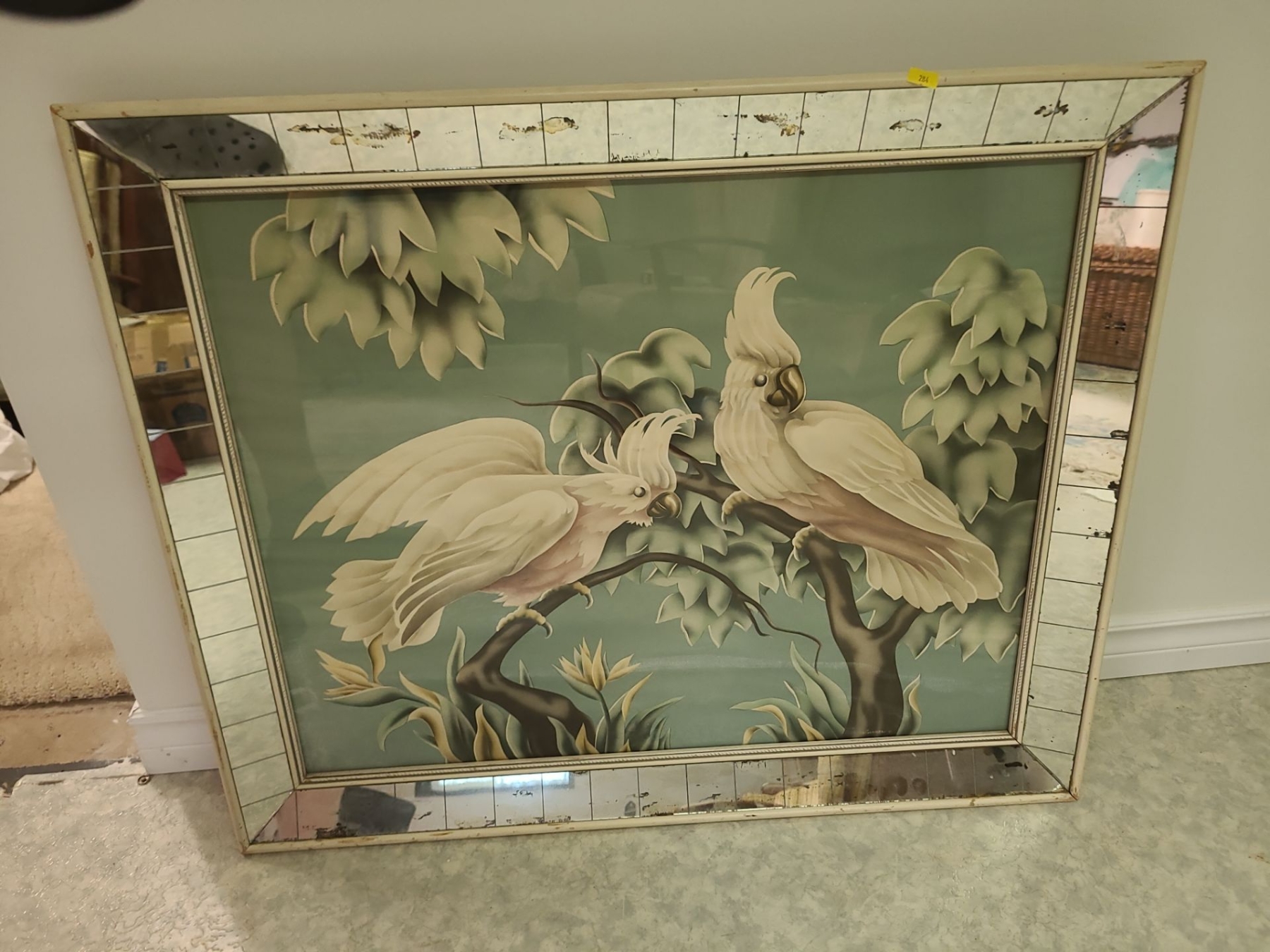 Cockatoo print with mirrored edge frame - 32W, 27T