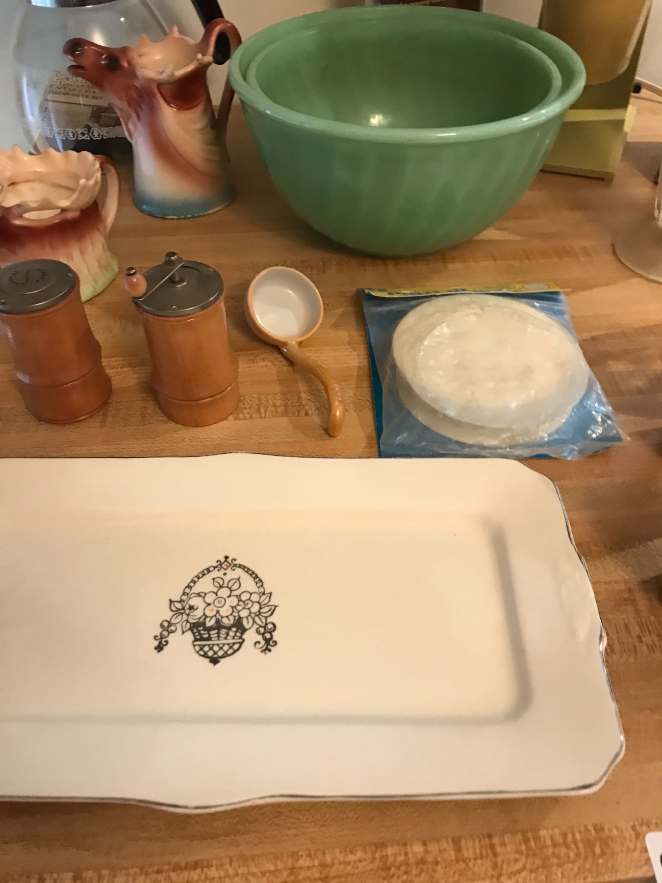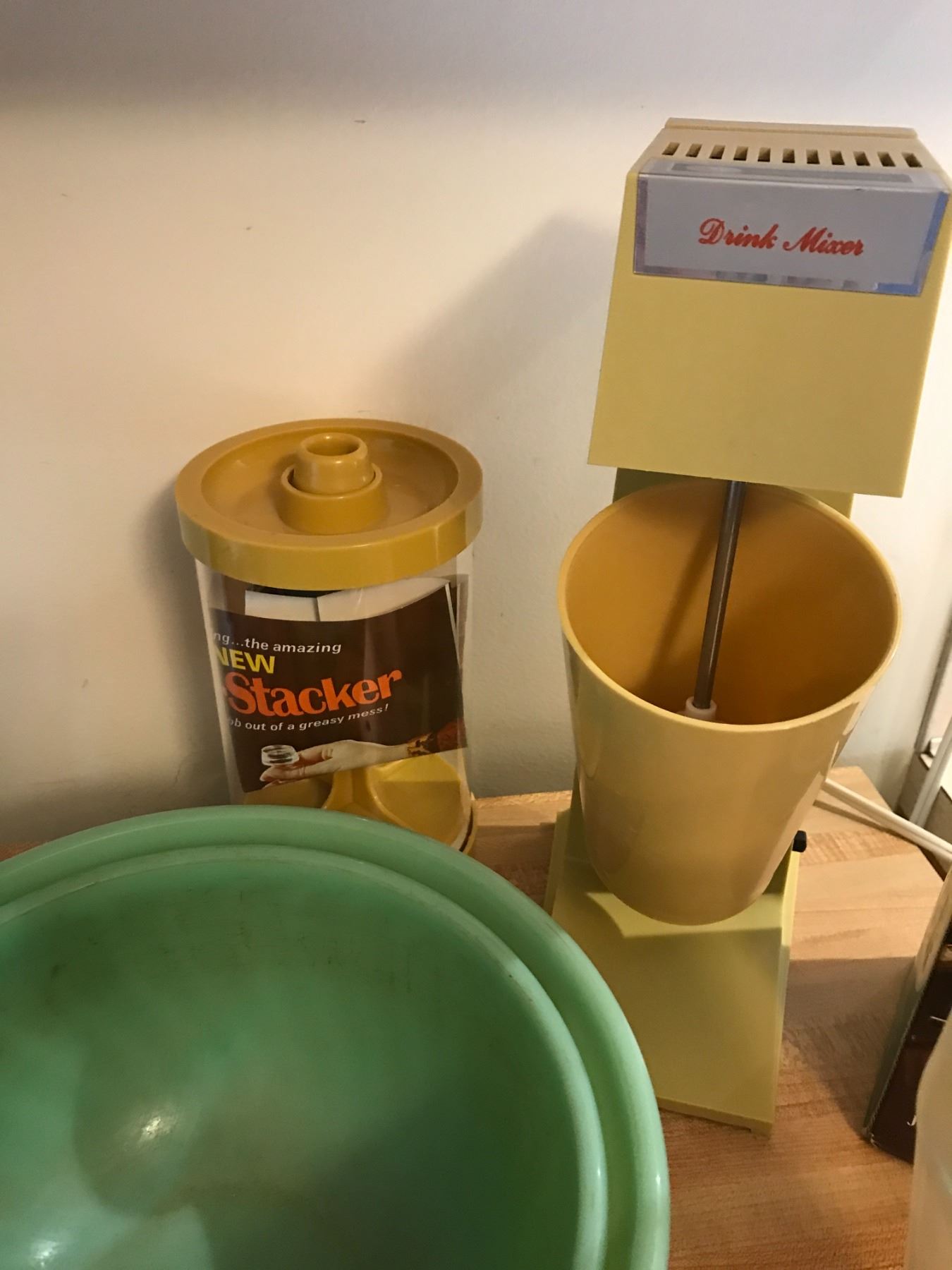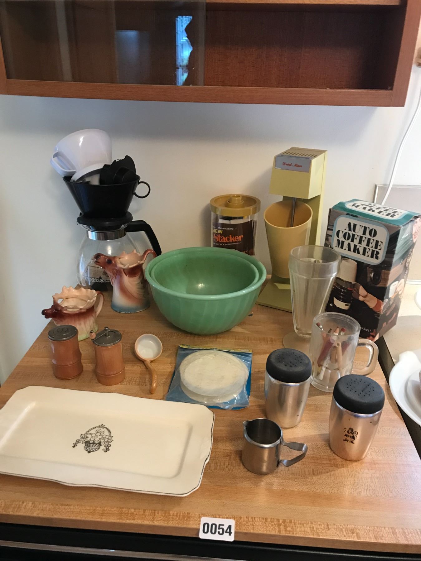 Coffee Maker, Drink Mixer, Retro Green Bowls & Porcelain Moose Creamers