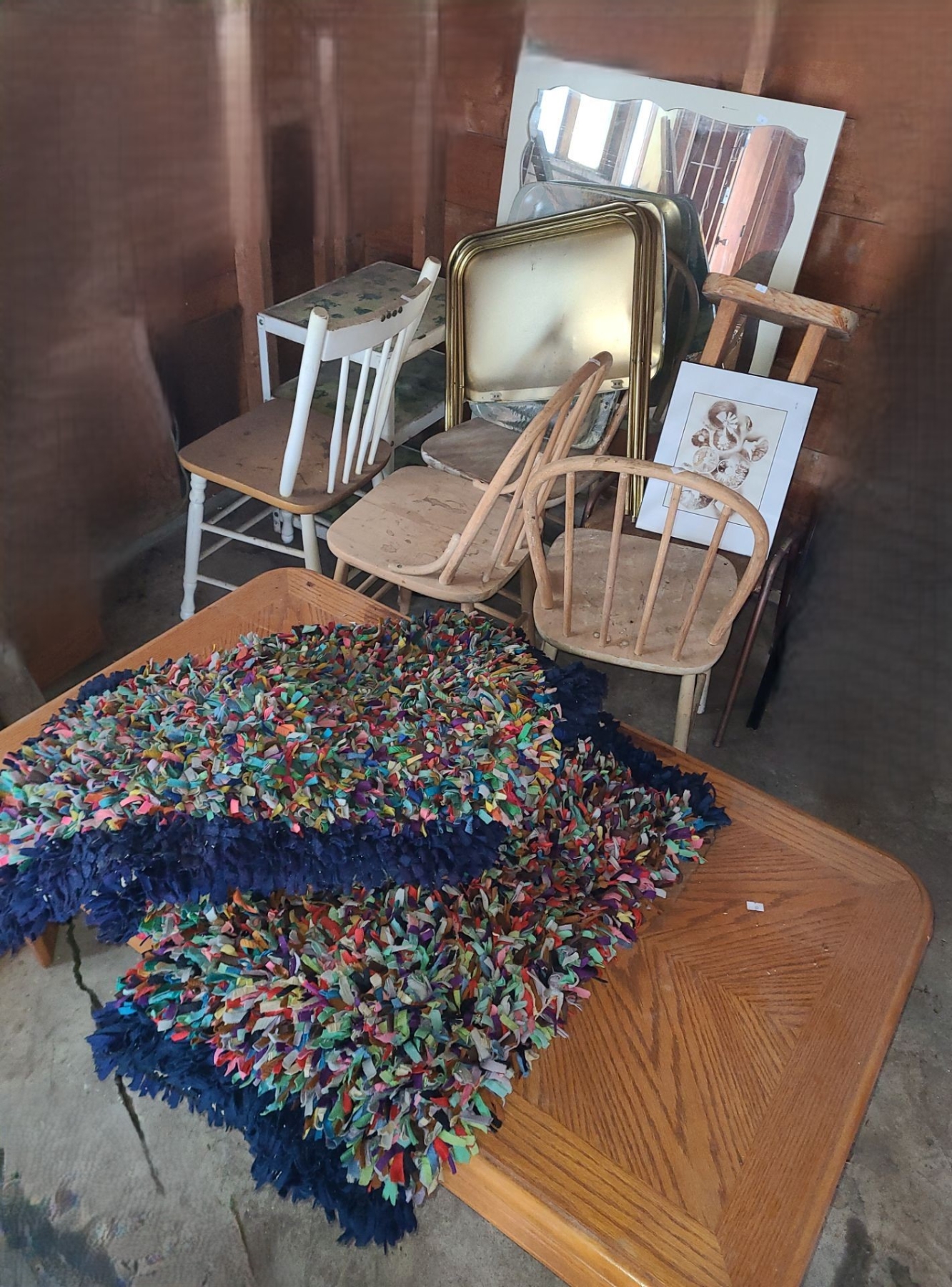 Coffee Table 49 W, 29 D, 17 T, Mirror 29 X 46, Utility Doorway Rugs, Chairs and More!