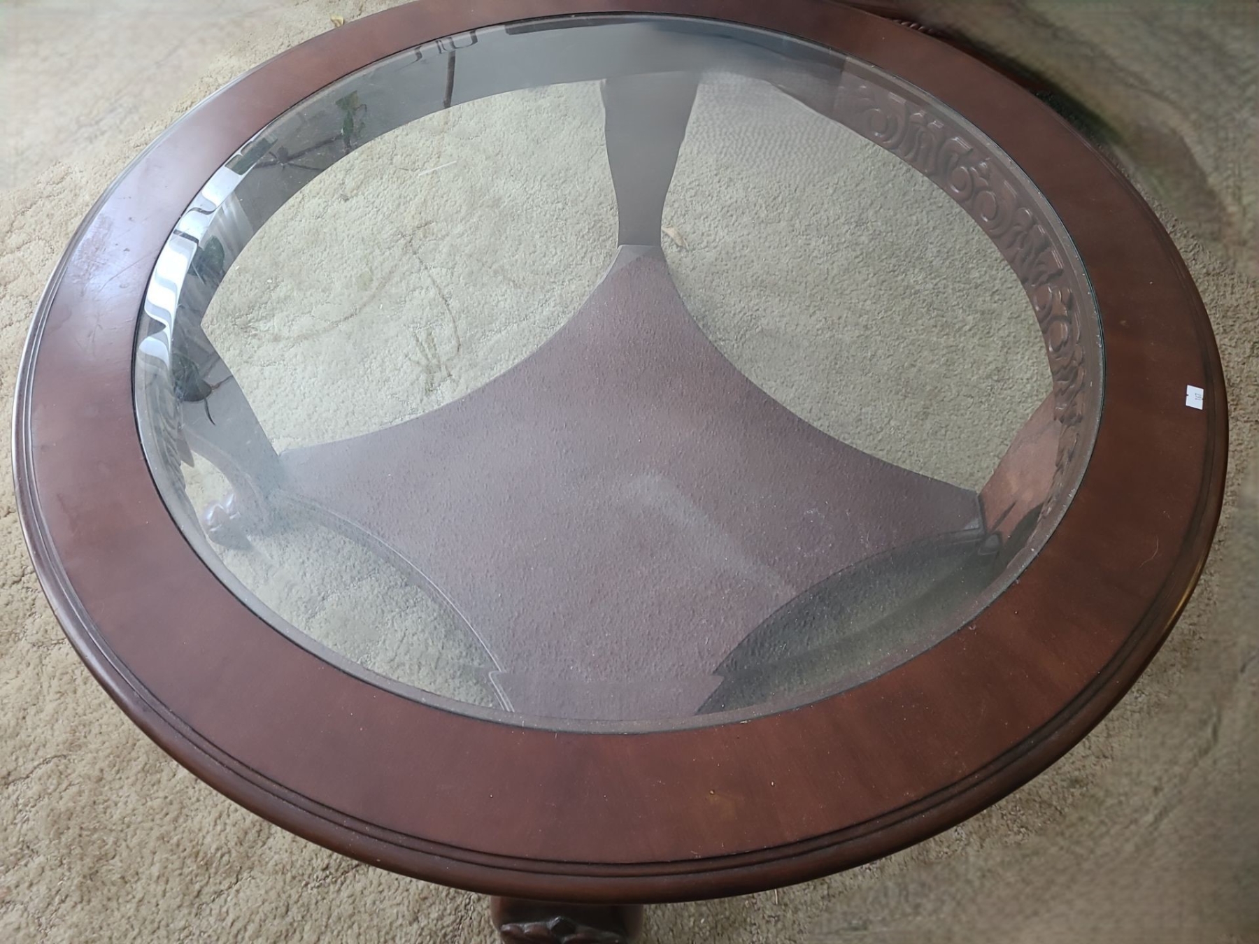 Coffee Table w/ Bevelled Glass Top 40" Diameter, 19 T