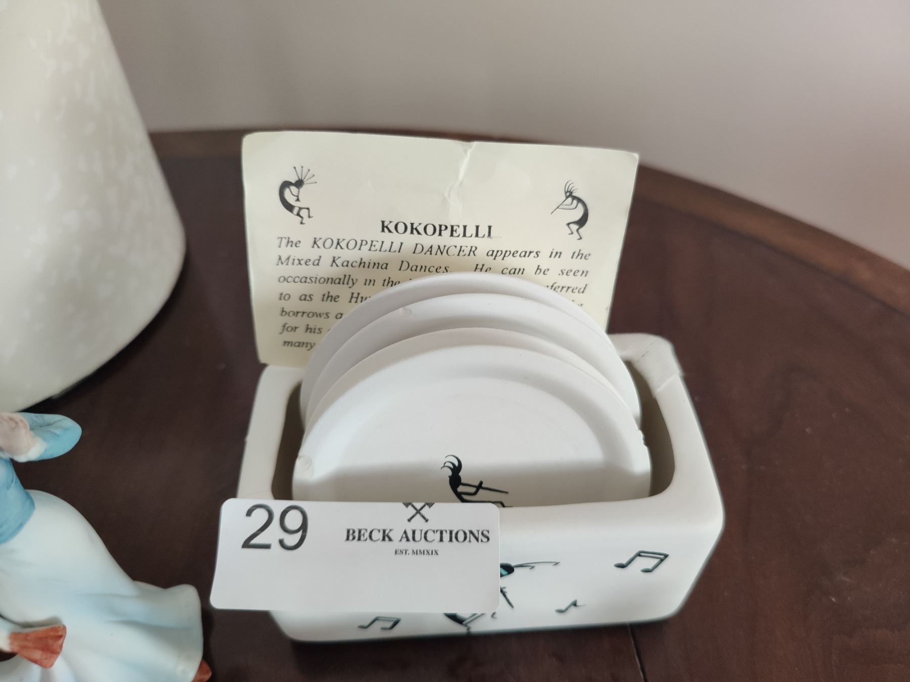 9 adorable figurines, and Kokopelli coasters (1 has small chip), all others in mint condition,