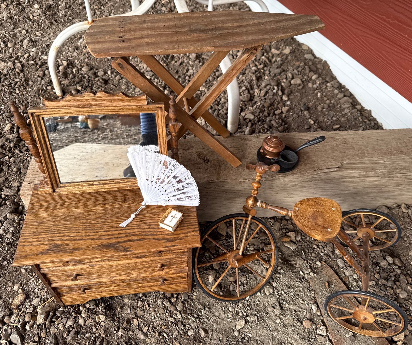 Collectible Doll Accessories - Antique Dressing Table Ironing Board Tricycle & More