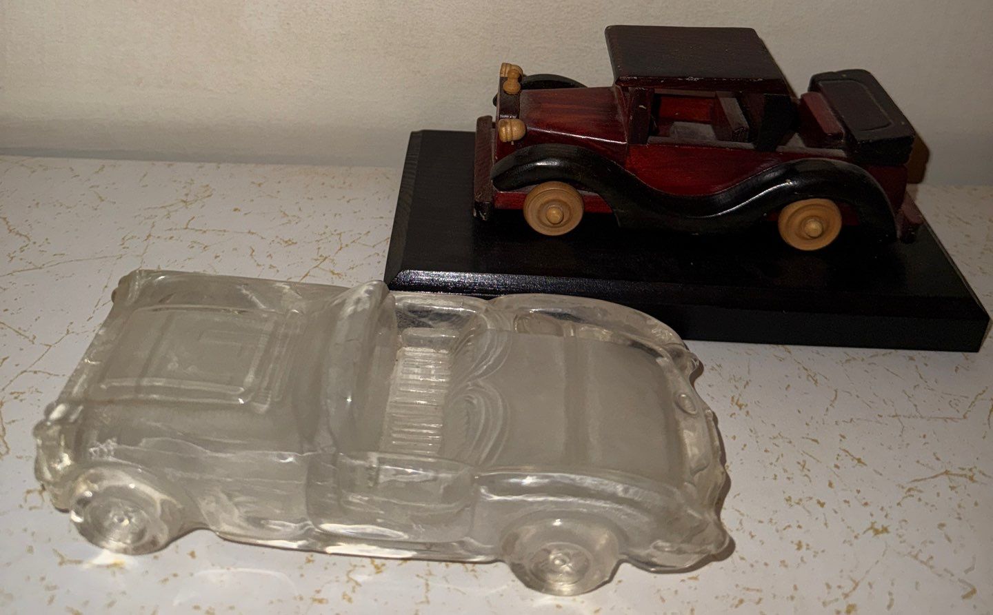 Collectible Paperweight Shaped Like A 1959 Chevrolet Corvette Convertible & Wood ModelT