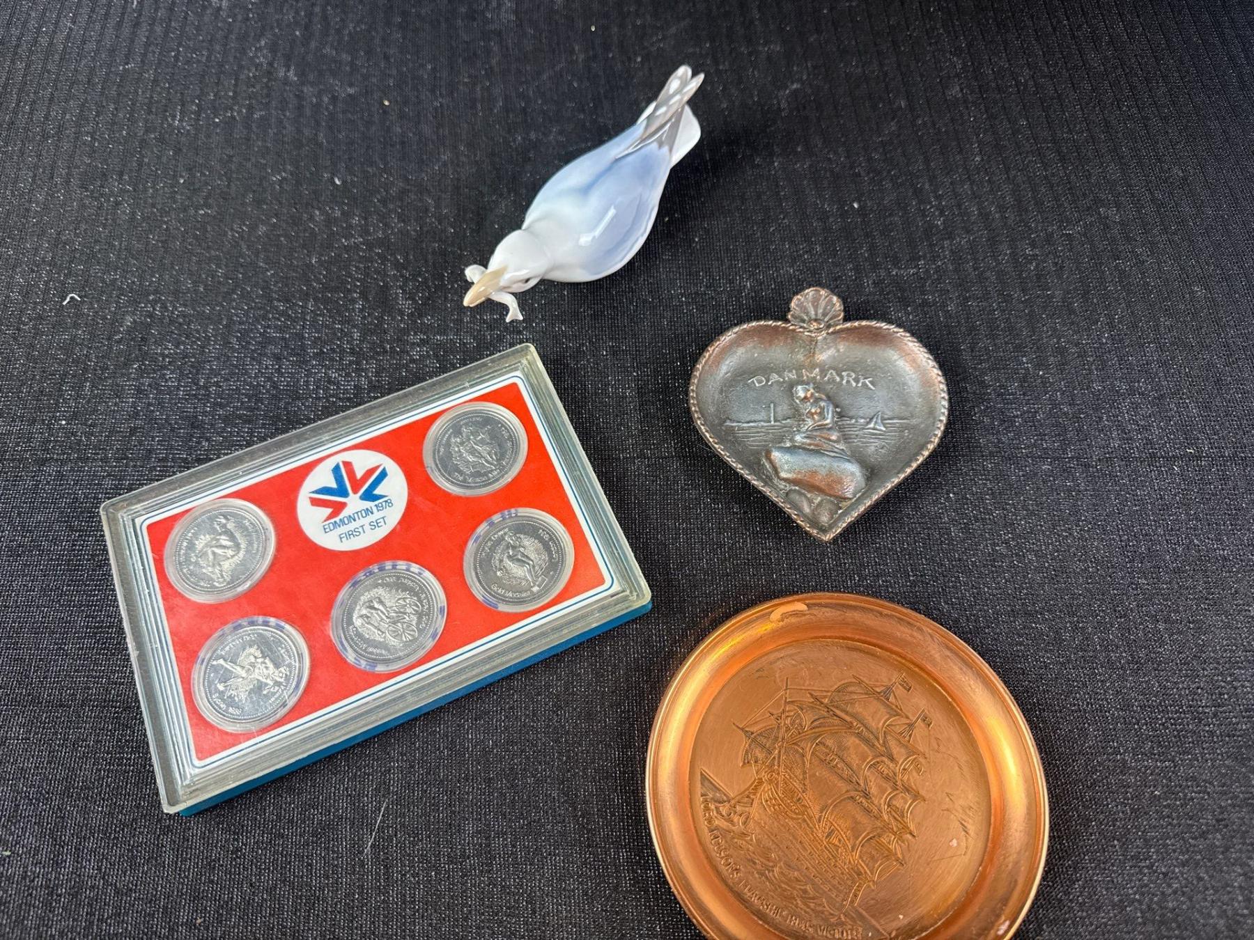 Collectibles - B&G Decorative Bird Figurine, Copper Plate, 'Danmark' Decor Plate, Commonwealth Coins