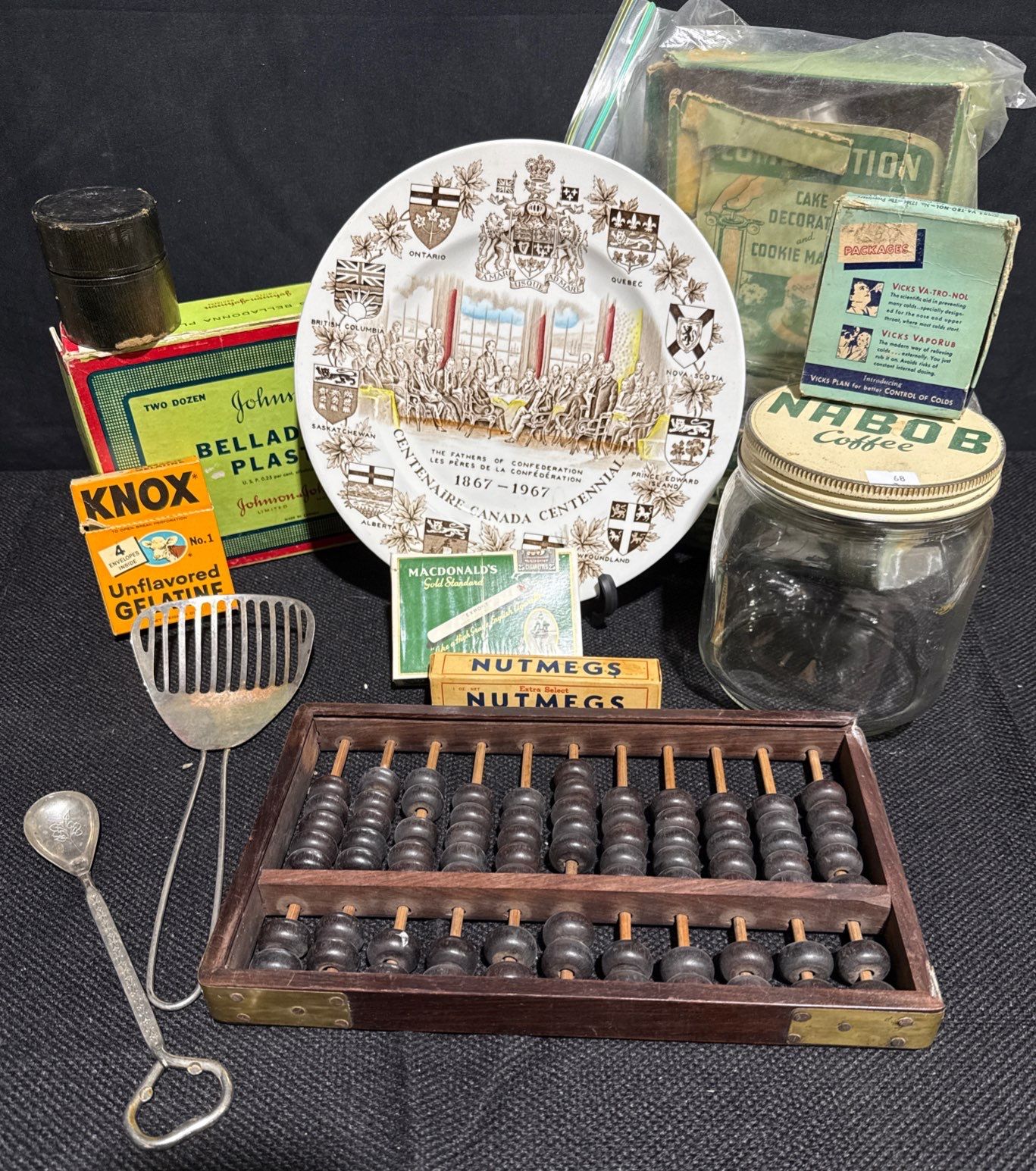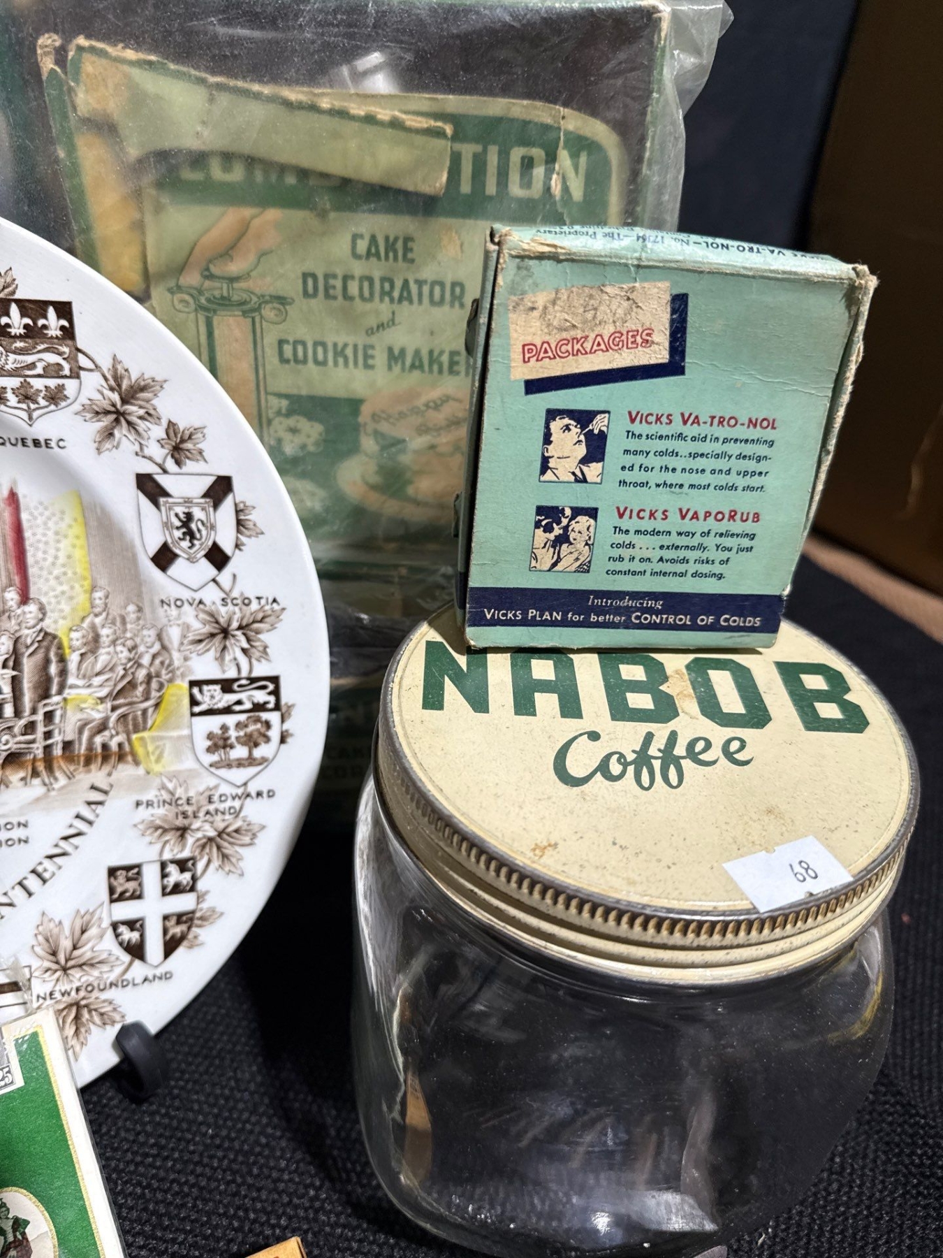 Collection Of Antique Items & Boxes Nabob Coffee Jar, Nutmegs, MacDonald Menthol & More