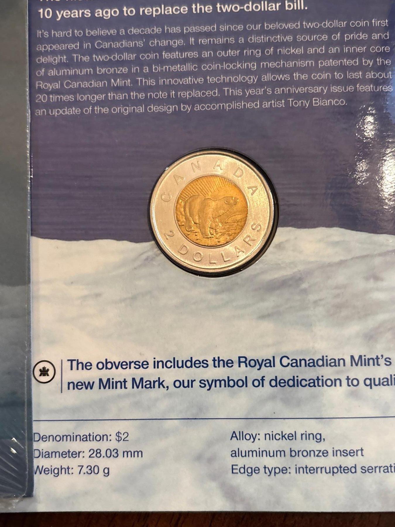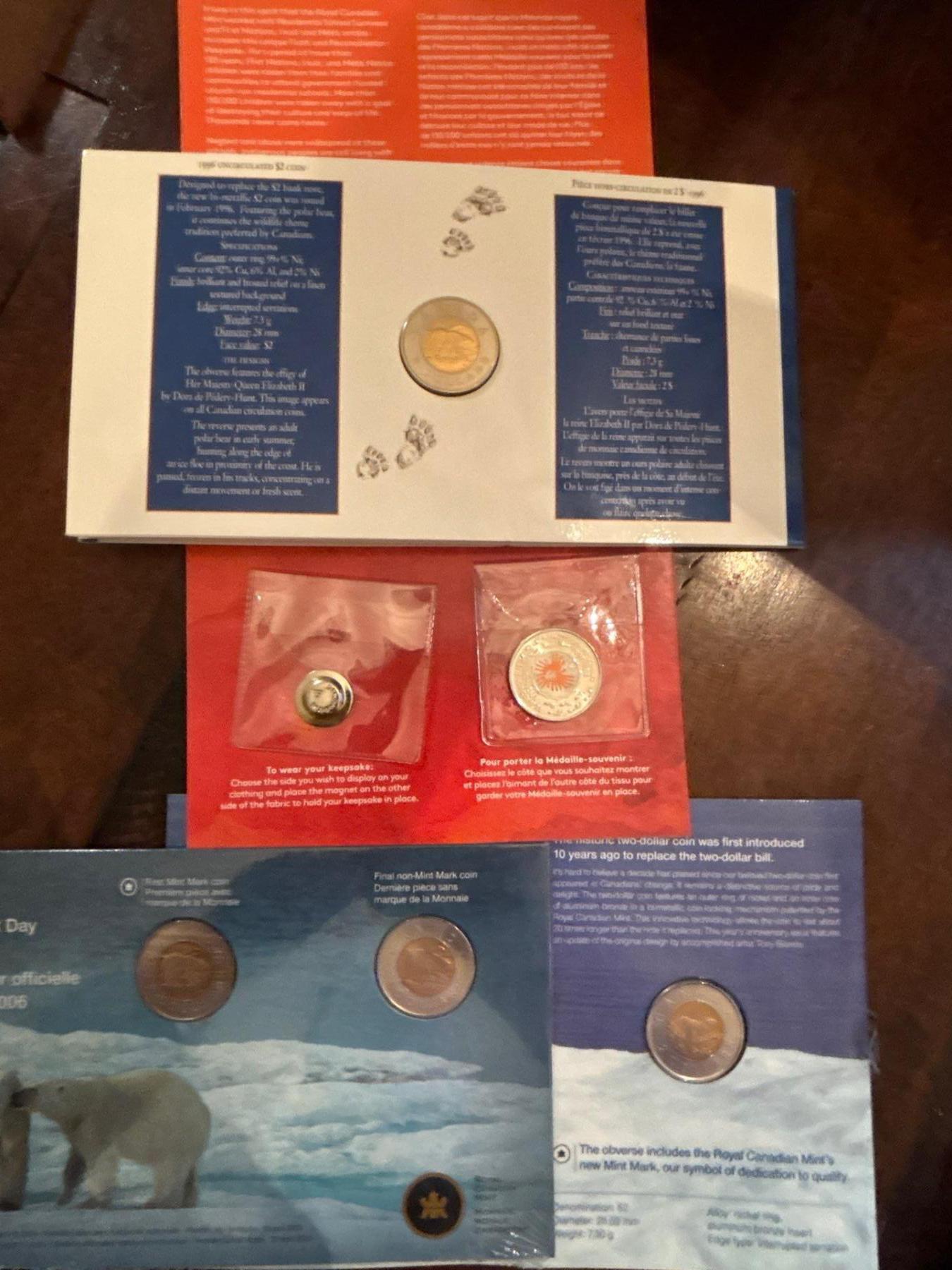 Collection Of Royal Canadian Mint Polar Bear $2 coins all sealed In Original packaging