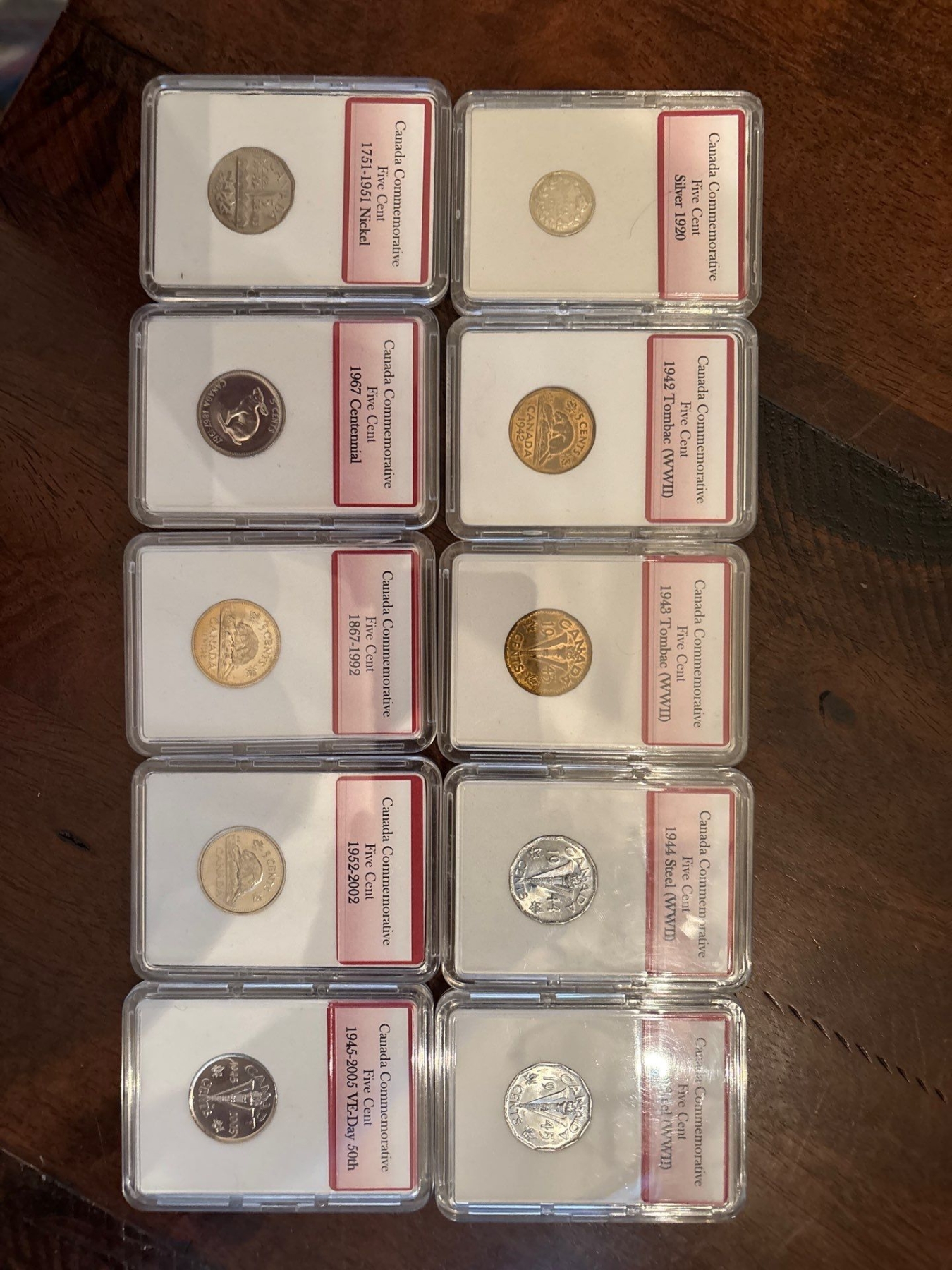 Collection Of Slabbed Canadian Five Cents From 1920-2005 With Victory 5 Cent Collection
