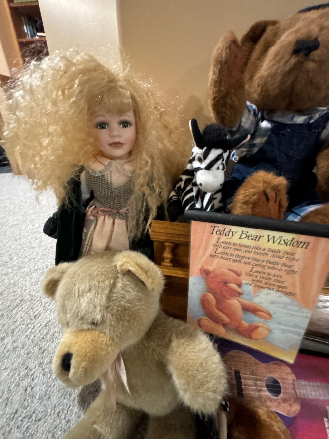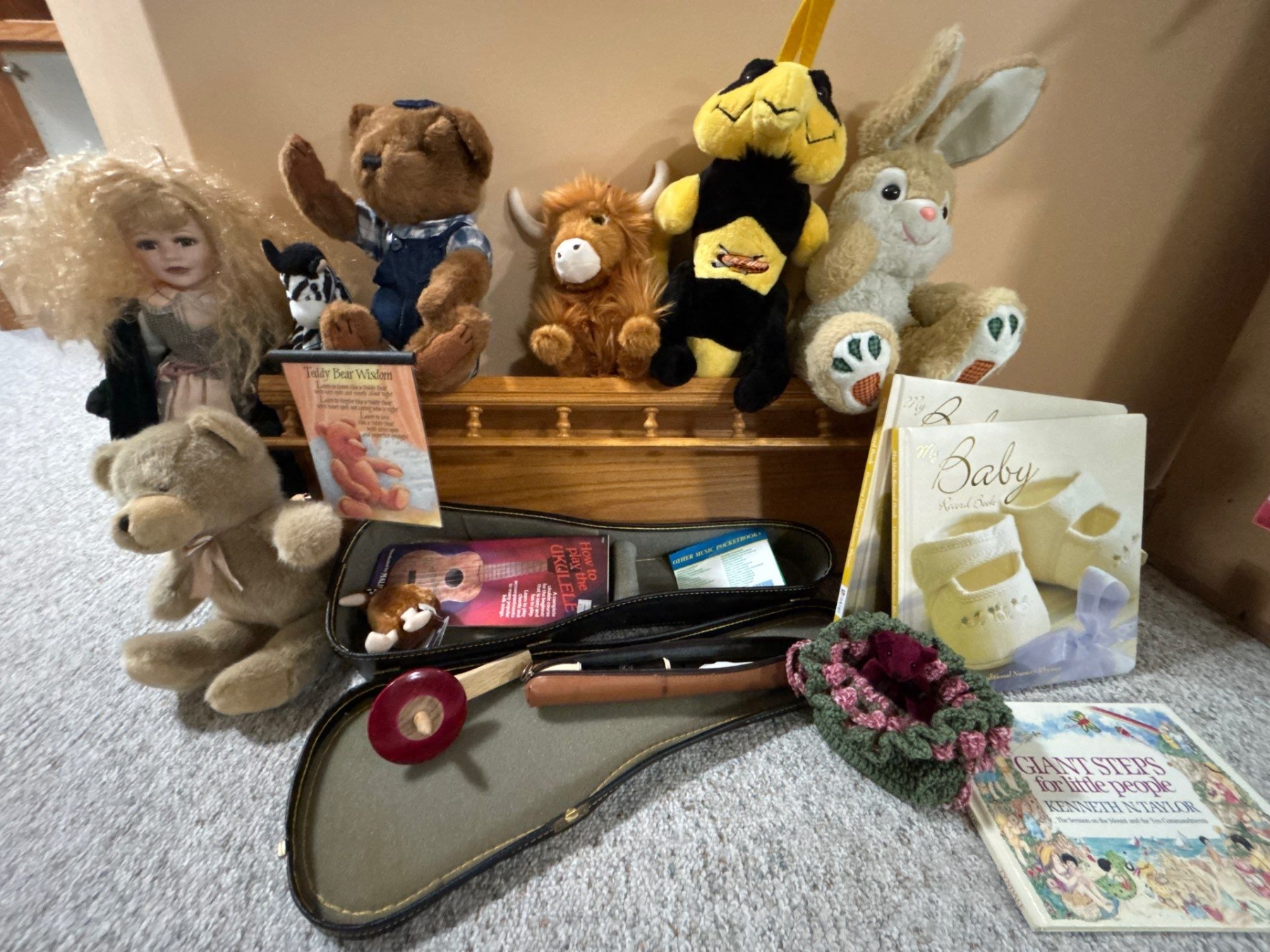 Collection Of Stuffed Animals Vintage Doll & Shelf