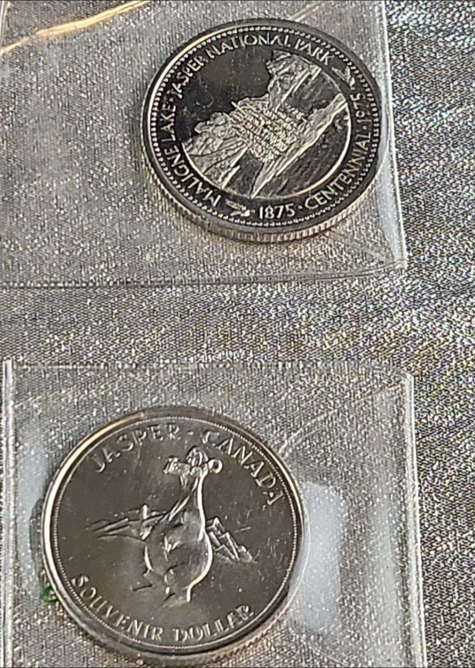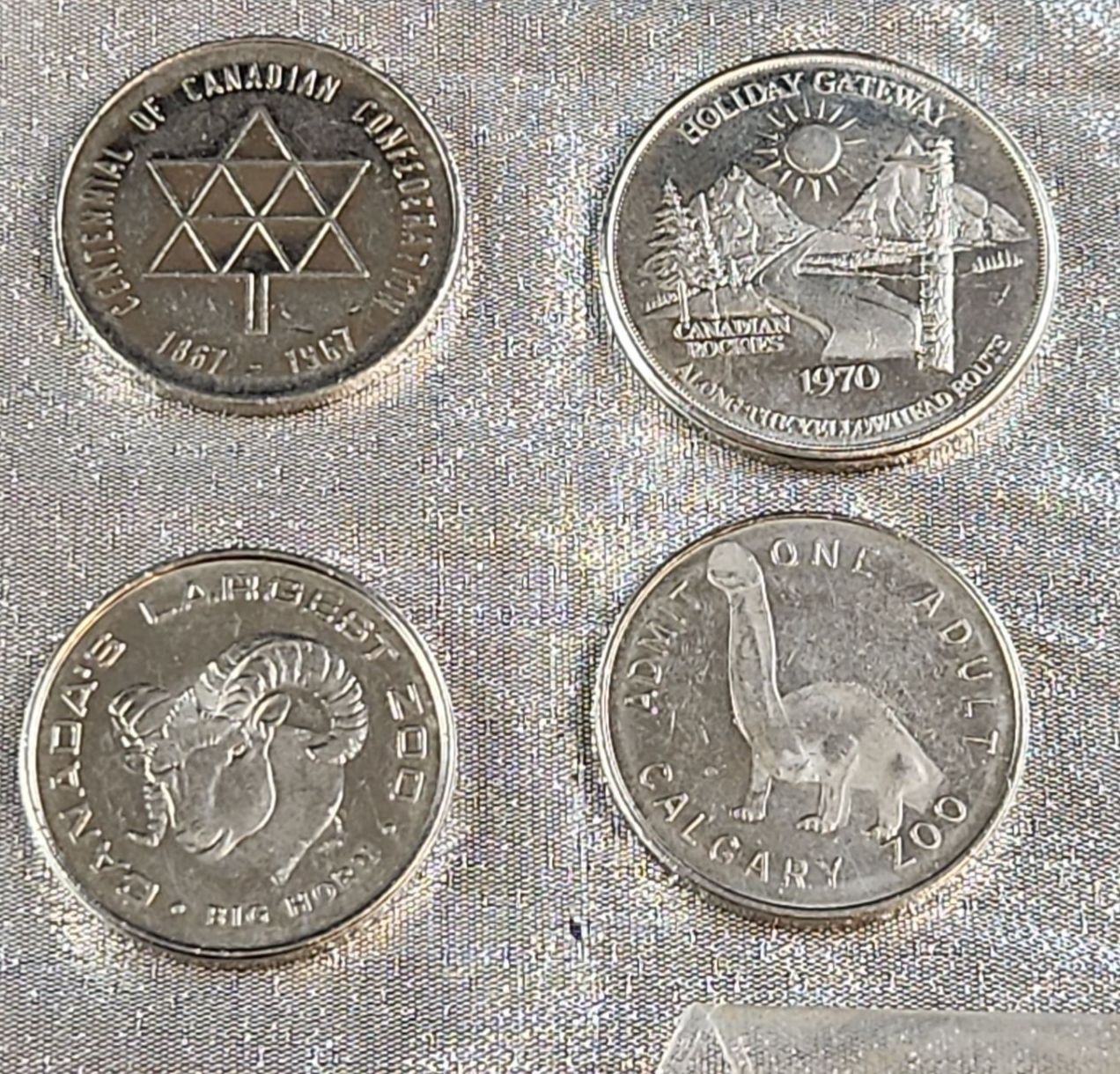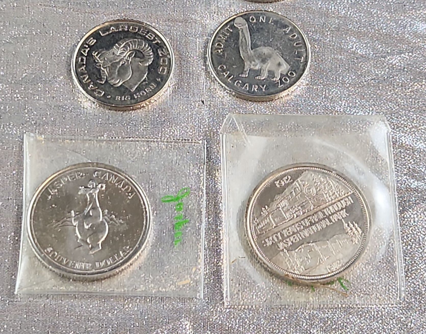 A collection of various vintage coins and numismatic tokens, related to Edmonton, Alberta, and the surrounding region, as well as Canadian commemorative coins from various places. Some in plastic protective cases.