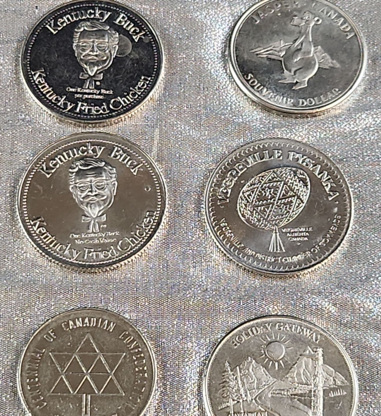 Collection Of Various Vintage Commemorative Coins Including Klondike Days, KFC Bucks, Edmonton, etc