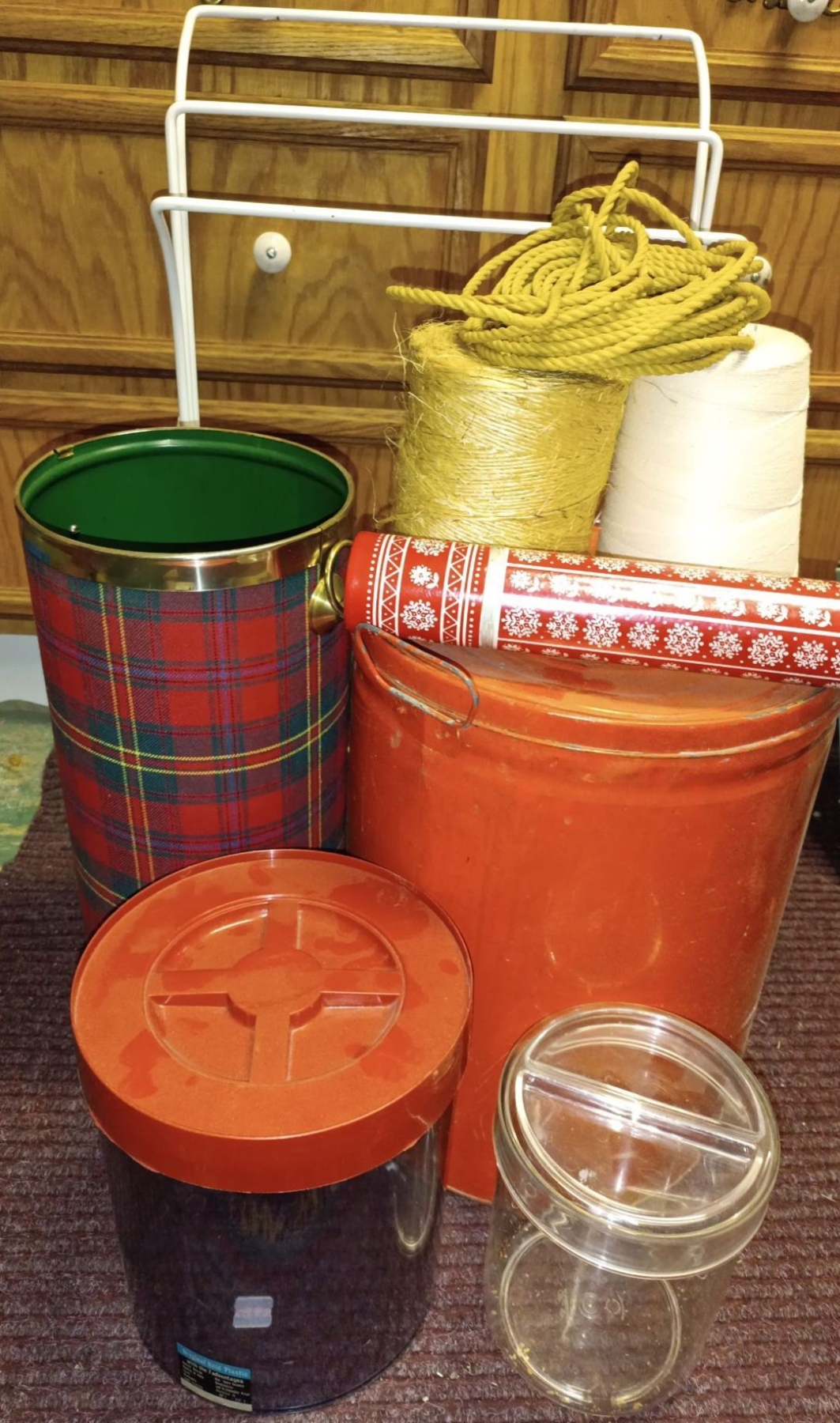 Collection Of Vintage Household Items Towel Rack, Flour Tin & More