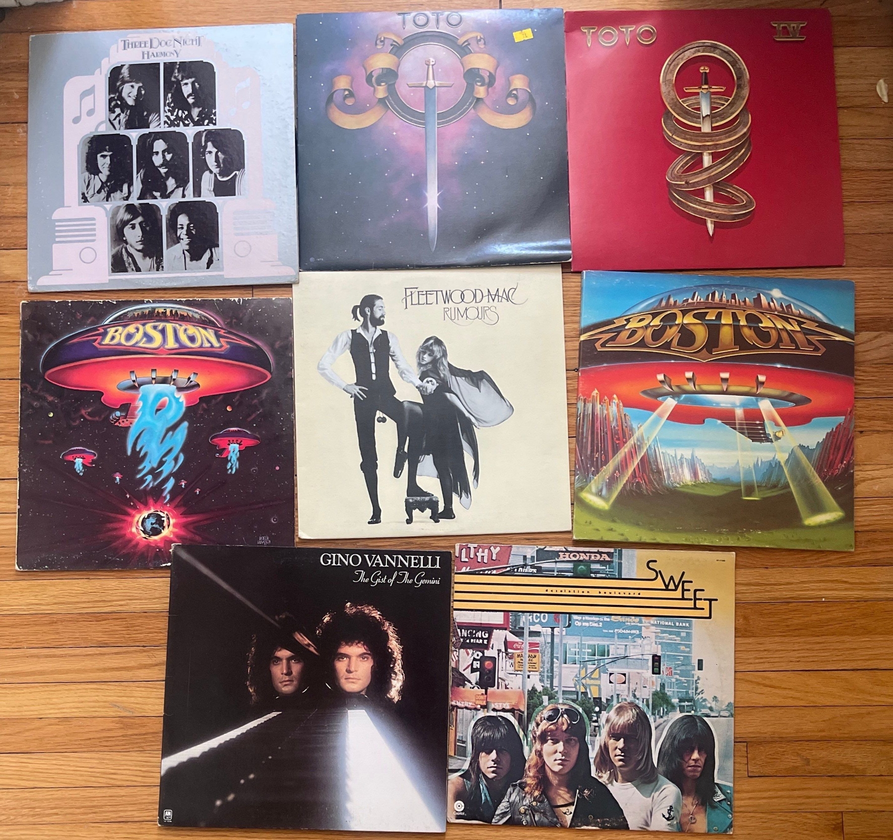 Collection Of Vintage Vinyl Record Albums Toto, Boston, Fleetwood Mac, Gino Vanelli, & More