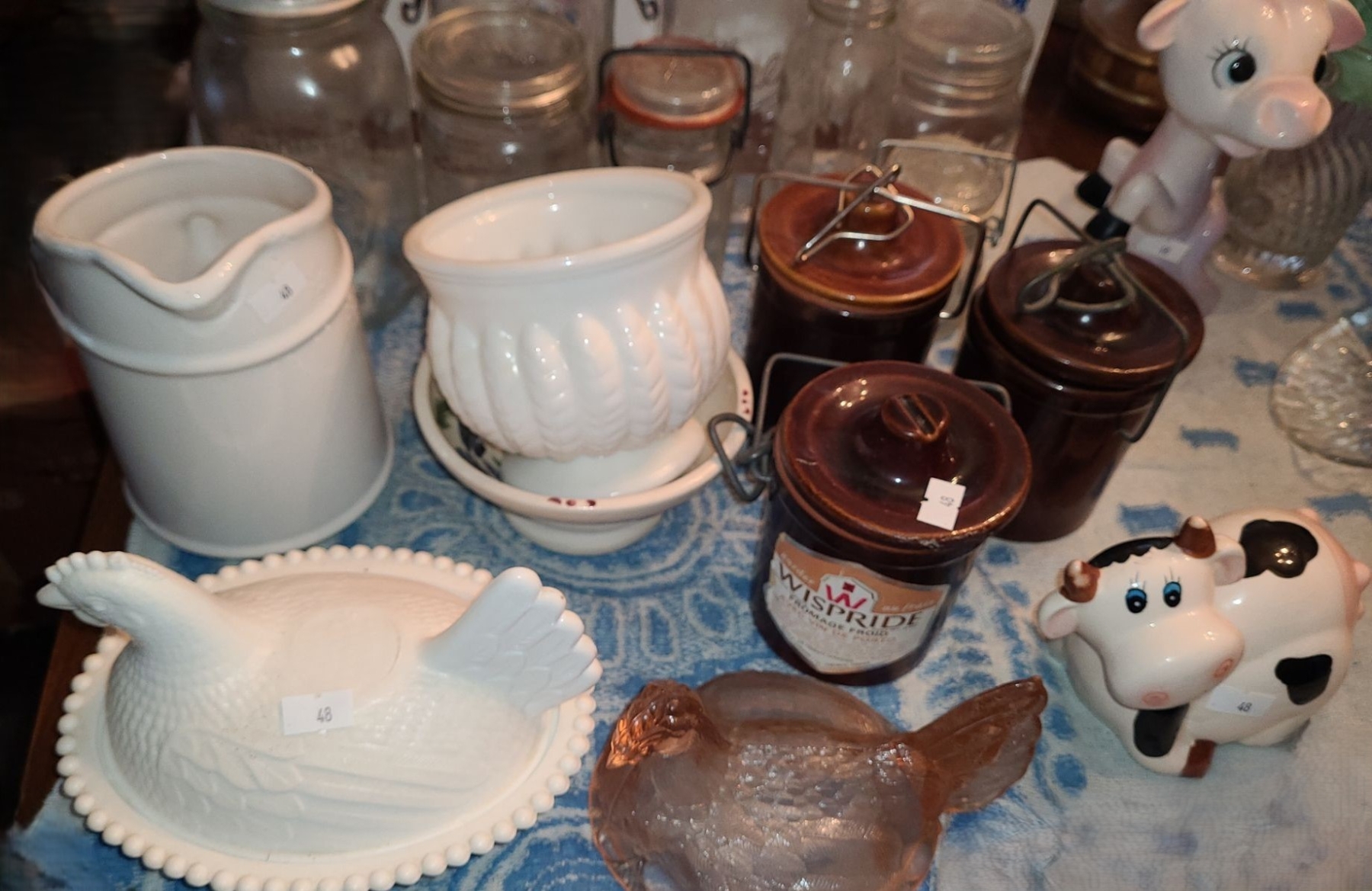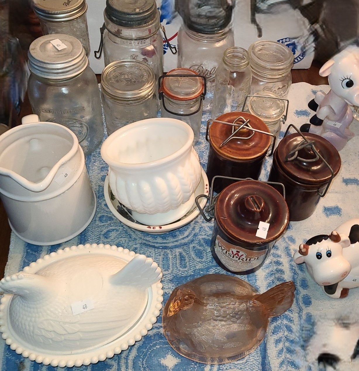 Some Lids/ Rings Missing, Small Chip in Standing Cow Decor
