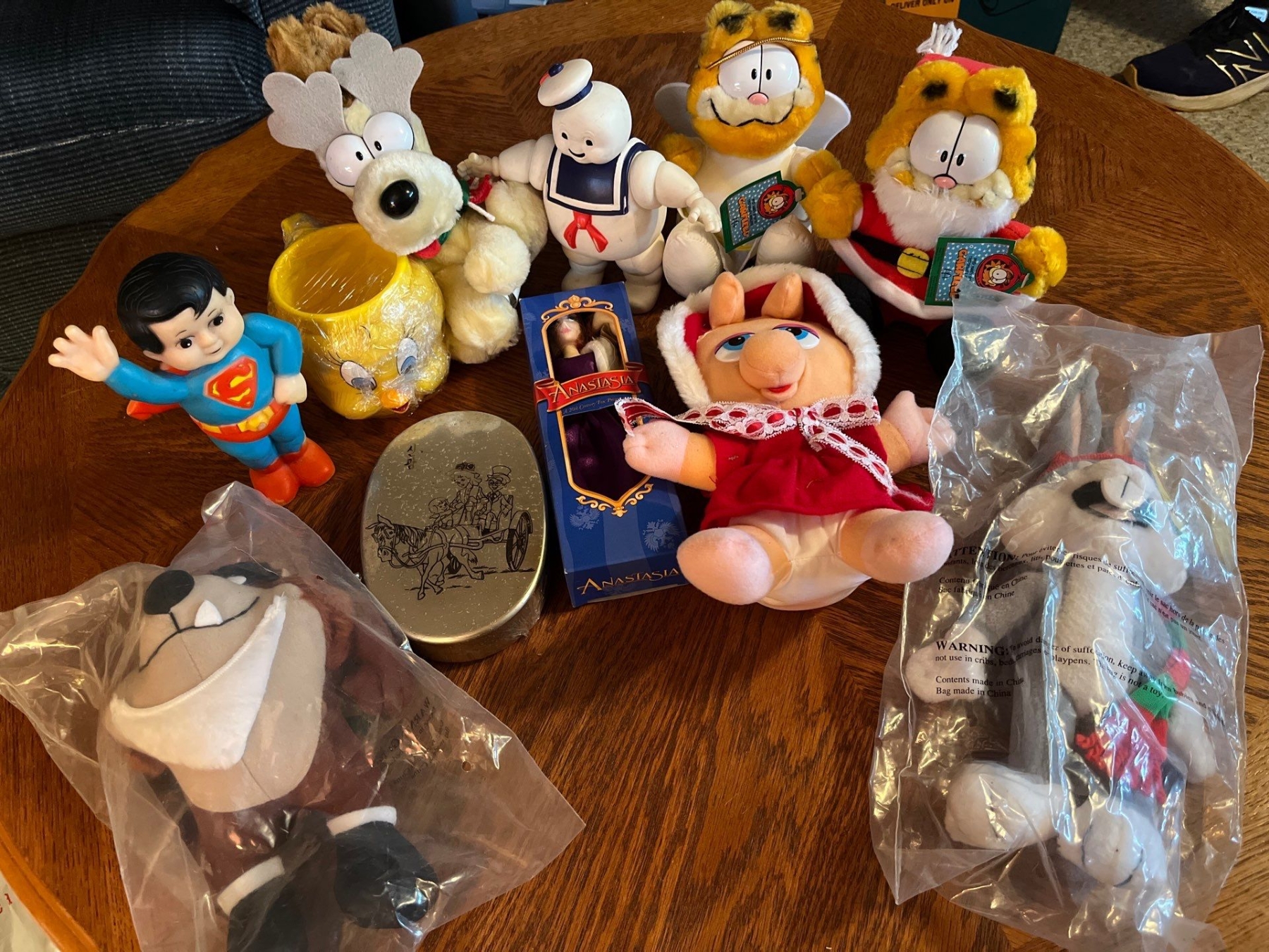 Collection of Disney, Looney Tunes, Ghostbusters, Superman, Miss piggy Garfield and Anastasia figure