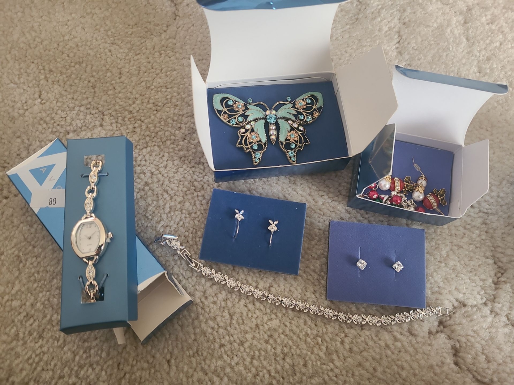 Collection of Fashion Jewelry, Including Some Avon Jewelry in Boxes- Watch, Butterfly Pin, Earrings