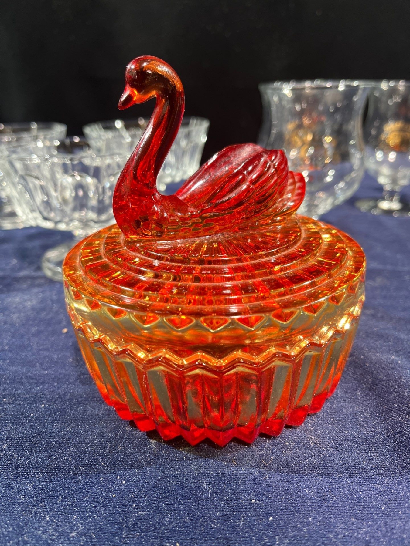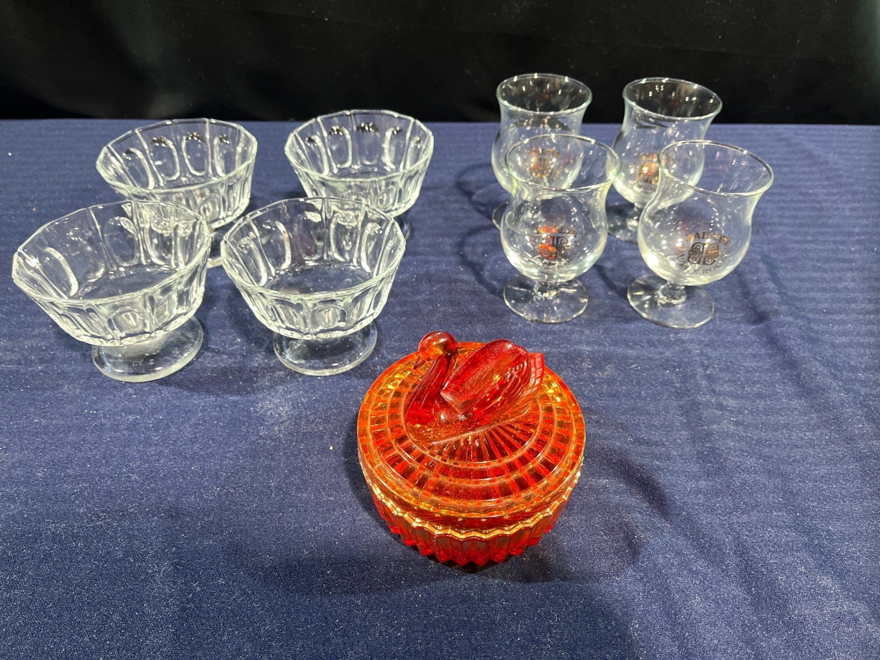Collection of Glass Stemware, Dessert Dishes, and Candy Dish