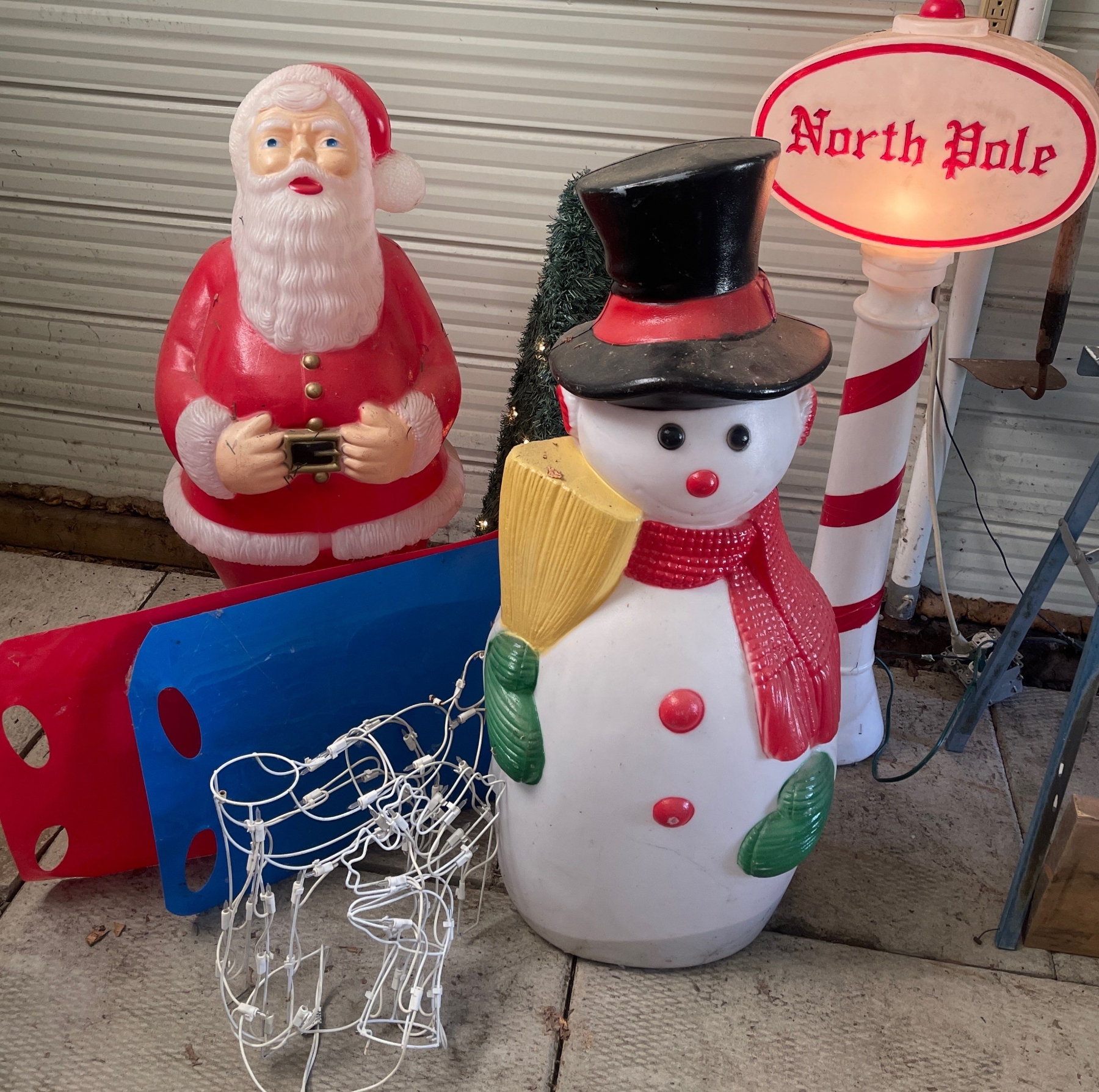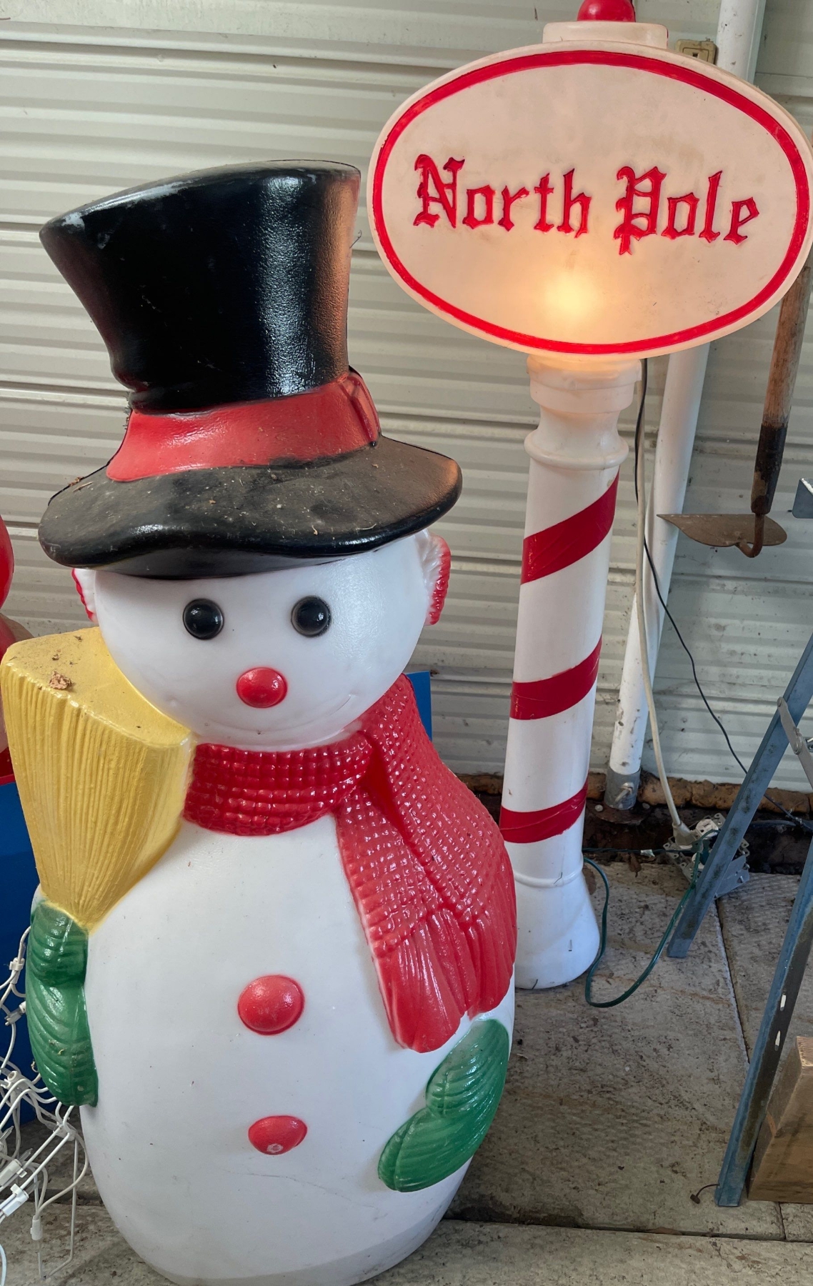 Collection of Light Up Christmas Display Characters w/ small tree & north pole sign