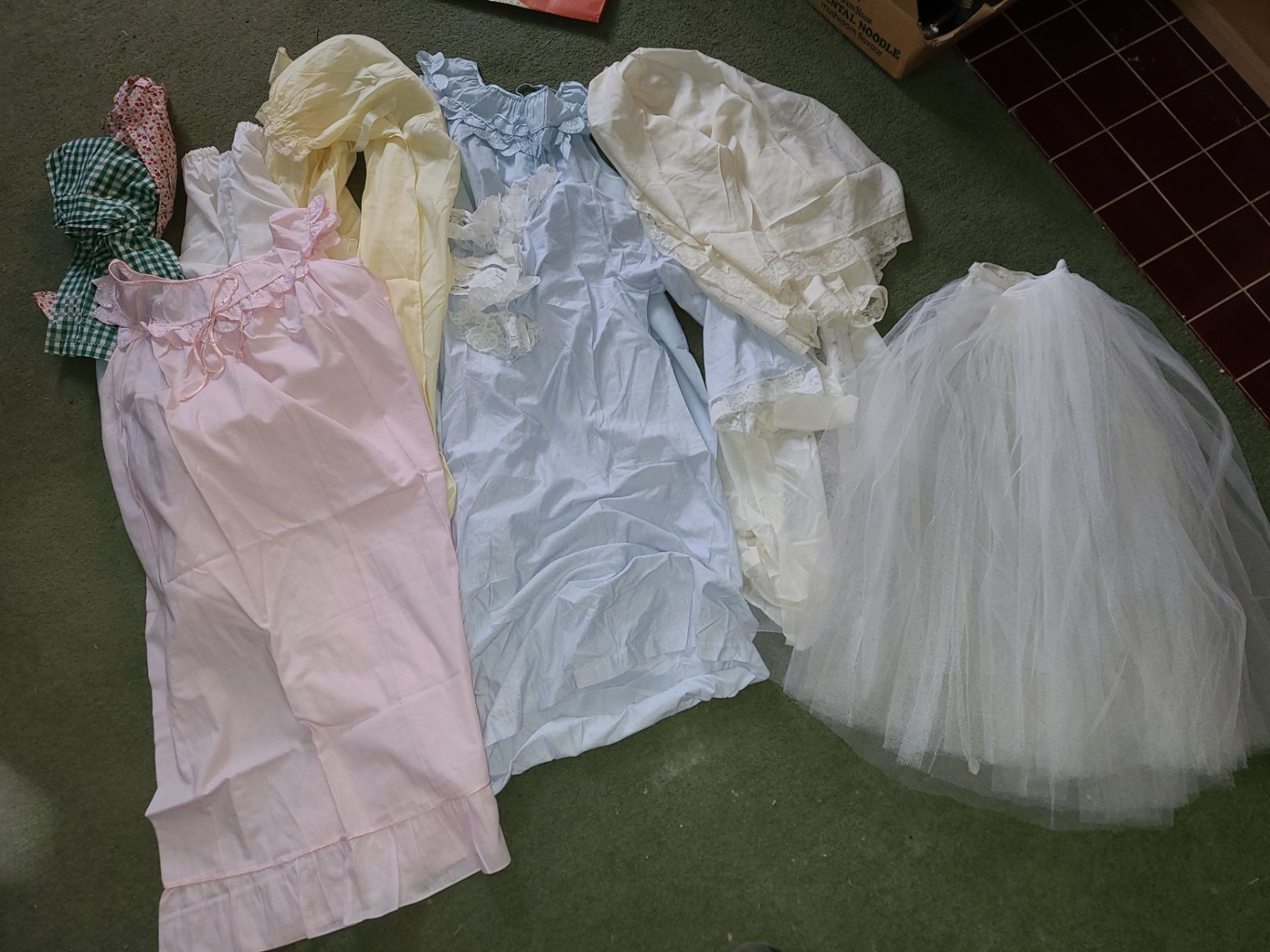 Collection of Small Nightshirts, Pair of Kitchen Aprons and Crinoline 13 Across at the Waist