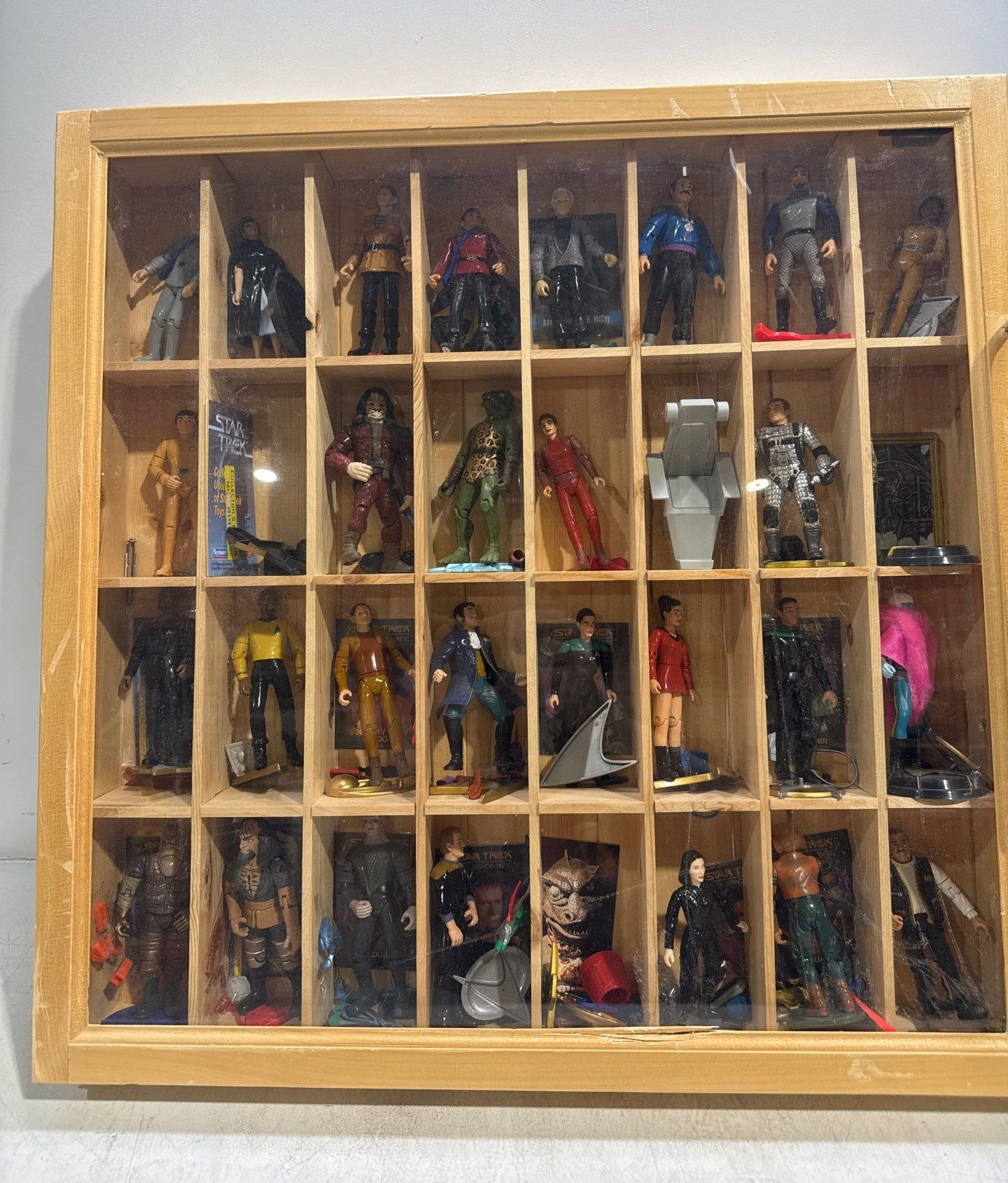 Collection of Star Trek Deep Space Action Figures in a Wood Frame