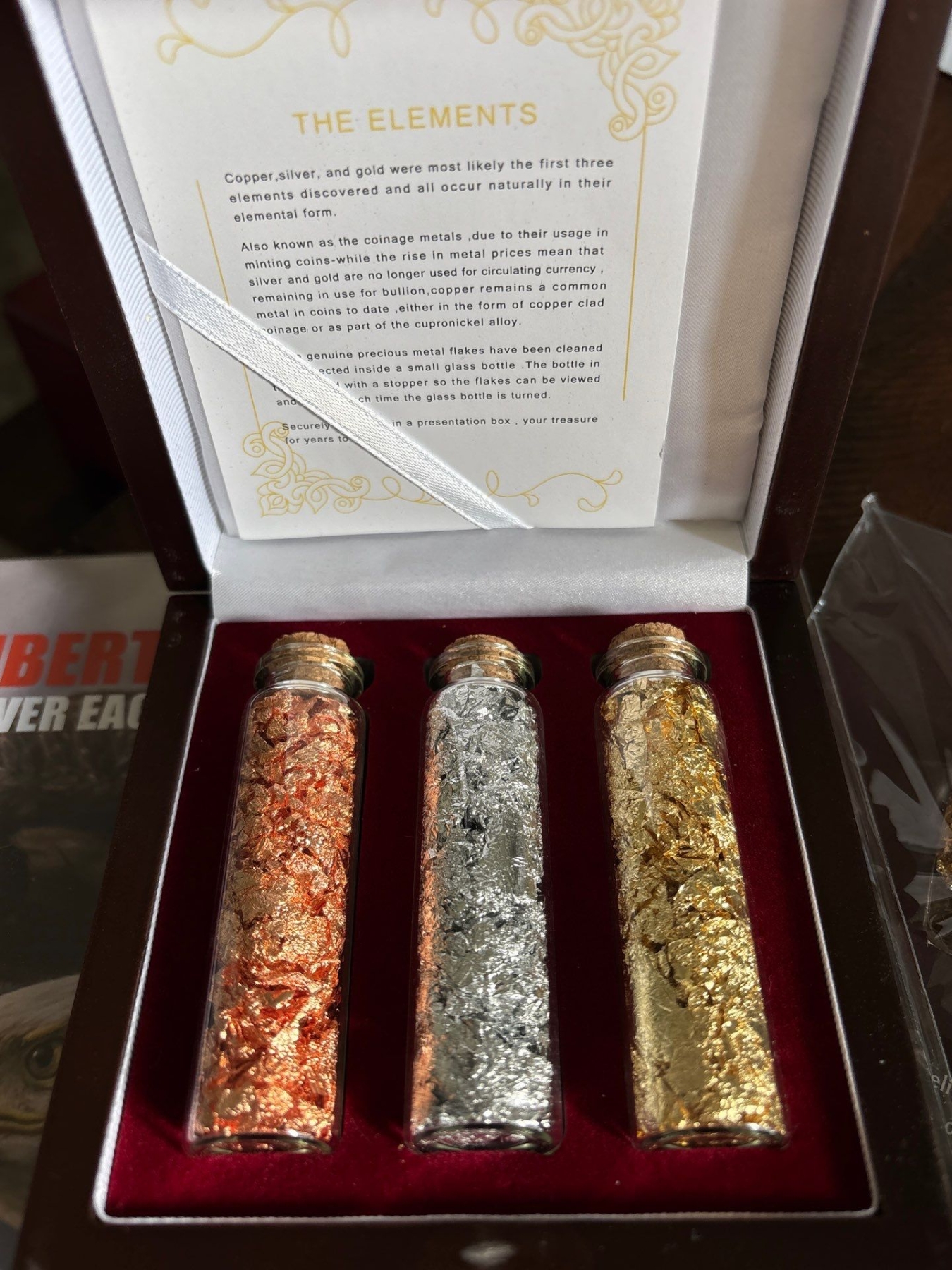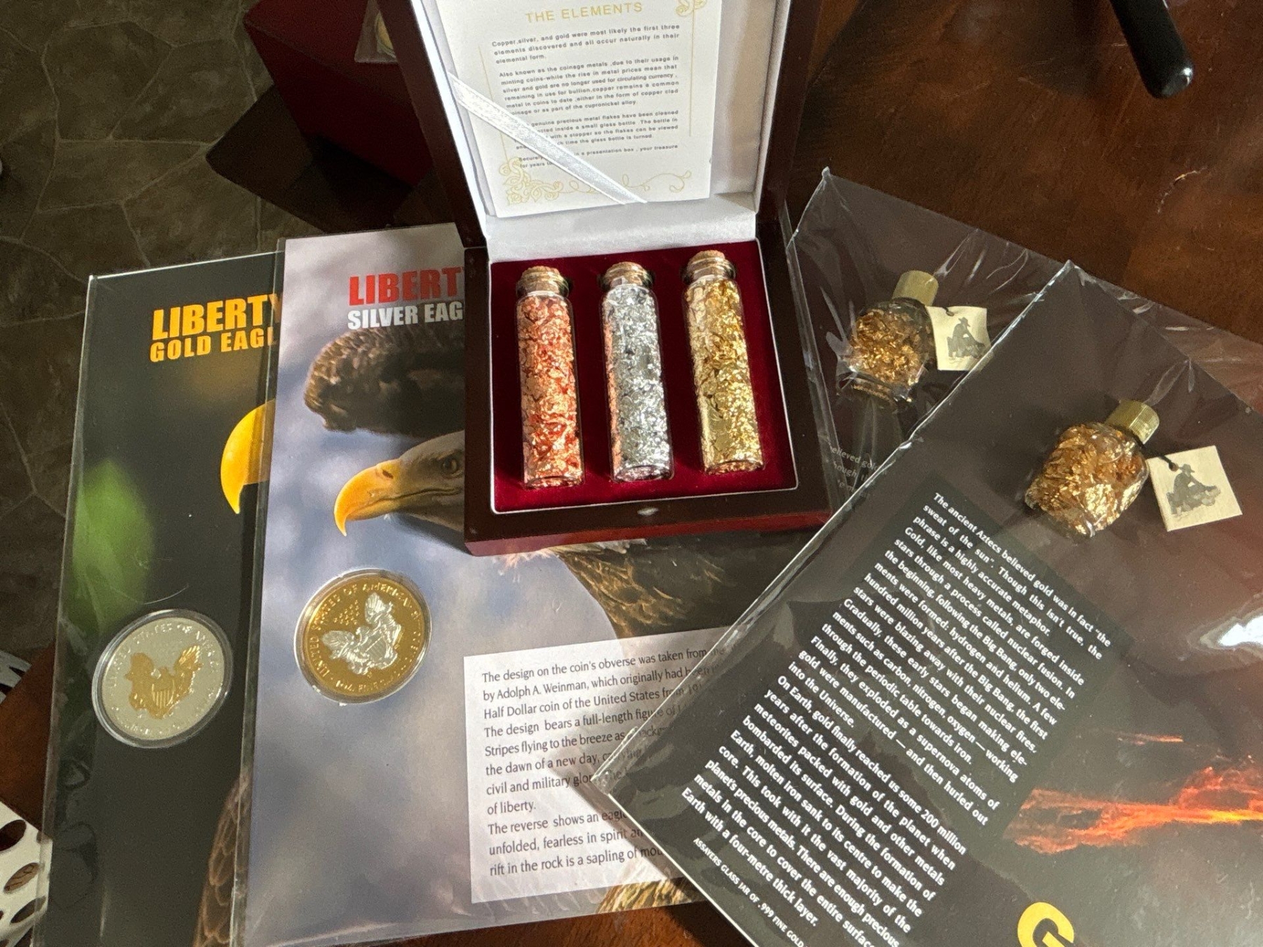 Collection of Us Coins & .999 fine gold leaf with a cased set of the elements