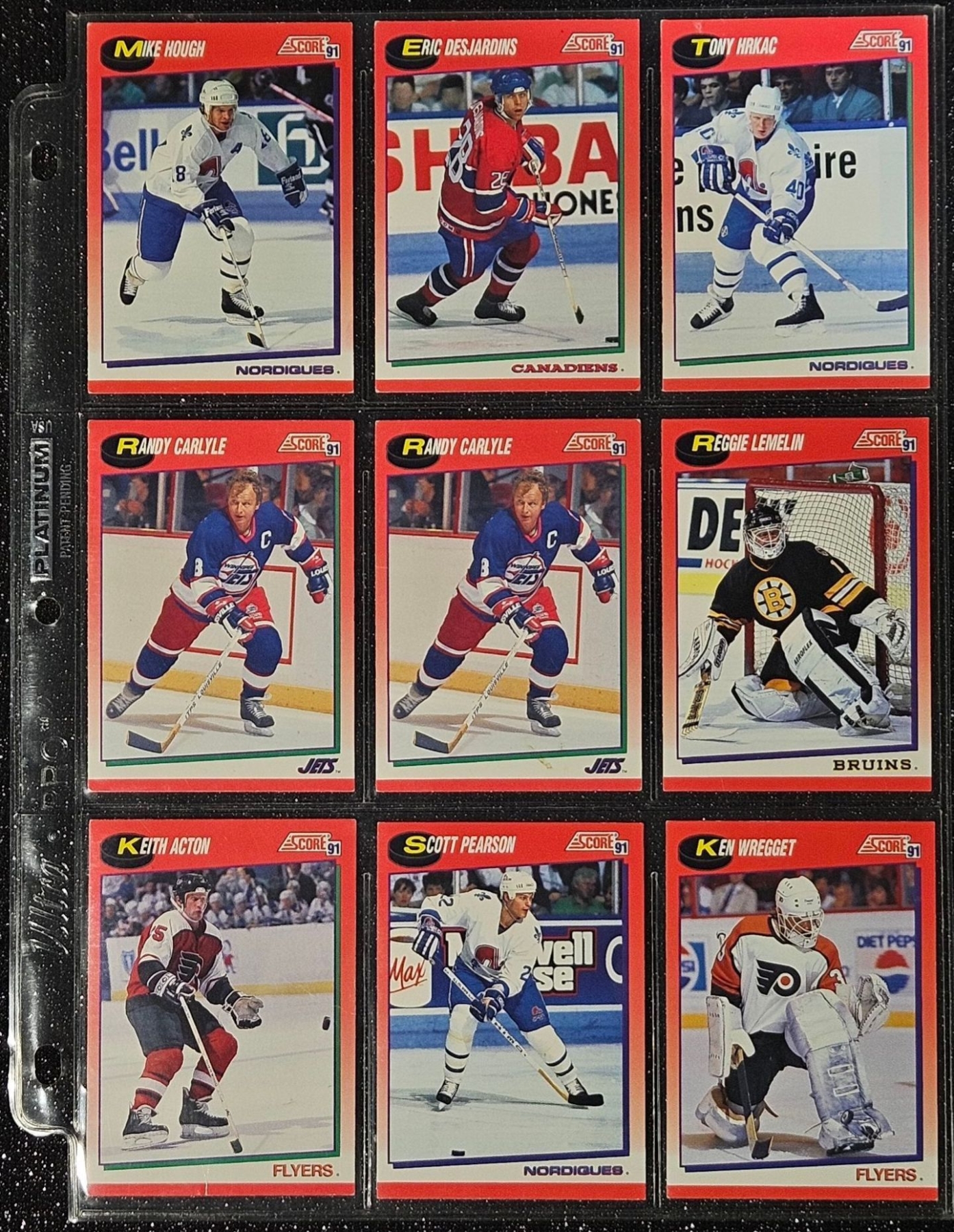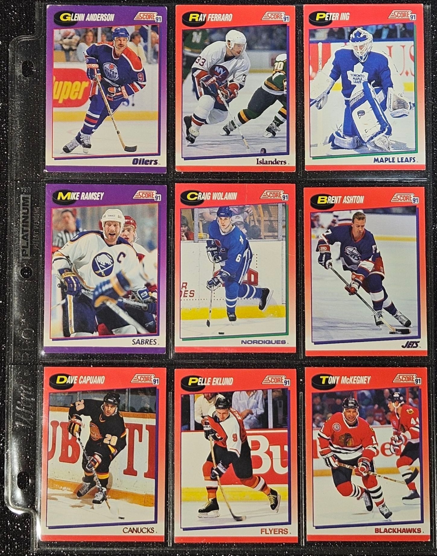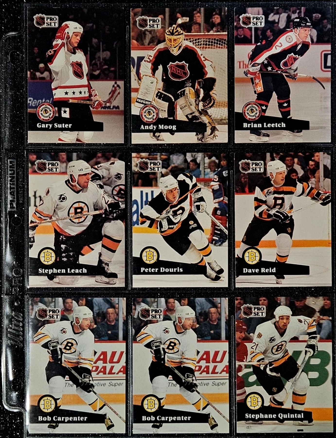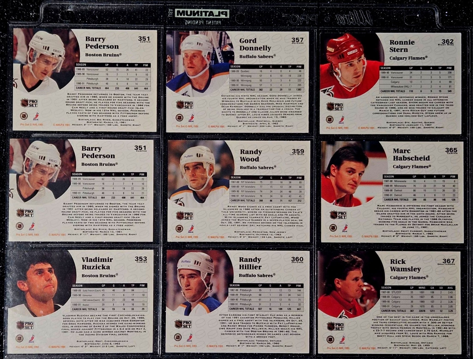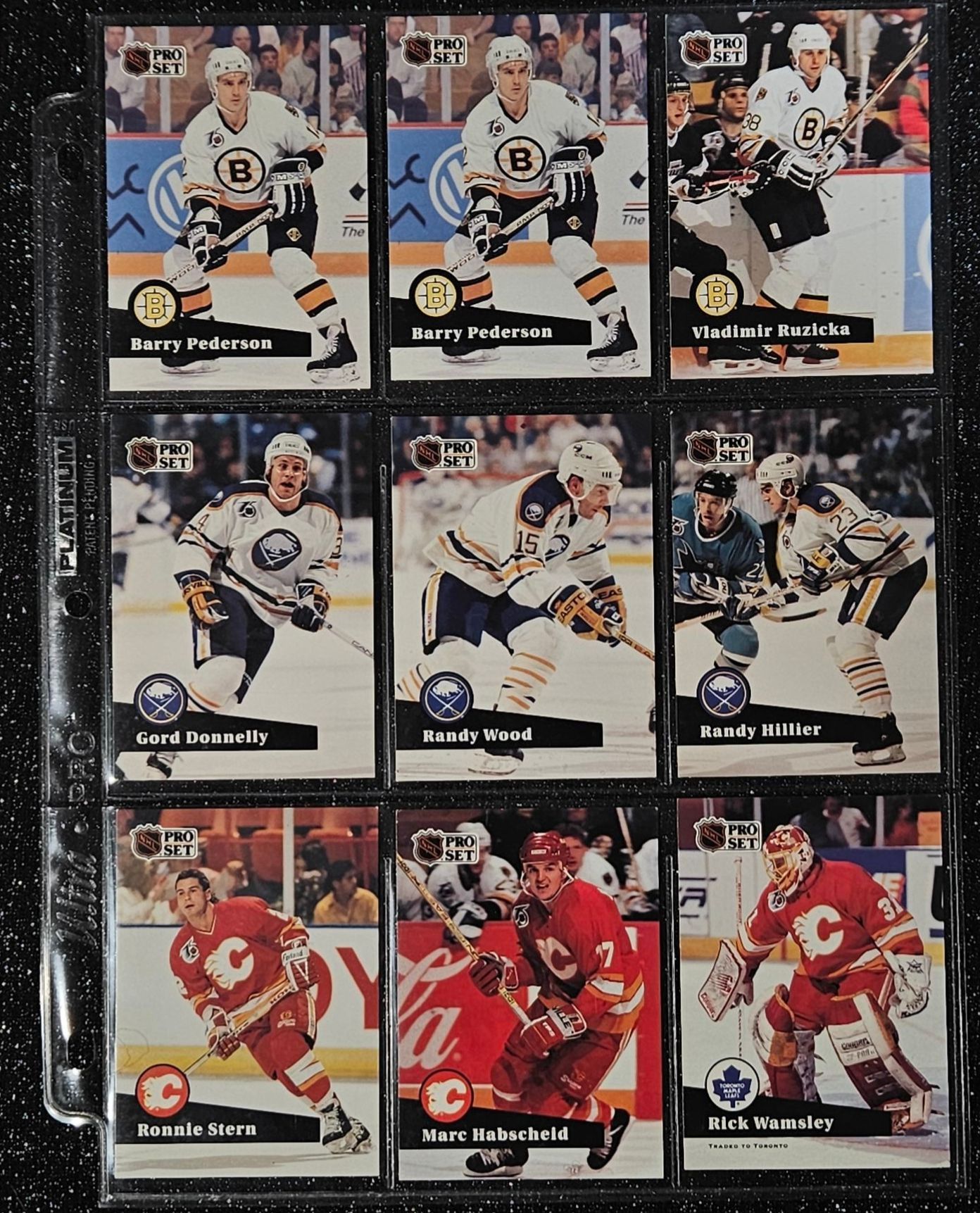 An Assortment of Hockey Cards Featuring Players Such as Barry Pederson, Vladimir Ruzicka, Gord Donnelly, and Others, Housed in a Protective Plastic Binder Sheet ( 10 sheets in total)