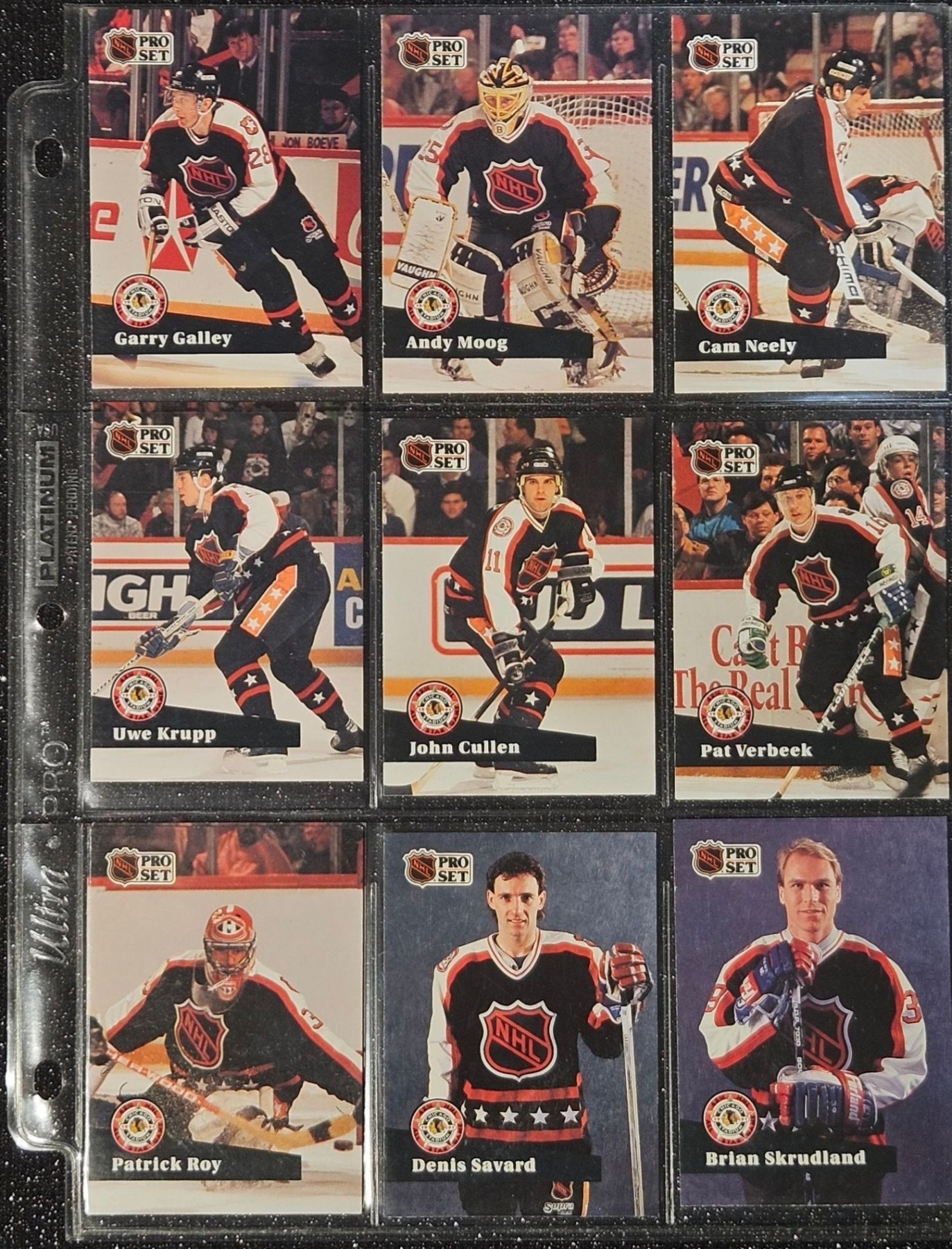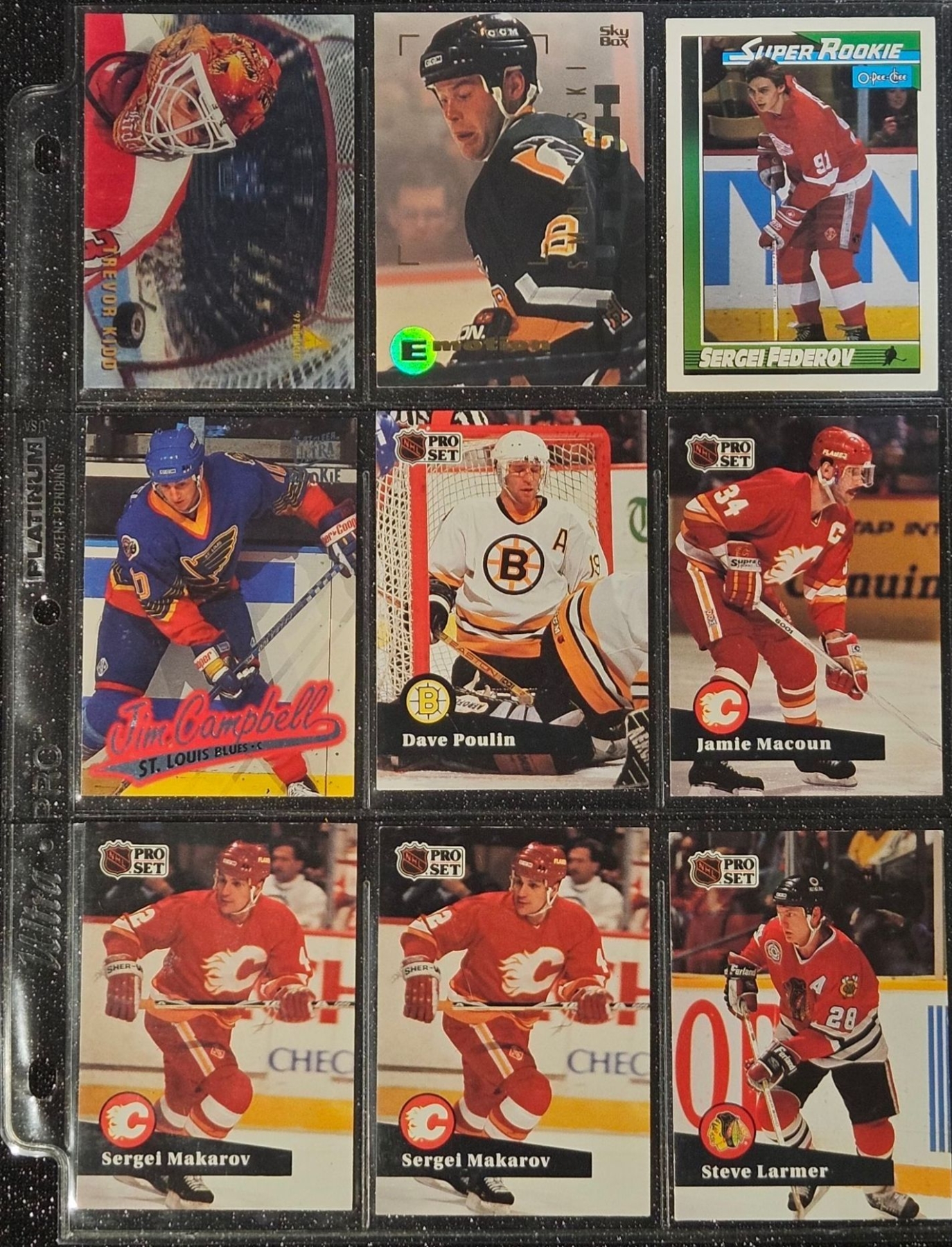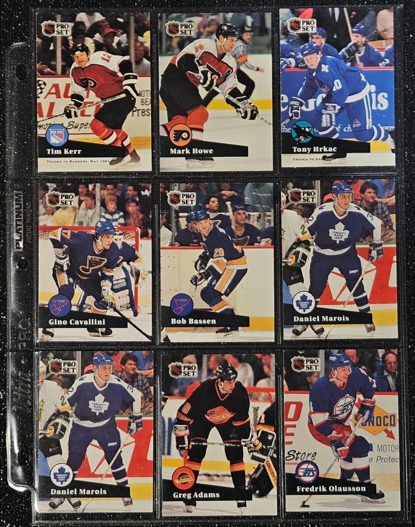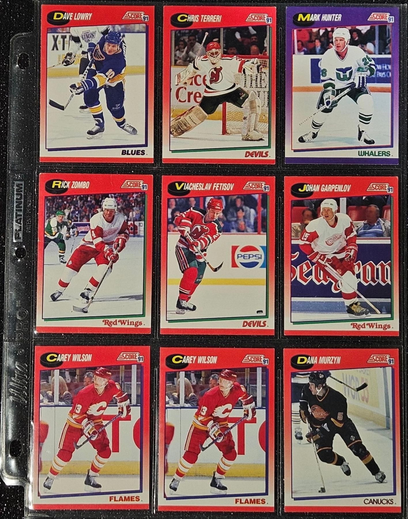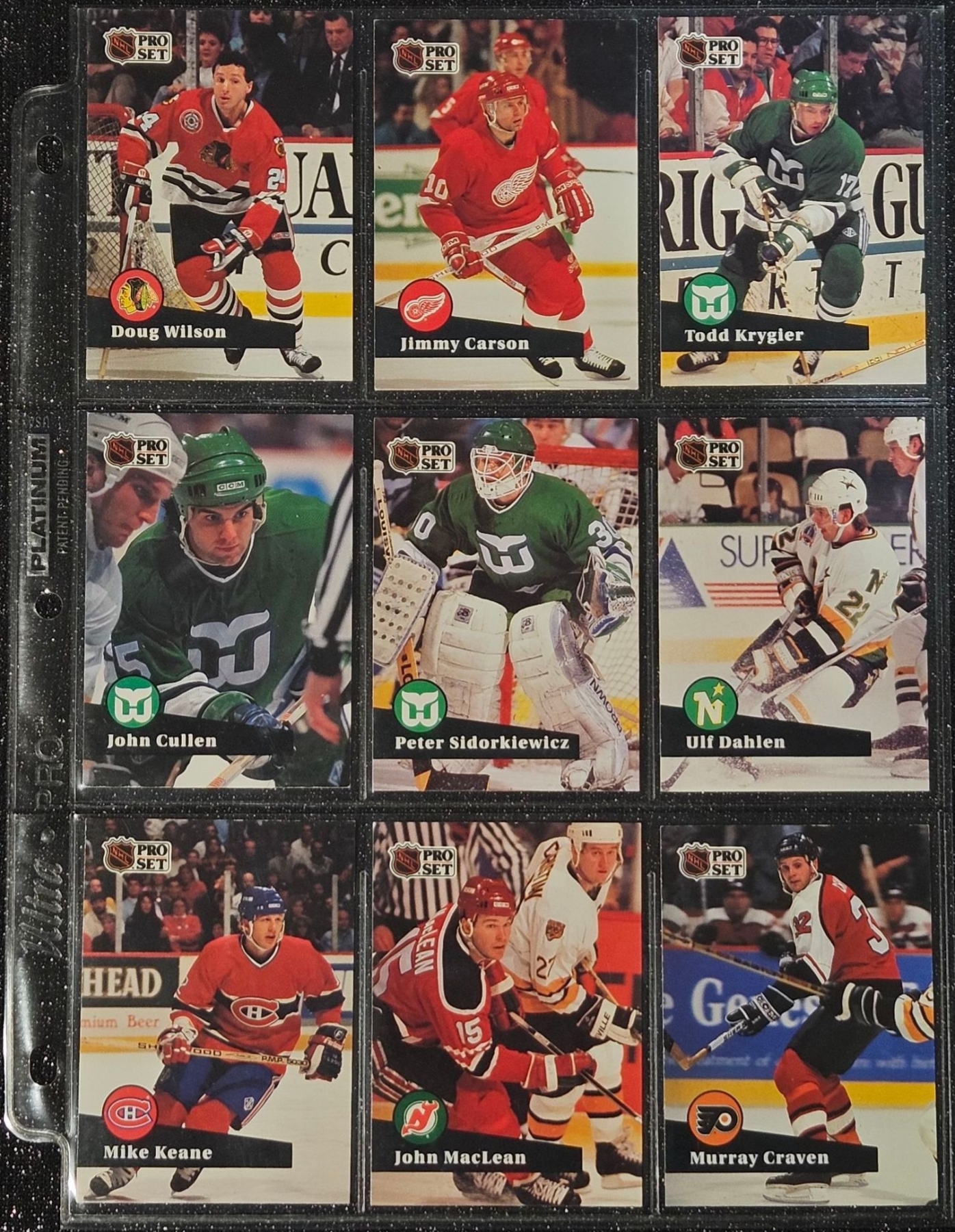 An Assortment of Hockey Cards Featuring Players Such as Barry Pederson, Vladimir Ruzicka, Gord Donnelly, and Others, Housed in a Protective Plastic Binder Sheet ( 10 sheets in total)