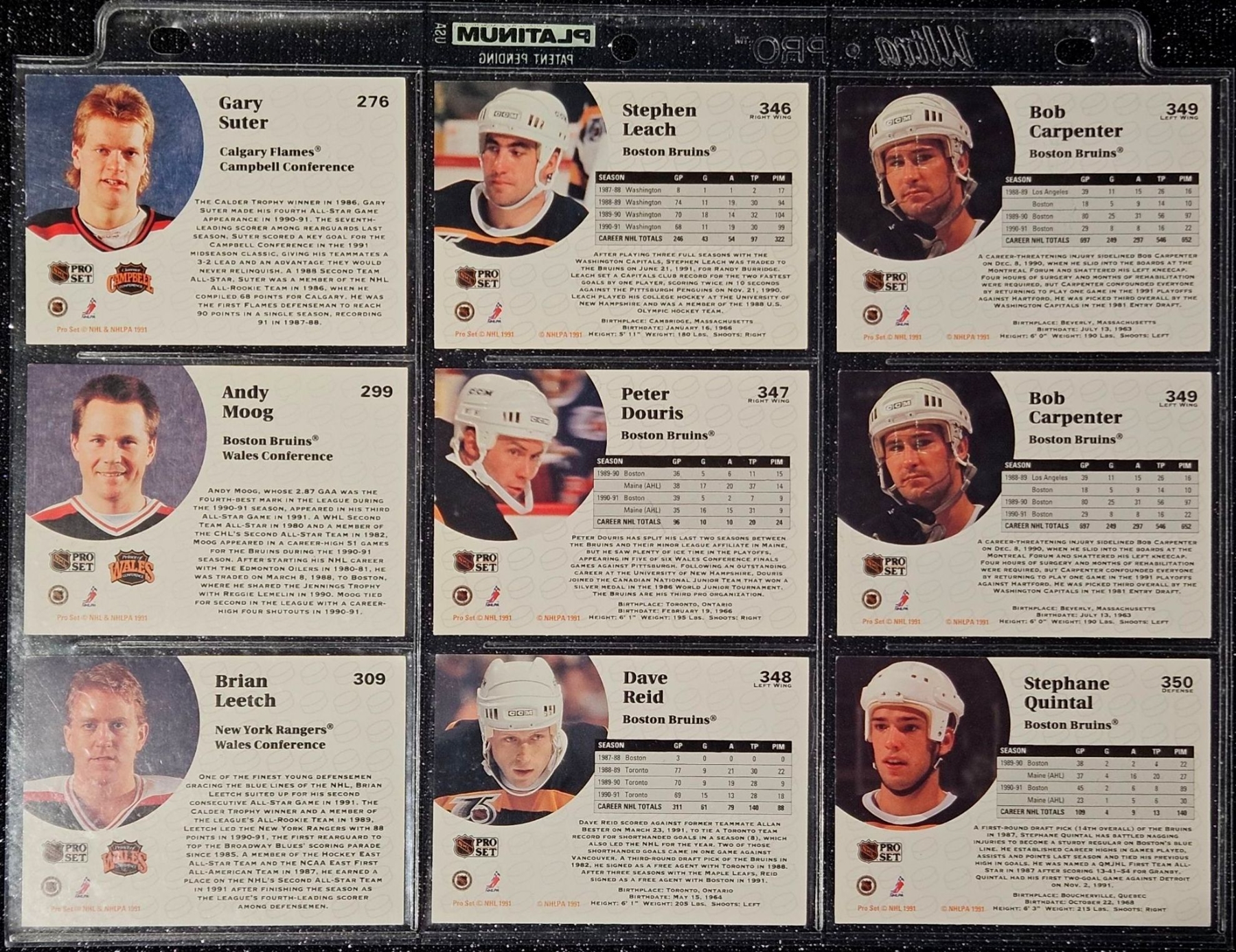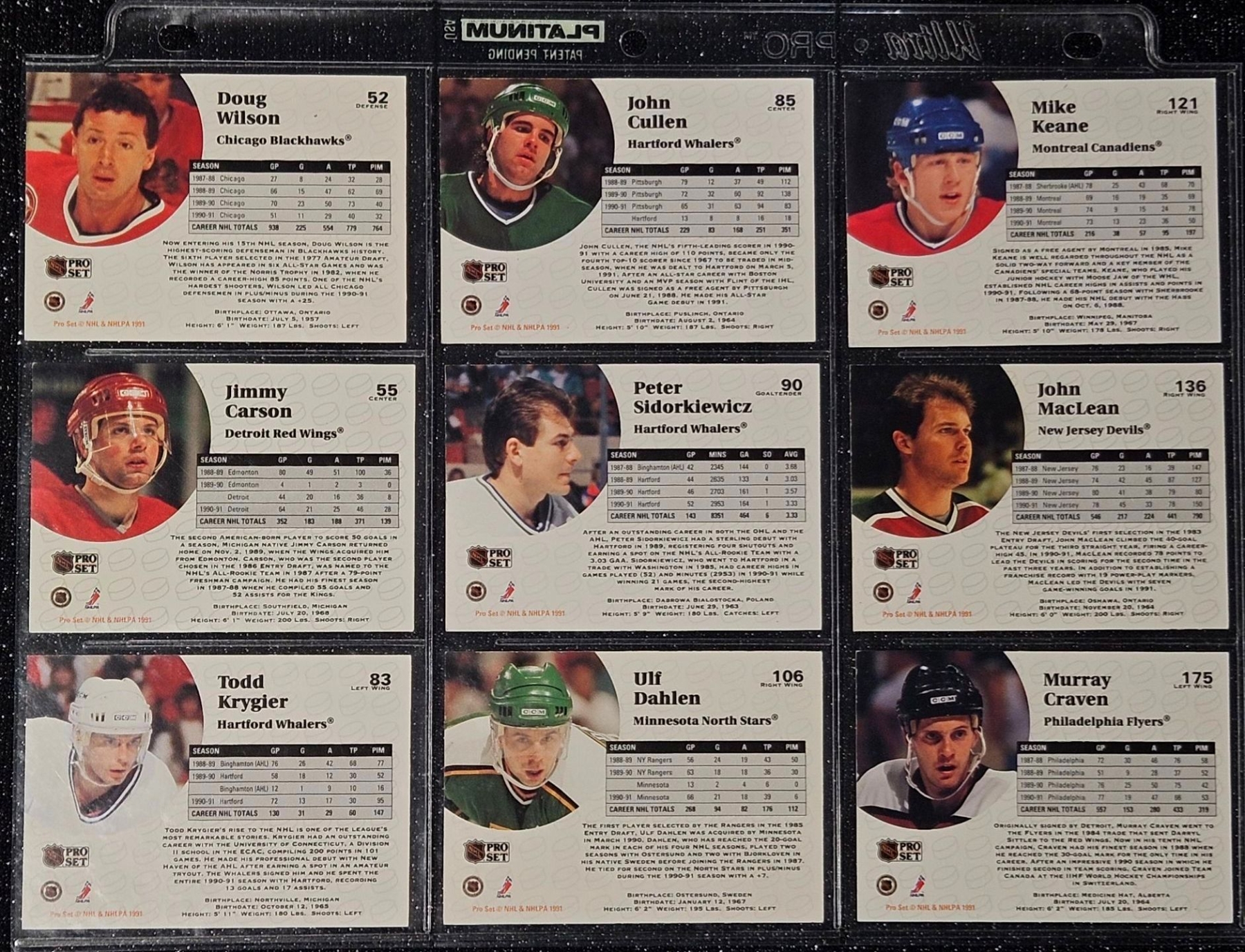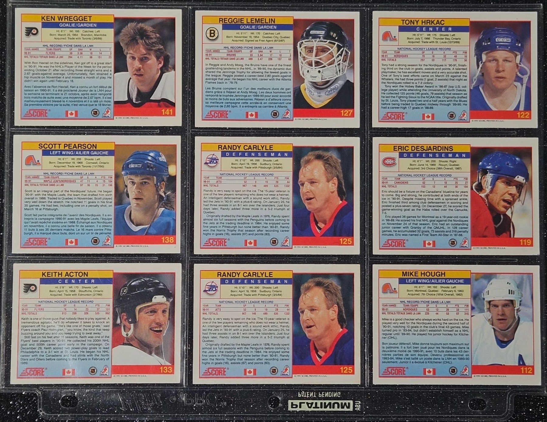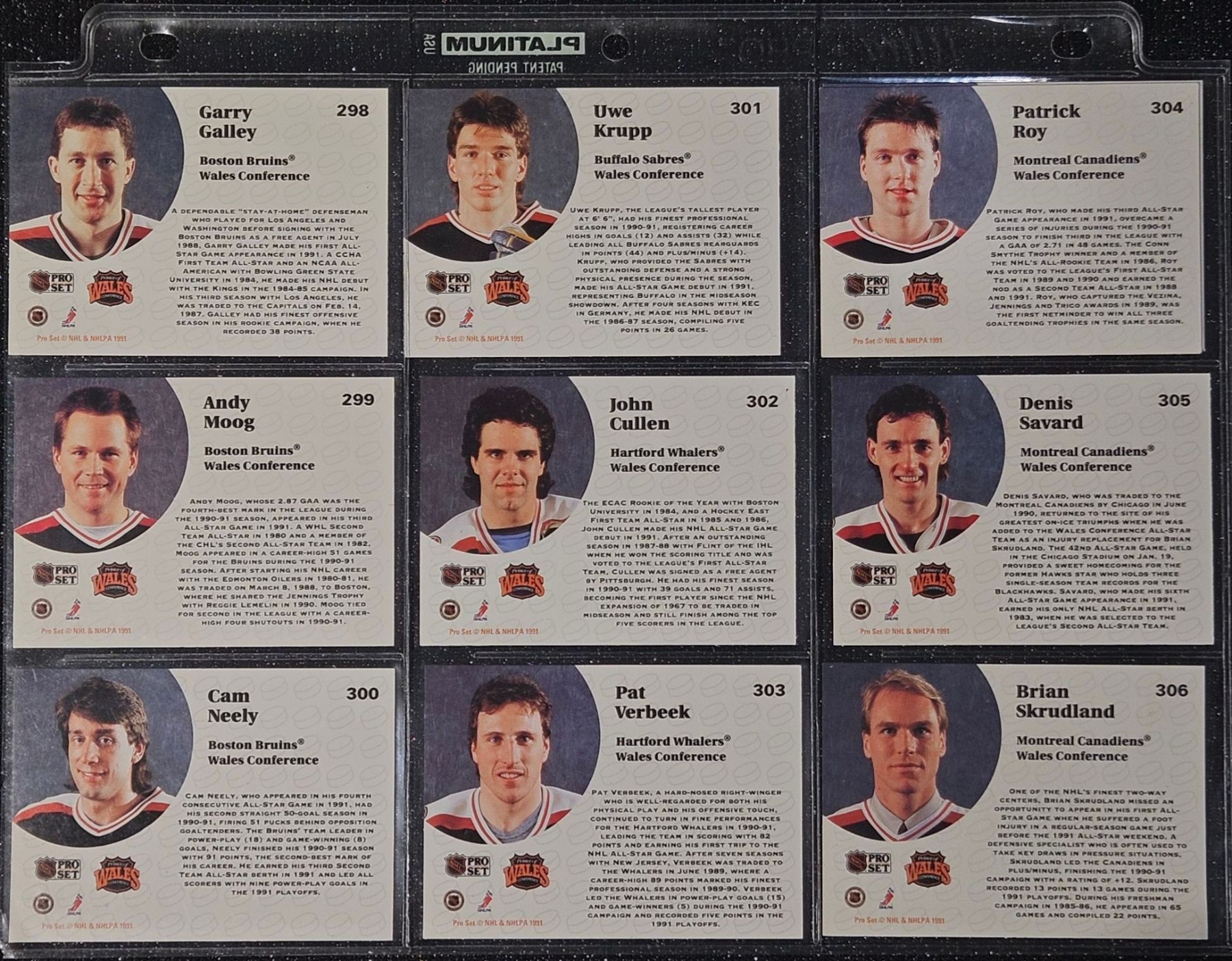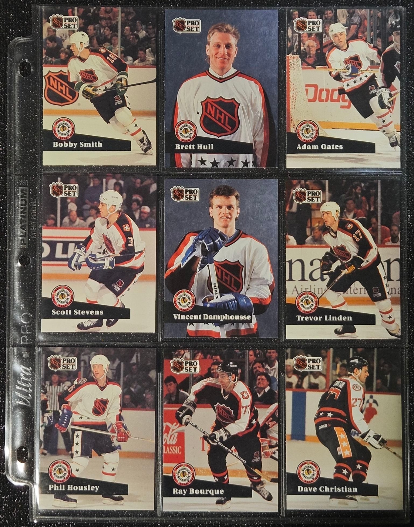 An Assortment of Hockey Cards Featuring Players Such as Barry Pederson, Vladimir Ruzicka, Gord Donnelly, and Others, Housed in a Protective Plastic Binder Sheet ( 10 sheets in total)