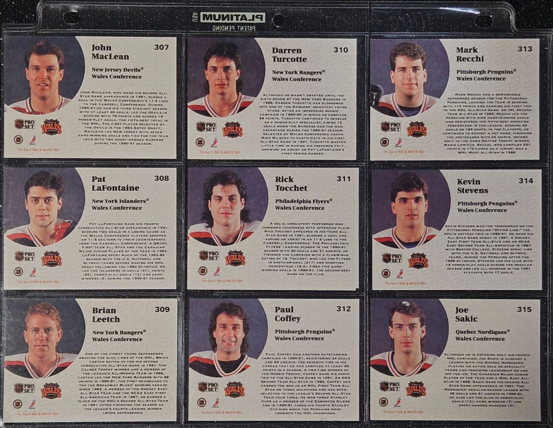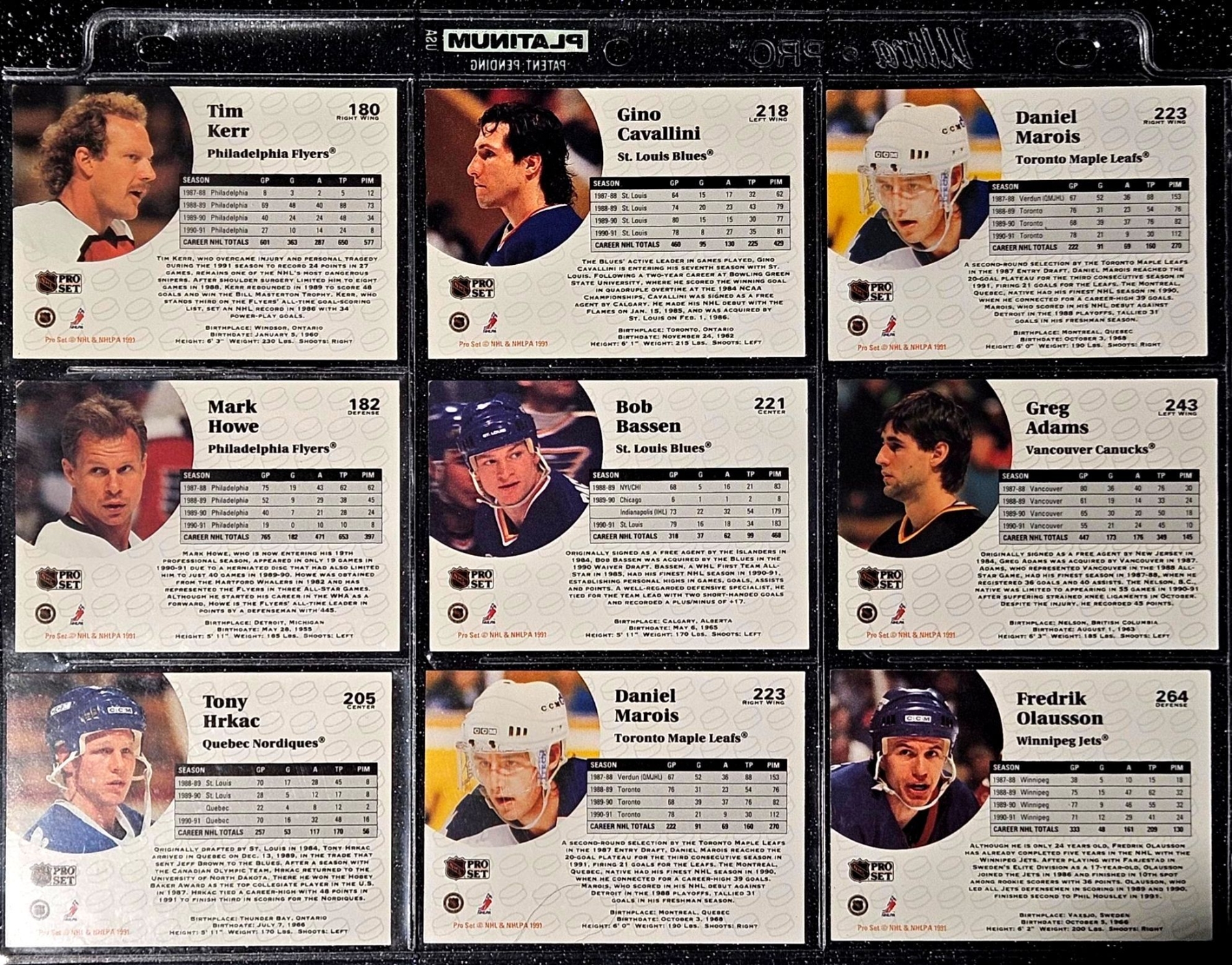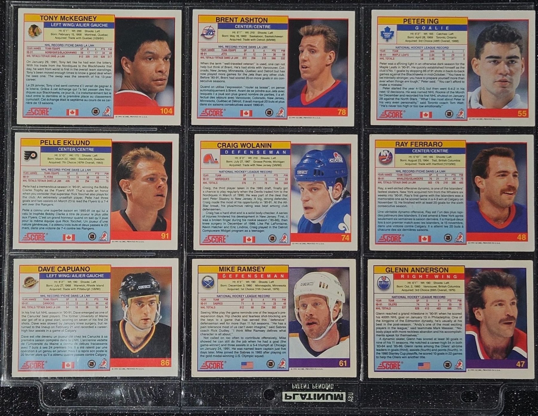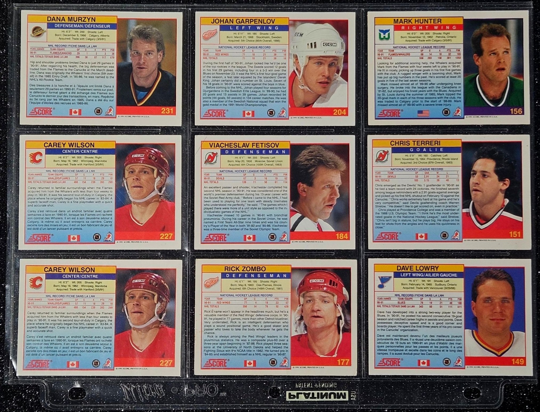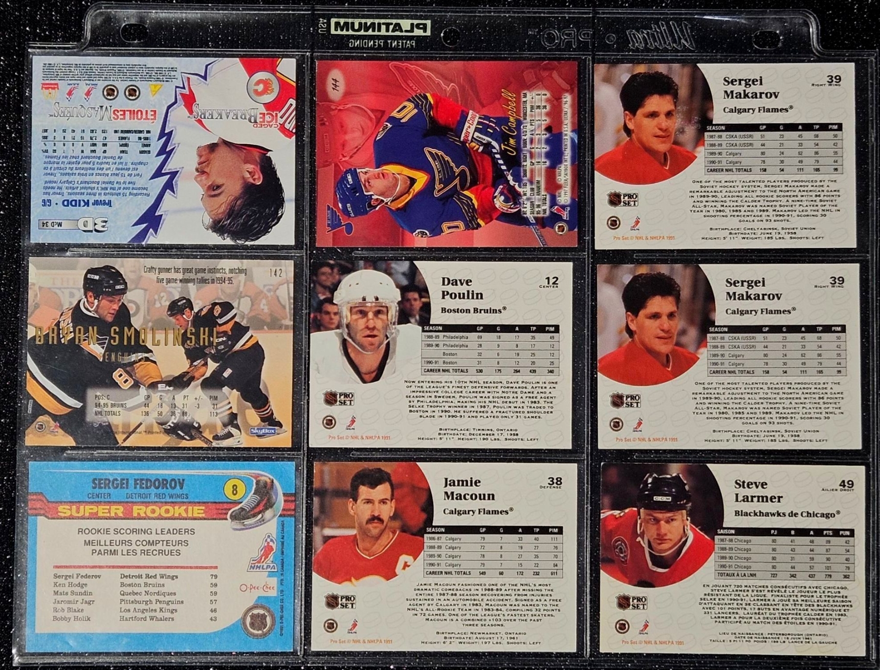 An Assortment of Hockey Cards Featuring Players Such as Barry Pederson, Vladimir Ruzicka, Gord Donnelly, and Others, Housed in a Protective Plastic Binder Sheet ( 10 sheets in total)