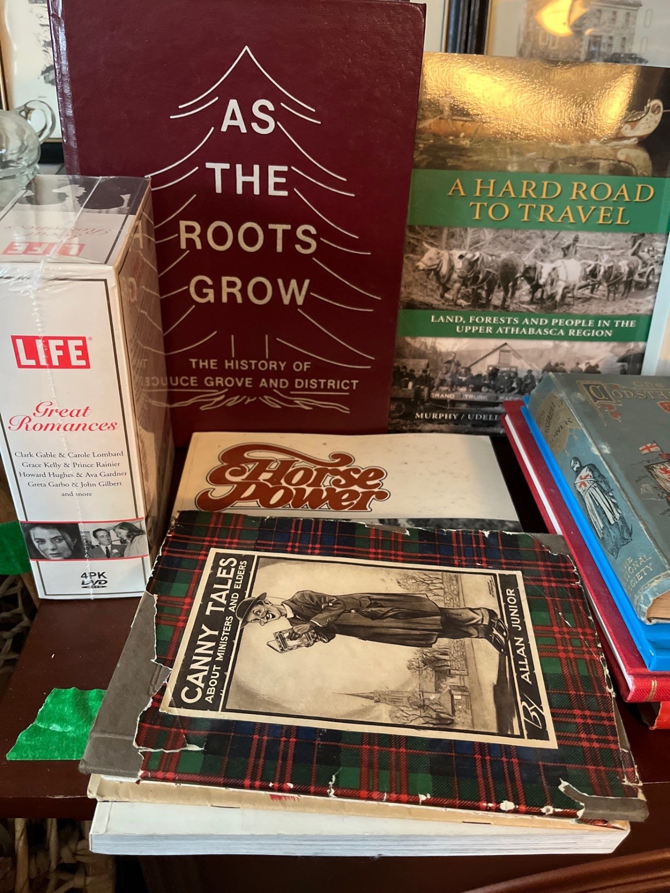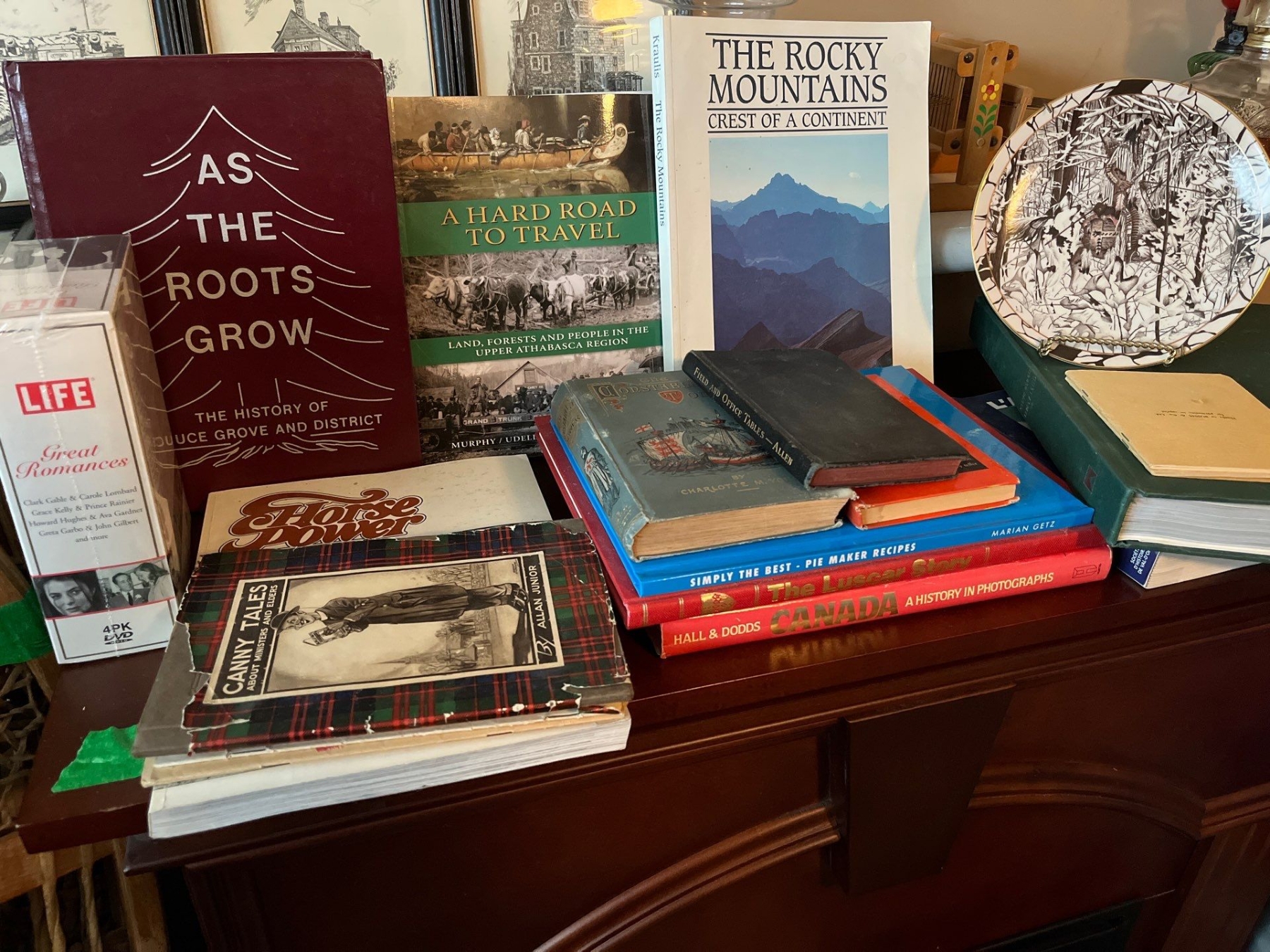 Collection of books power horses, Rocky Mountains, Canada, history in paragraphs life‘s greatest romances, DVD package Steve Bloom untamed and an indigenous themed plate named where the paths cross