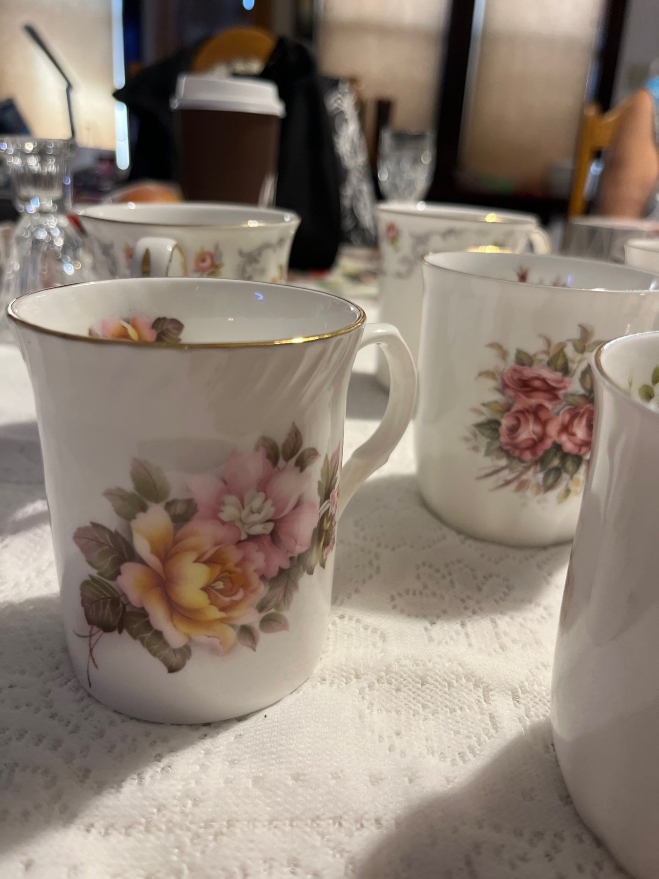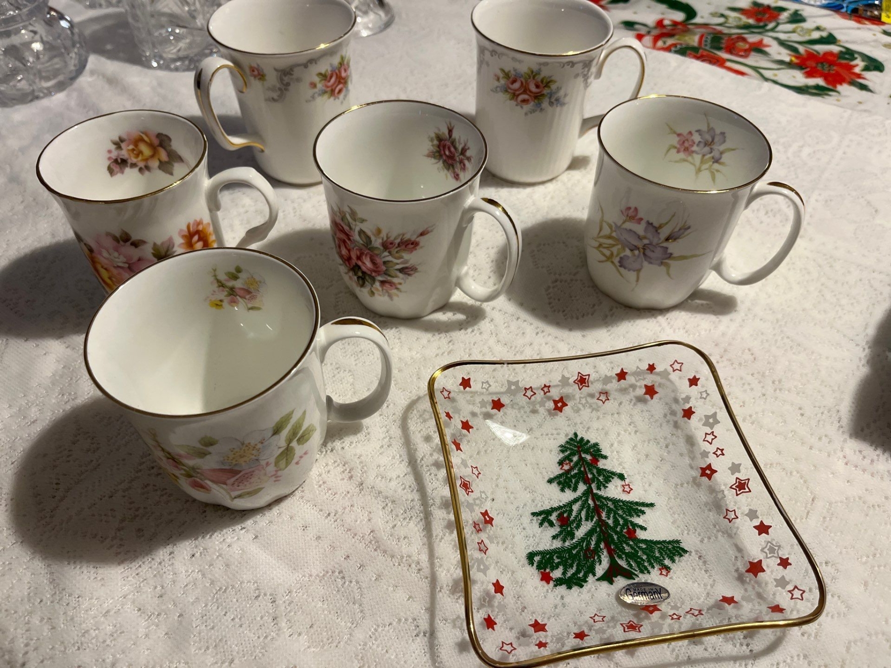 Collection of six Royal Albert coffee cups . And small candy dish made in Germany .