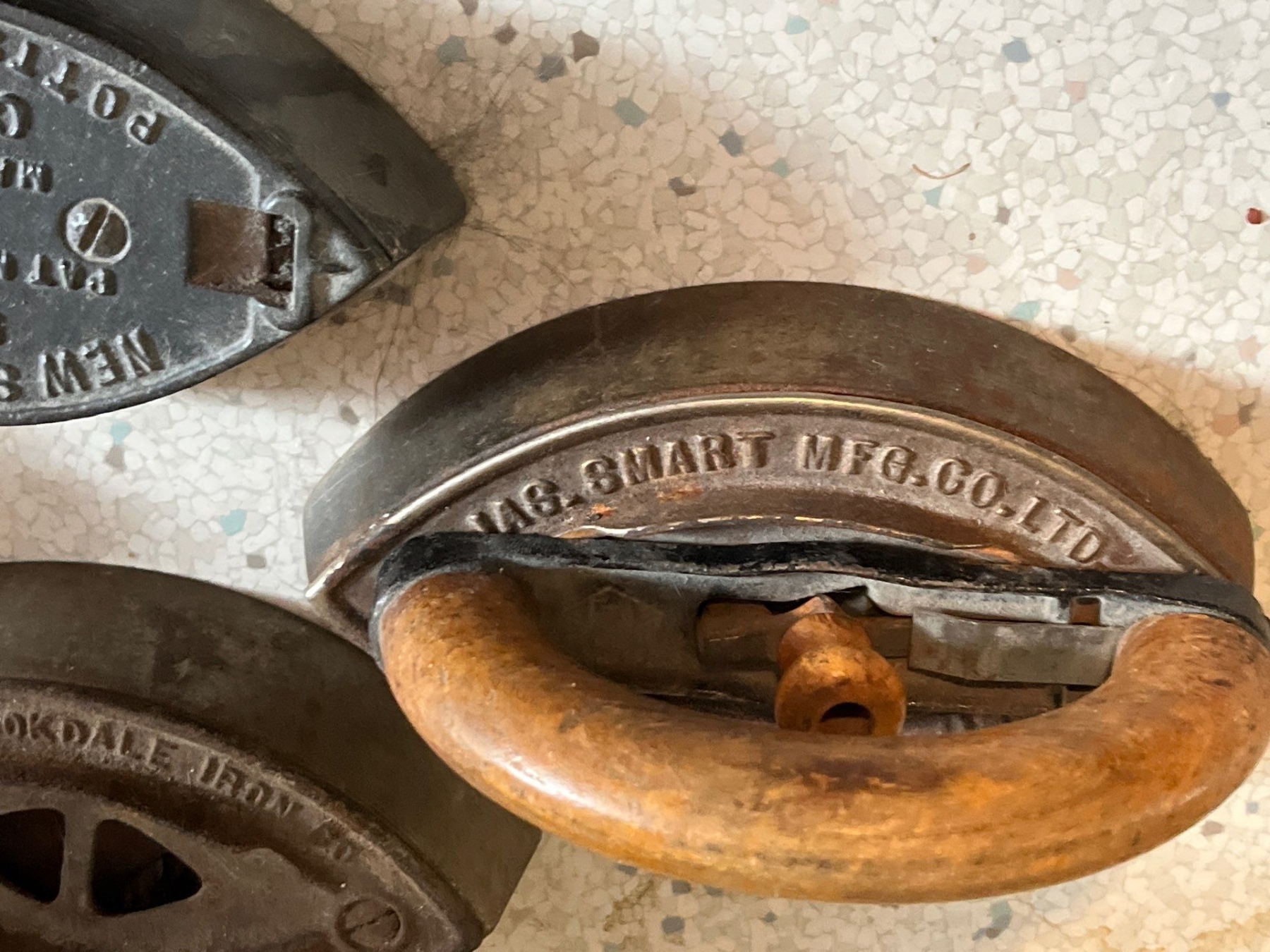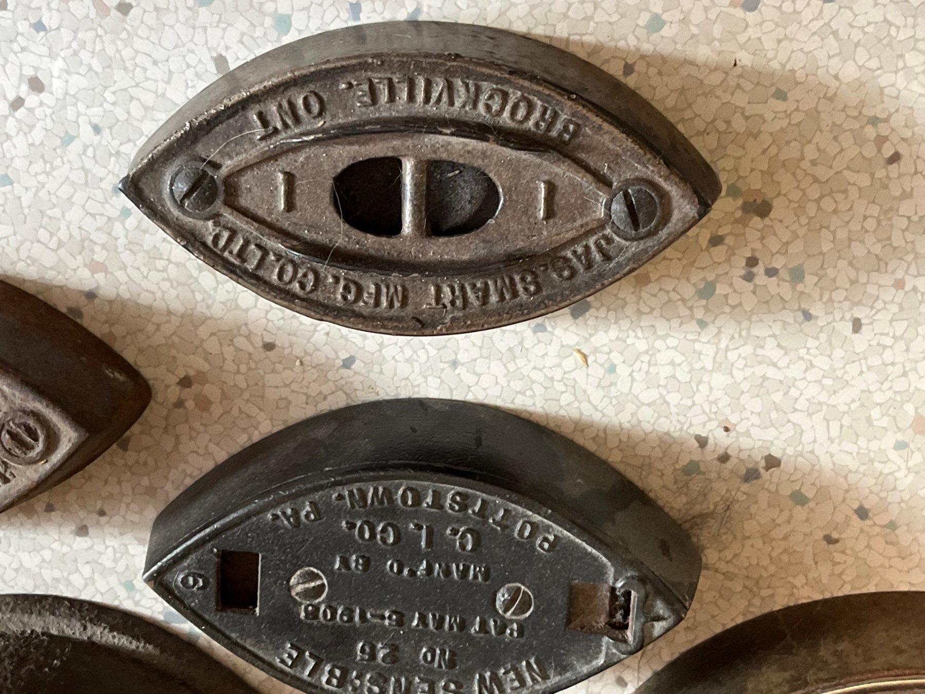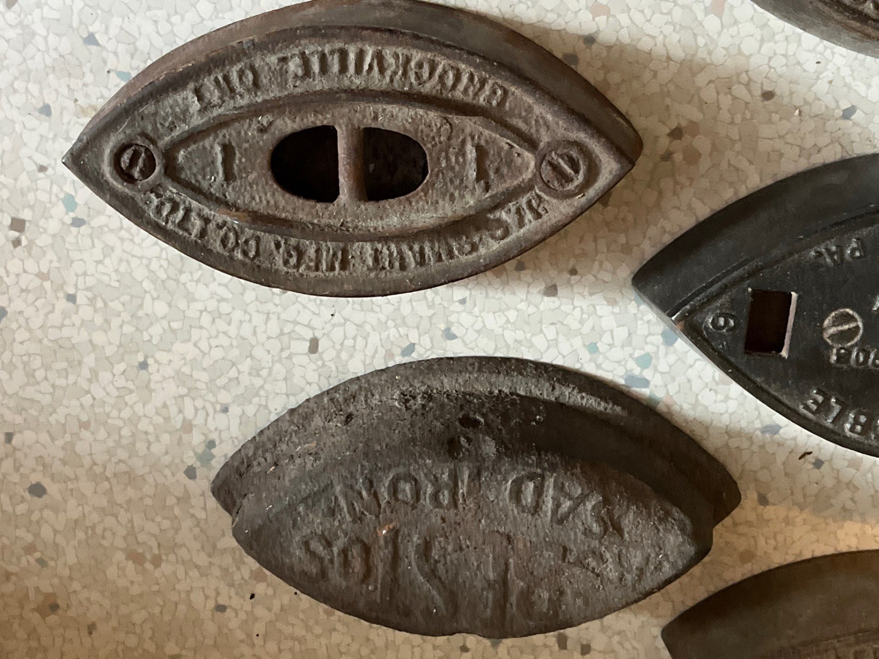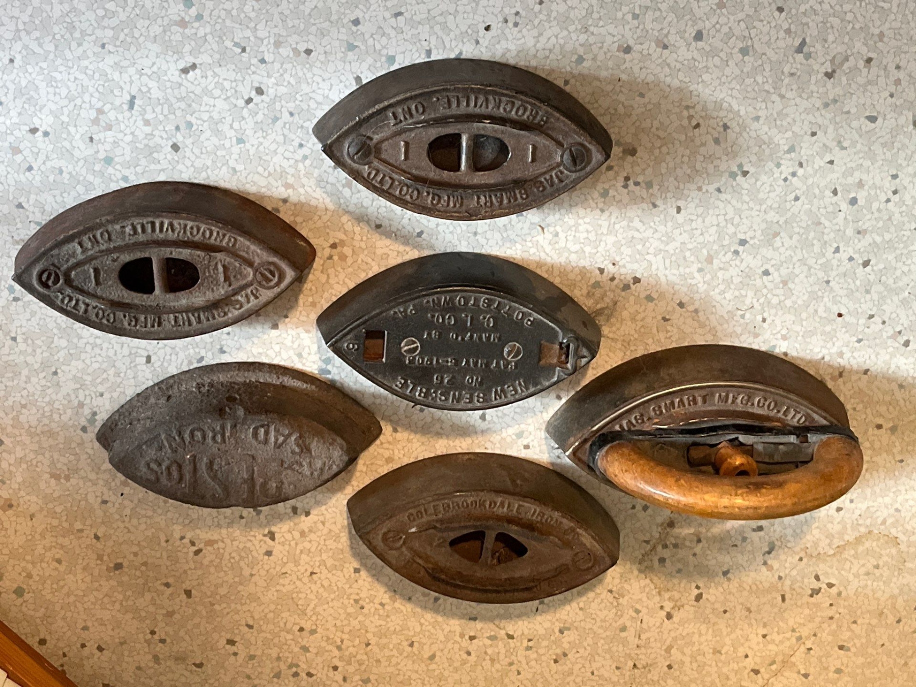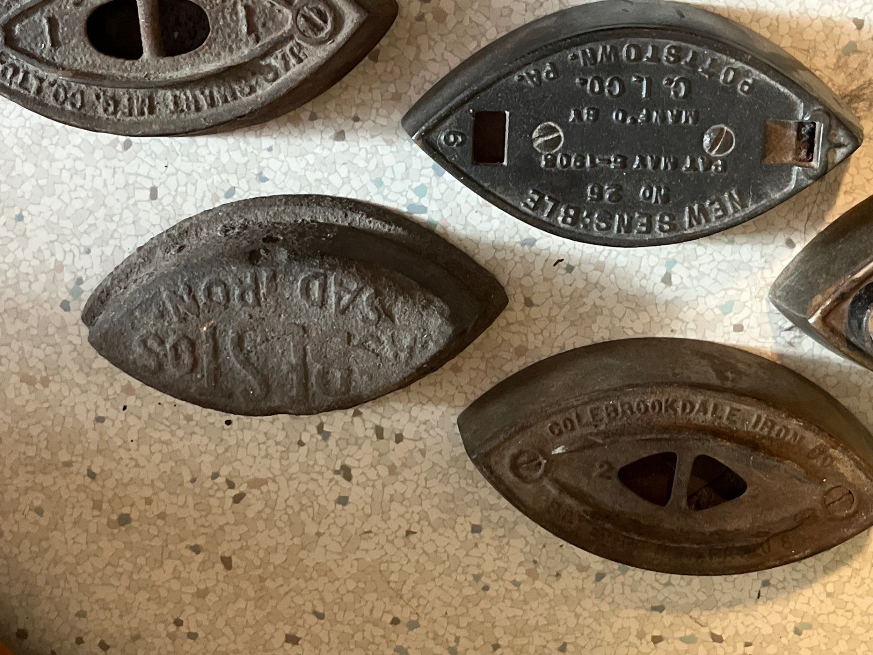 Collection of various cast-iron antique irons from several different manufacturers six in total.