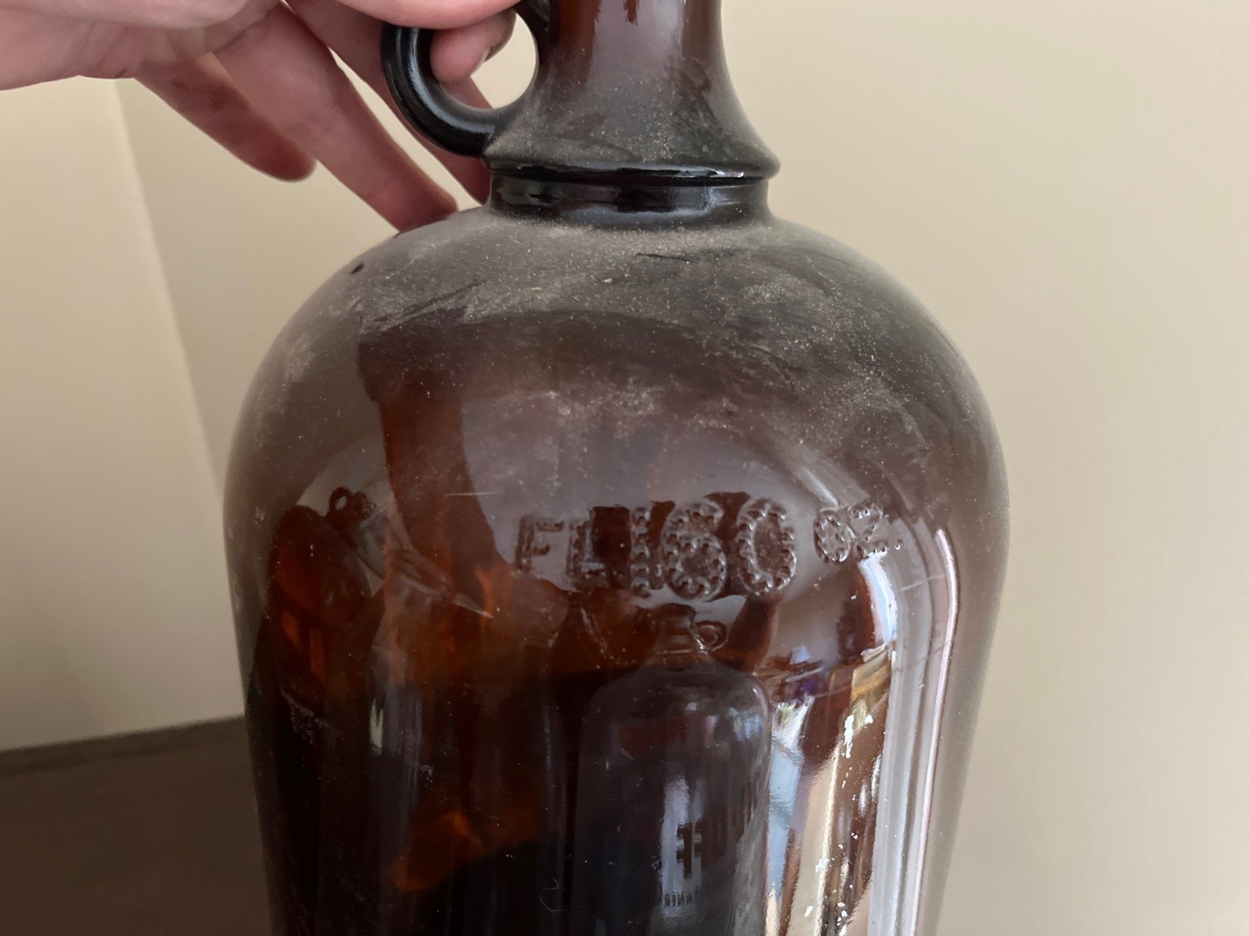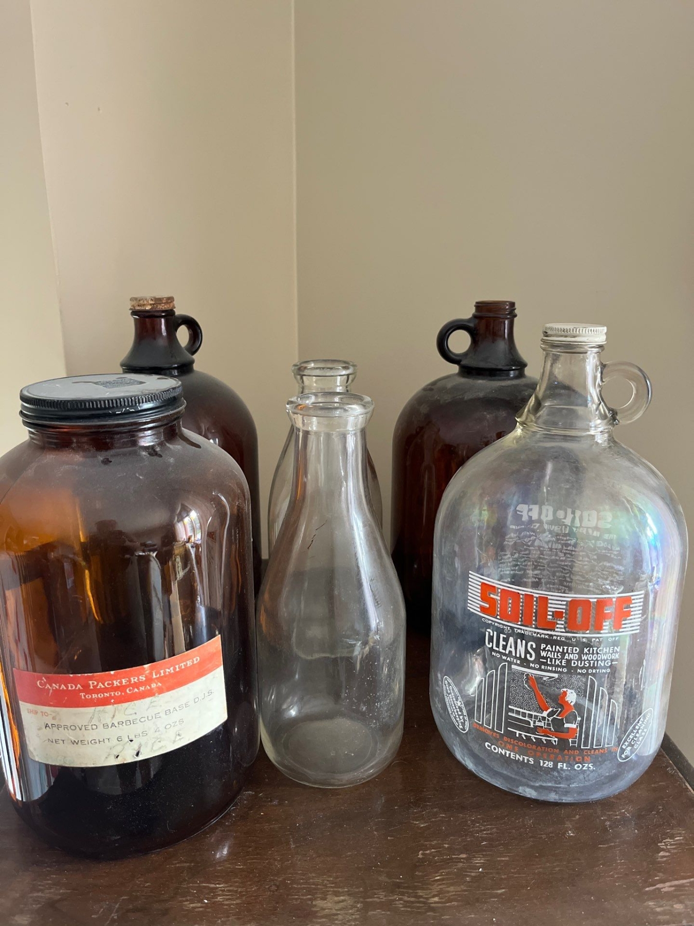 Collection of vintage brown jugs and one clear jug