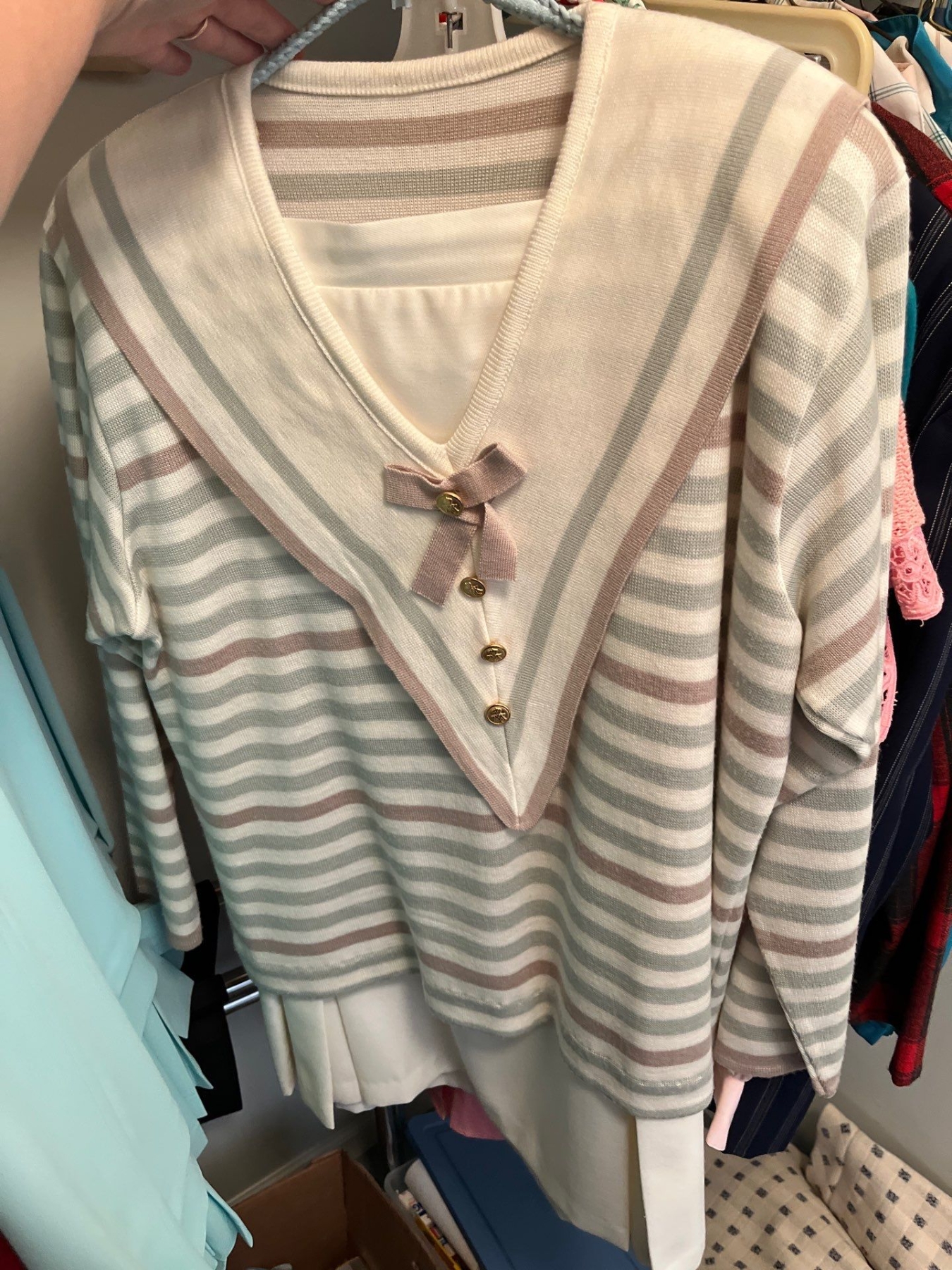 Collection of vintage women’s clothing, shirts, skirts, and two full length trench coats, all in gre