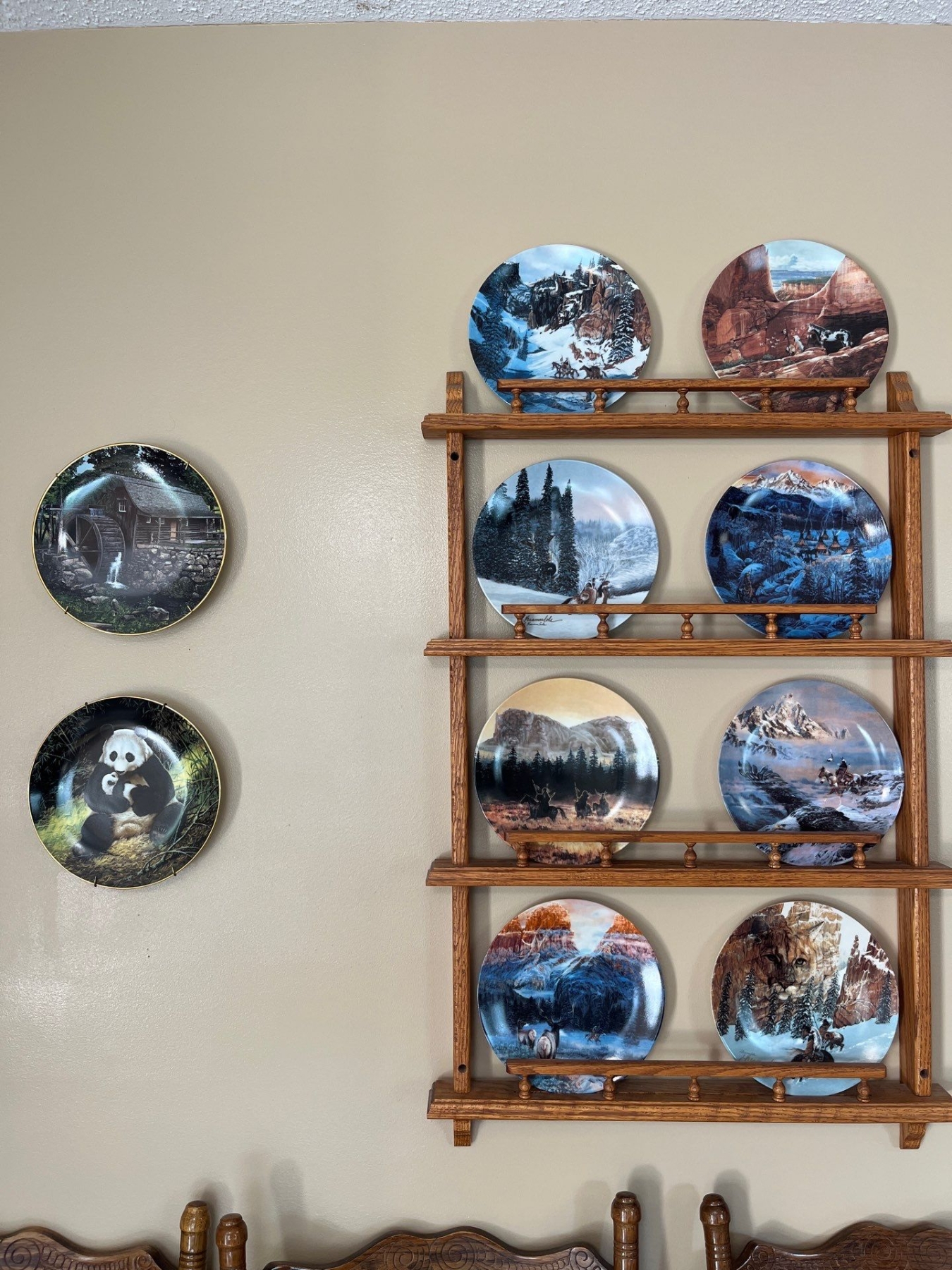 Collector plates with oak with wall mounted holder