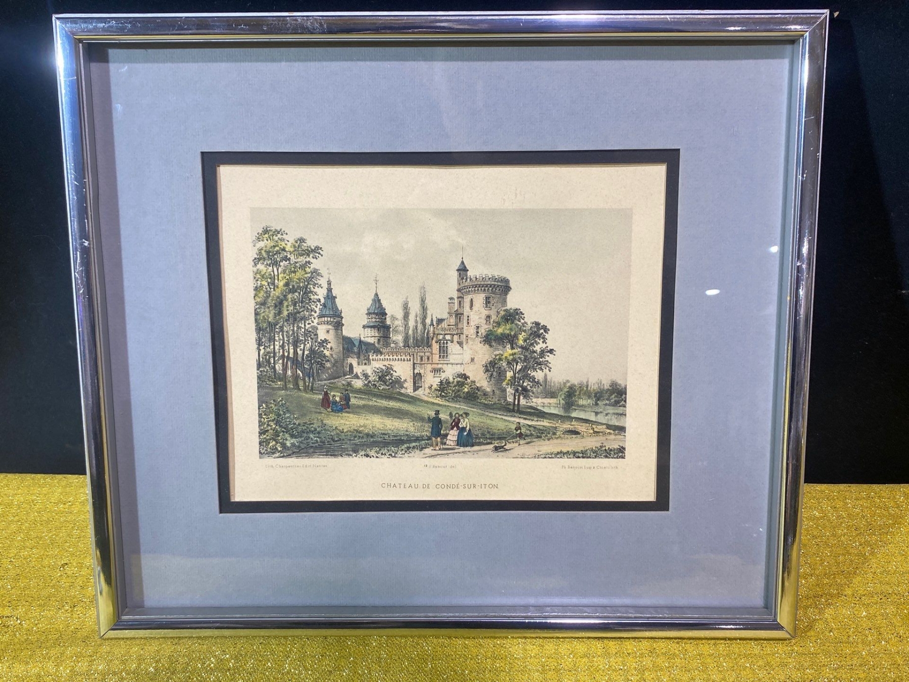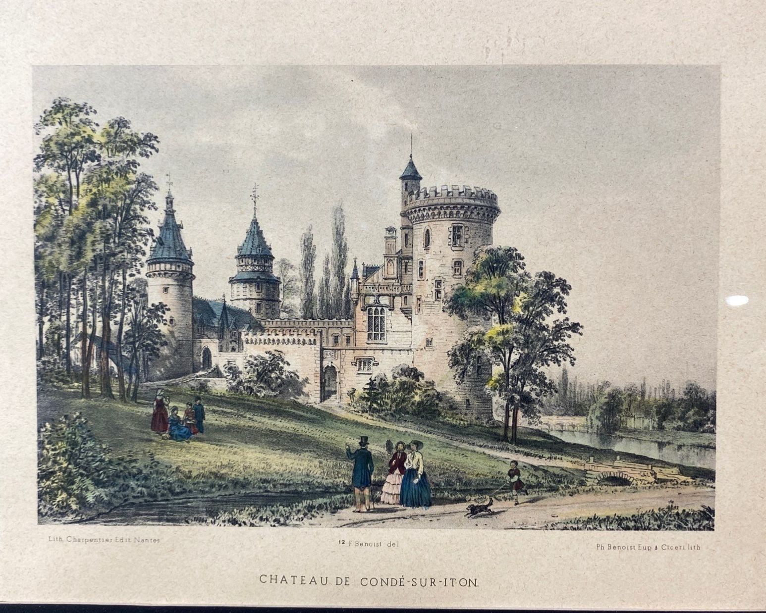 This colored lithograph, “Château de Condé-sur-Iton” by Félix Benoist, showcases the elegance of French architecture with vivid detail and subtle colorization. Benoist’s skilled hand brings the château and its surrounding landscape to life, capturing both historical charm and picturesque serenity. A fine example of 19th-century French lithography, ideal for collectors of European art and architectural prints.