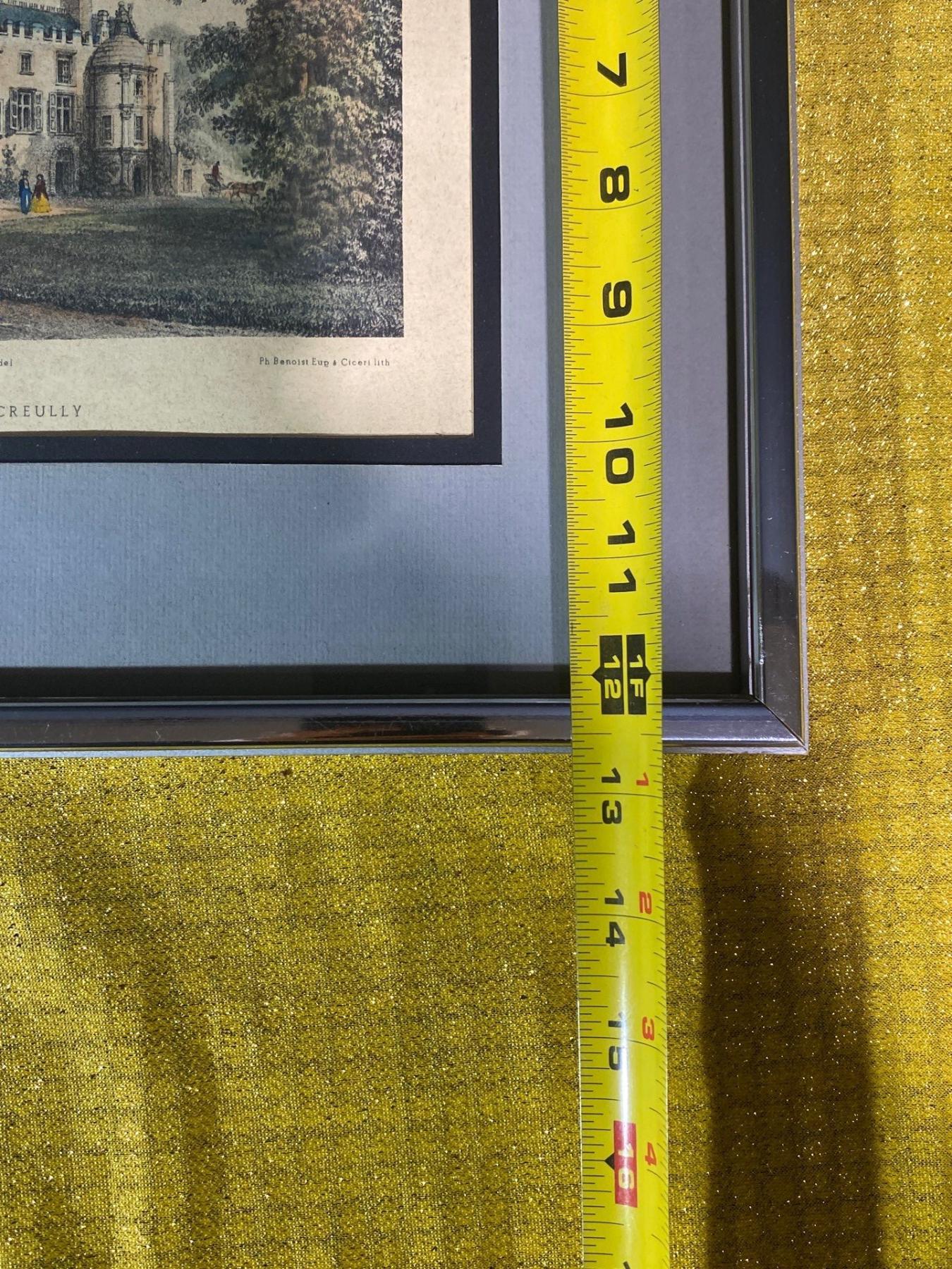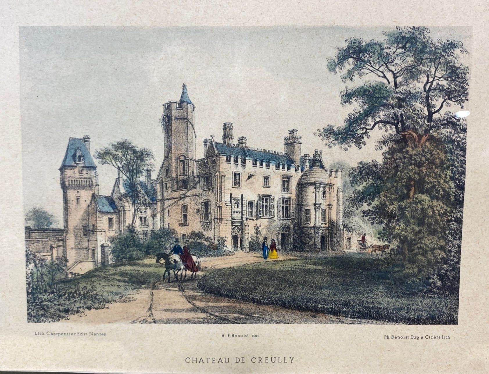 This colored lithograph, “Château de Creully” by Félix Benoist, captures the historic French château with refined detail and delicate color washes. Benoist’s artistry highlights the structure’s architectural elegance and the surrounding landscape’s serene charm. A fine example of 19th-century French lithography, perfect for collectors of European architecture and historic prints.